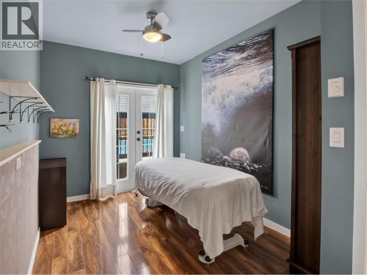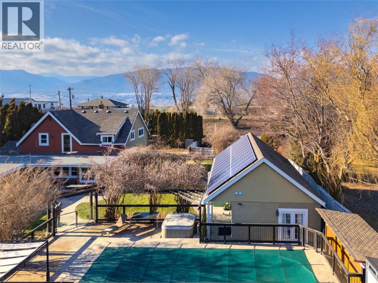 CLICK VIDEO. Located in the highly sought-after Uplands, this Gated Estate at 410 Upper Bench Road North is a rare offering blending space, versatility, and timeless charm. A warm, grand entrance leads into beautifully appointed living spaces, including a light-filled formal living room with an elegant gas fireplace, a cozy family room with a wood-burning stove, and a spacious dining area framed by expansive windows. The home offers four bedrooms and four bathrooms, including a serene primary suite with a spa-inspired en-suite featuring a soaking tub, walk-in shower, and his-and-hers vanities. The garage has been converted to a versatile studio with two additional bedrooms, a 2 piece bathroom, laundry and a kitchen sink — ideal for a home office, creative space, or extended family living. Outdoors, enjoy a private oasis with a saltwater pool, hot tub, fire pit, fruit trees, fragrant lavender, and a charming chicken coop, complemented by solar panels and 200-amp service. Just steps from the Naramata Bench wineries, Munson Mountain, KVR Trail, Okanagan Lake, and beaches, restaurants and more. This is elevated wine country living at its finest. (id:6769)