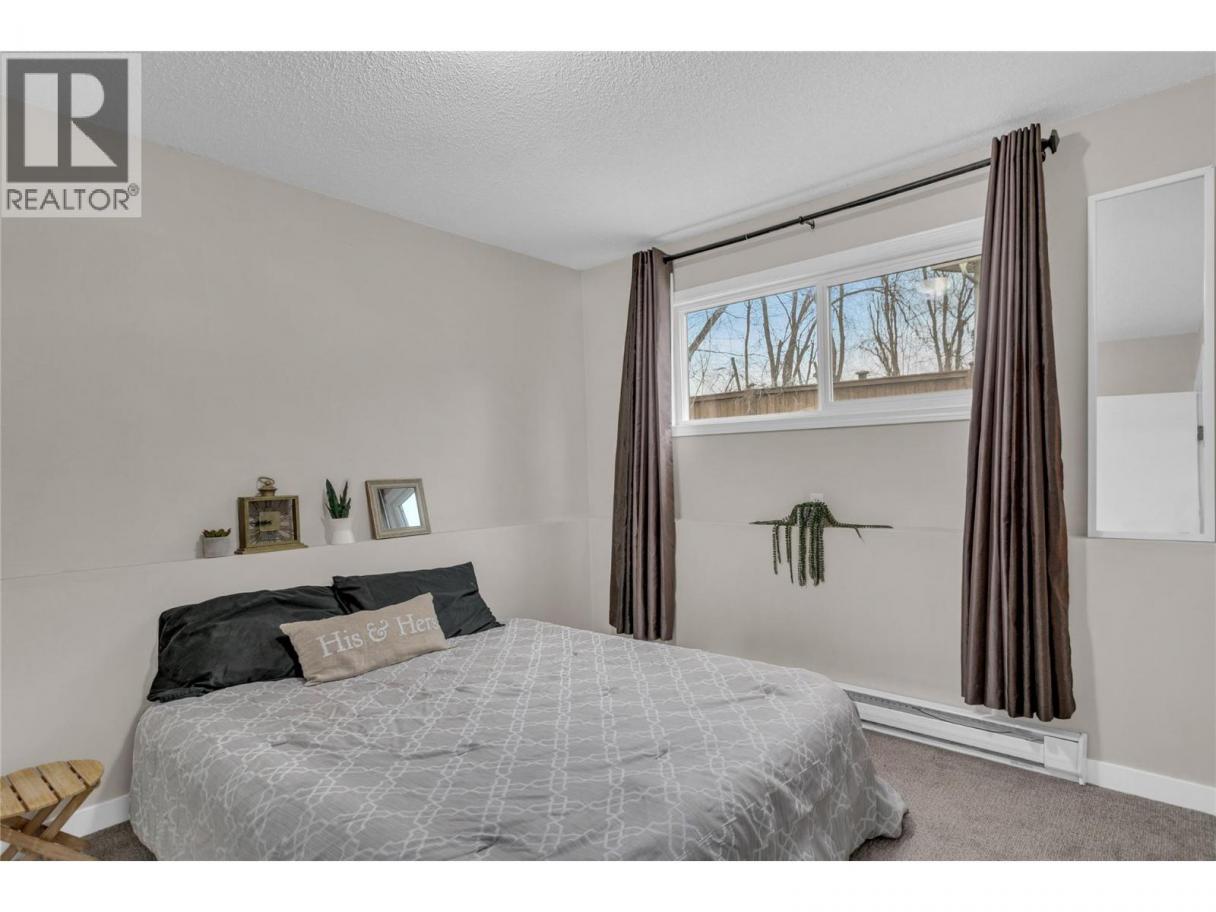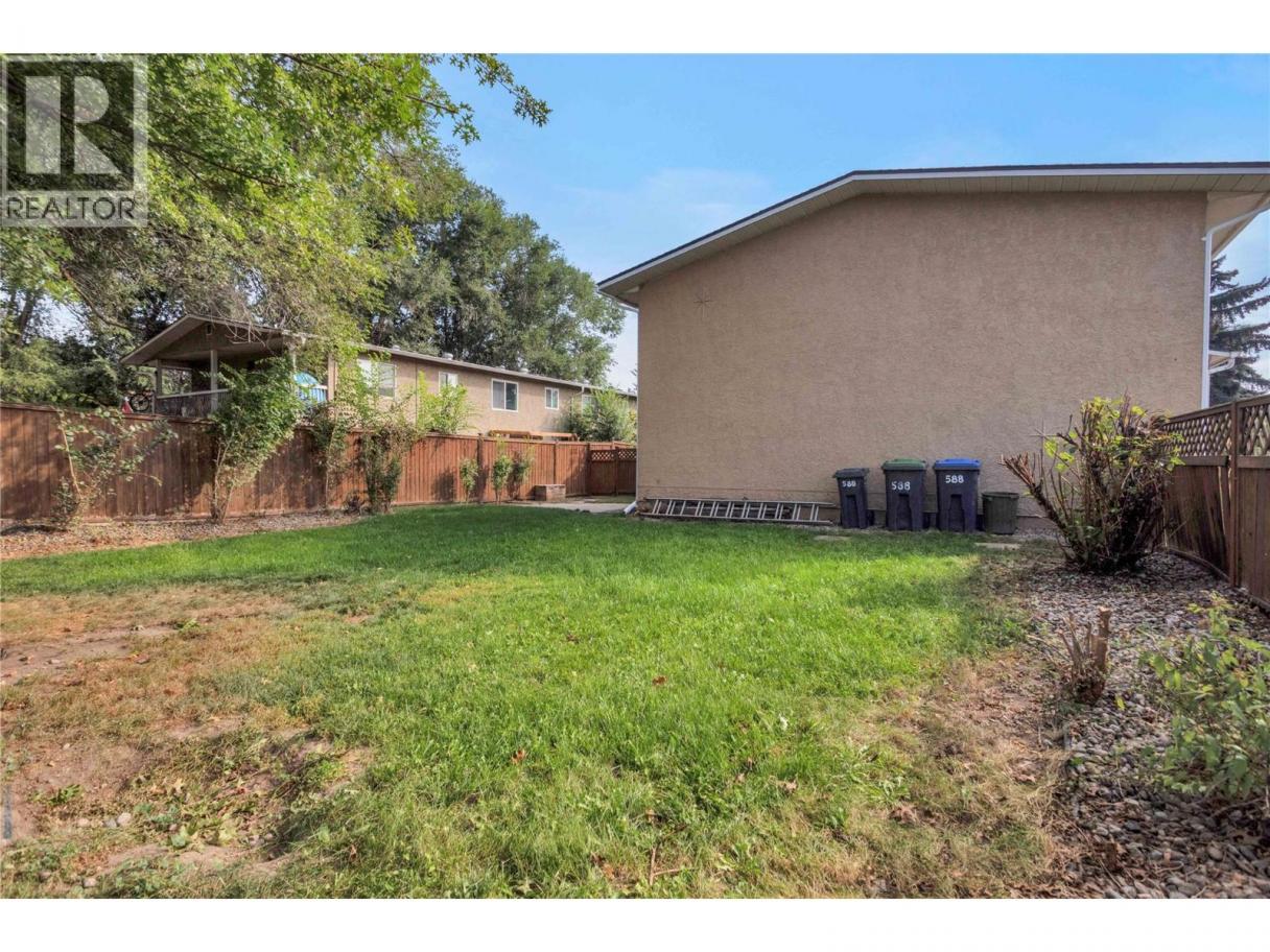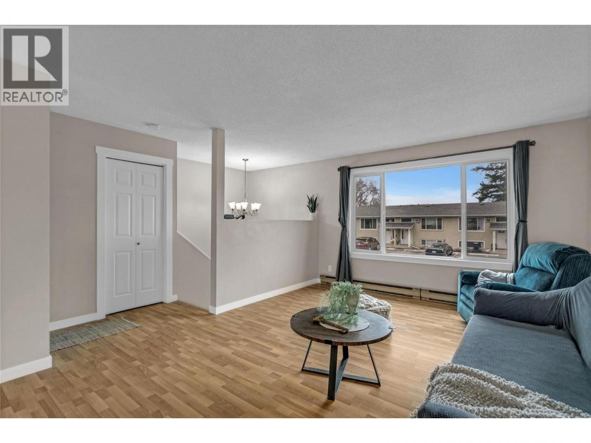 REFRESHED with modern updates, this bright end-unit townhome offers private outdoor space, flexible living, and unbeatable value in North Rutland. Updates include new baseboards, trim, doors, hardware, freshly painted doors and casing, re-sealed window frames, and a new front door—modernizing the home’s look, boosting energy efficiency, and creating a clean, contemporary feel. The main level features a functional open layout filled with natural light, with a comfortable living area flowing into the dining space and kitchen. The kitchen offers generous counter space, a breakfast bar, and an open view of the fenced backyard, perfect for entertaining, keeping an eye on kids, or enjoying morning coffee outdoors. The lower level provides flexible living space with direct access to the backyard—a rare find at this price point. Ideal for gatherings, pets, or gardening, with no dog size restrictions. The home also includes excellent storage throughout, plus a convenient outdoor shed. A renovated full bathroom, two parking stalls, low strata fees, and a well-managed complex complete the package. Centrally located just a 5-minute walk to Pearson Elementary and close to schools, transit, shopping, restaurants, and recreation, this home is ideal for first-time buyers, investors, or downsizers. Quick possession available. (id:6769)