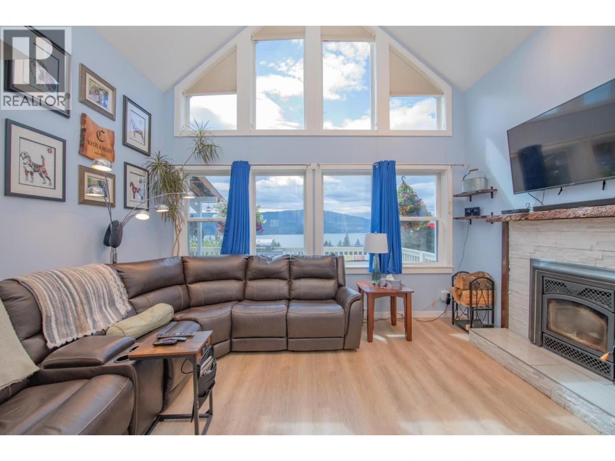 Welcome to your slice of heaven—where peaceful lake views, modern comfort, and thoughtful design come together in perfect harmony. This custom-built 4-bedroom, 3-bath home offers a warm, functional layout ideal for families, retirees, or anyone seeking a serene lifestyle. The main level features an open-concept kitchen, dining, and living area with expansive lake views, soaring cathedral ceilings, oversized windows, and a cozy, energy-efficient riverstone fireplace. A newly installed heat pump keeps you comfortable through the Okanagan seasons, while the oversized, partially covered deck invites you to relax and soak in the surroundings from spring to fall. The walkout basement includes a fully self-contained (non-legal) suite, perfect for guests, extended family, or income potential. Outside, the fully fenced yard offers low-maintenance AstroTurf, a pear tree, and two mature plum trees. Additional highlights include a 16x24 heated detached shop, a brand-new water system with UV light, reverse osmosis, and water softener, plus surge protector and fast speed Telus Fiber internet for those who work from home. With the charm of country living and the convenience of Amazon, Costco, and Save-On deliveries, this is the perfect retreat to call home. (id:6769)