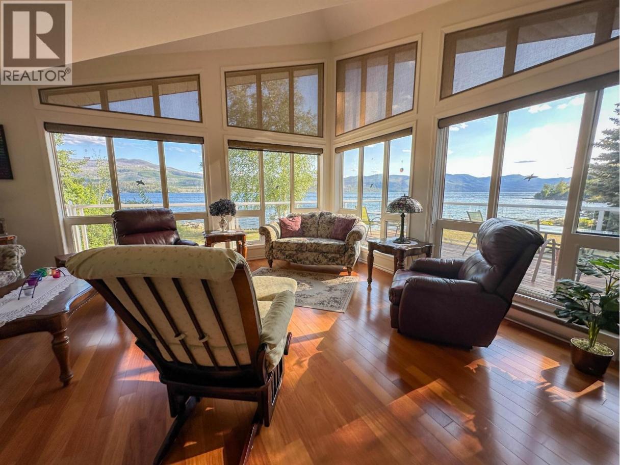 This is the one! Situated on prestigious Francois Lake (just outside the town of Fraser Lake) this beautiful prow front home has vaulted ceilings, 2 bedrooms and a beautiful big deck. The lot is a gradual slope down to the water where you will find a nice pebble beach, roll in dock and boat launch. The property also is fully landscaped and boasts 2 RV pads with water (one has sewer). A 30 x 40 detached shop with a 14 foot door will store your vehicles, boats and water toys. If that isn't enough value there is also a detached self-contained guest house with a full bathroom and a sauna! With the recent announcements for new projects one or both could be rented easily. Airbnb? (id:6769)