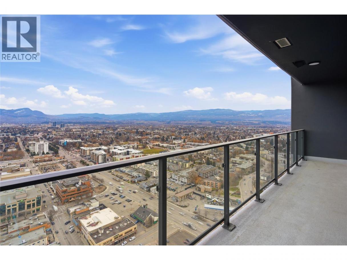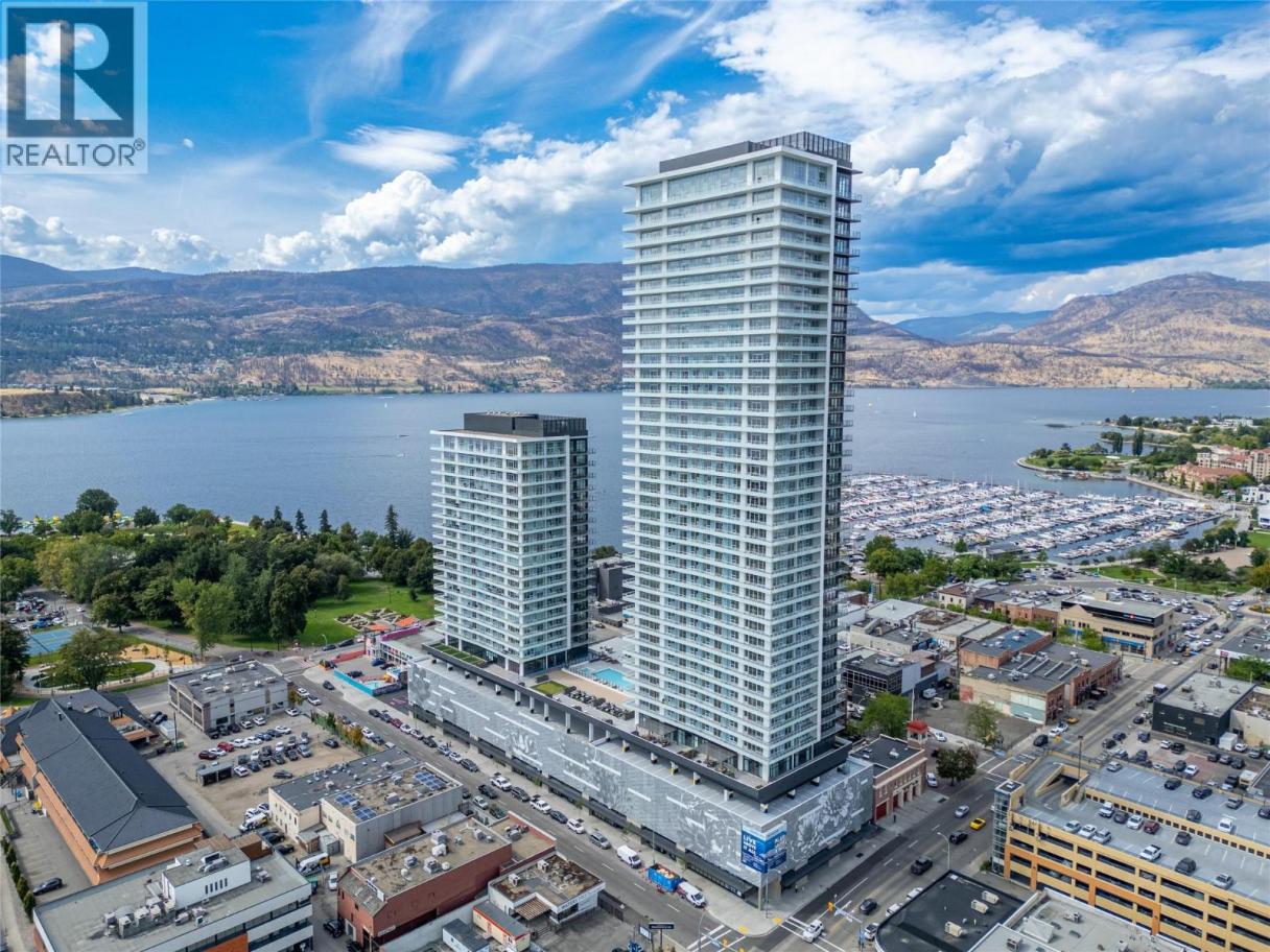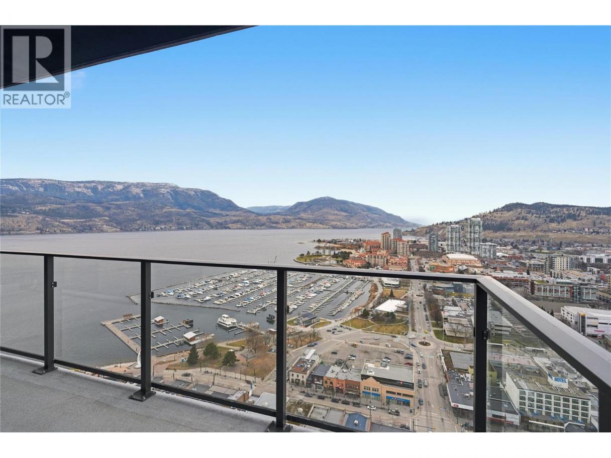 Rising above downtown Kelowna as a striking 42-storey landmark, this exceptional residence offers a front-row seat to the very best of urban Okanagan living. Positioned 34 storeys high this home captures unobstructed, ever-changing views of Okanagan Lake, the city skyline, marina, and surrounding mountain ridgelines—delivering unforgettable sunsets and natural light from morning to night. Inside, expansive floor-to-ceiling windows frame the scenery while an open-concept layout creates a space that feels both sophisticated and effortless. The kitchen is designed for connection and entertaining, flowing seamlessly into the living and dining areas and out to the covered patio—perfect for hosting or unwinding above the energy of the city. Whether it’s a lively evening with friends or a quiet night in, this home adapts beautifully to your lifestyle. On ""The Deck"" residents enjoy access to an impressive collection of resort-style amenities designed to elevate everyday life. From the pool, hot tubs, fitness and yoga studios, sauna and steam rooms, to co-working lounges, theatre, party spaces, art room, golf simulator, putting green, dog run and wash, and concierge services—this is a building that supports how you live, work, and relax. Set in the heart of downtown Kelowna, you’re just steps from the waterfront, beaches, restaurants, cafes, shopping, and cultural attractions. This isn’t simply a place to live. It’s a statement address and an elevated way of life. (id:6769)