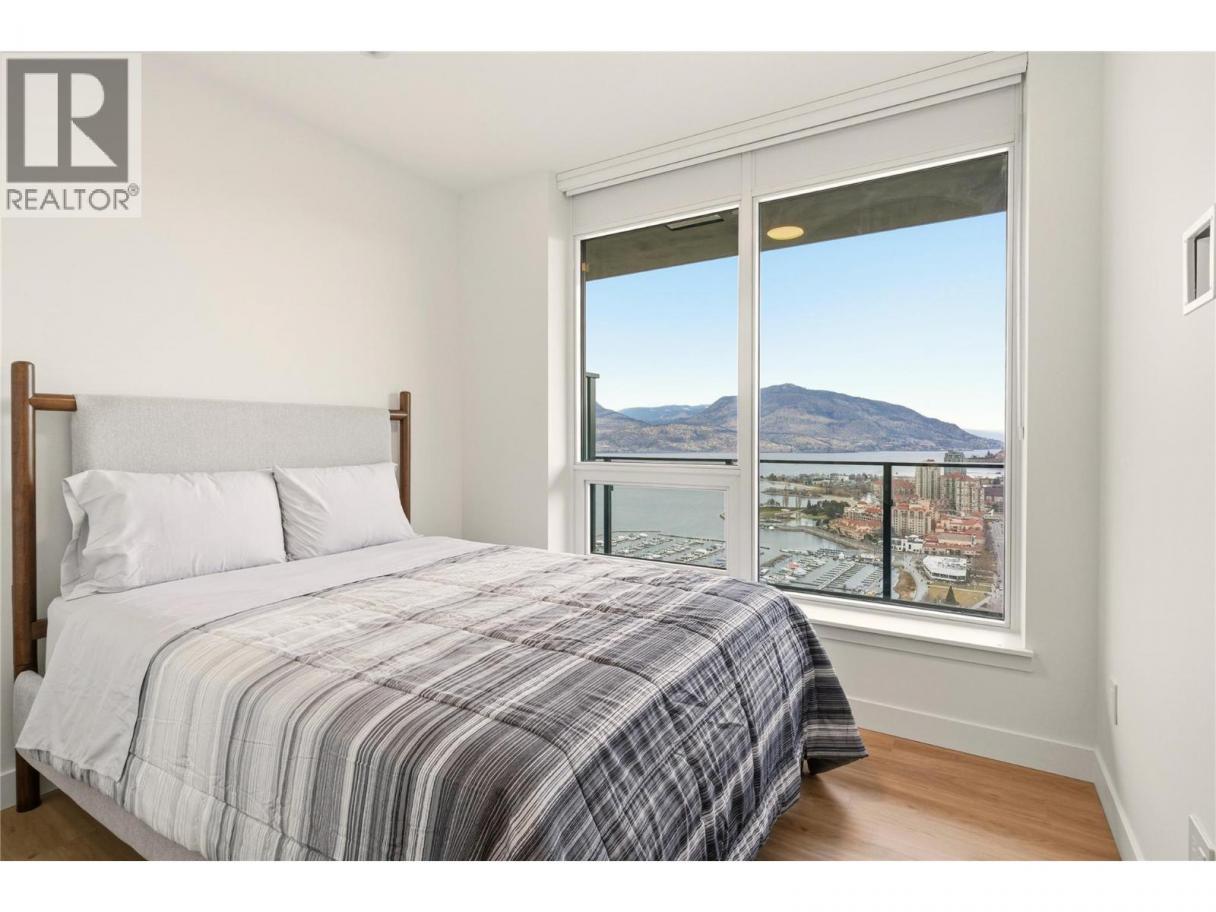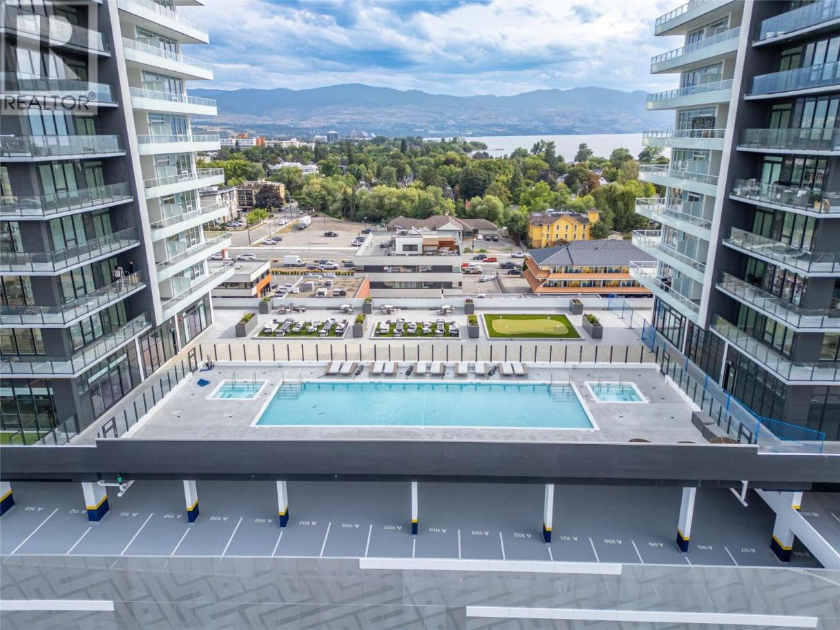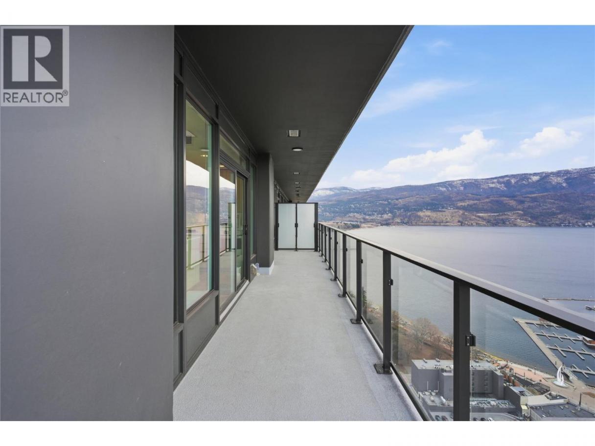 Rising above downtown Kelowna as a striking 42-storey landmark, this exceptional residence offers a front-row seat to the very best of urban Okanagan living. Positioned 34 storeys high this home captures unobstructed, ever-changing views of Okanagan Lake, the city skyline, marina, and surrounding mountain ridgelines—delivering unforgettable sunsets and natural light from morning to night. Inside, expansive floor-to-ceiling windows frame the scenery while an open-concept layout creates a space that feels both sophisticated and effortless. The kitchen is designed for connection and entertaining, flowing seamlessly into the living and dining areas and out to the covered patio—perfect for hosting or unwinding above the energy of the city. Whether it’s a lively evening with friends or a quiet night in, this home adapts beautifully to your lifestyle. On ""The Deck"" residents enjoy access to an impressive collection of resort-style amenities designed to elevate everyday life. From the pool, hot tubs, fitness and yoga studios, sauna and steam rooms, to co-working lounges, theatre, party spaces, art room, golf simulator, putting green, dog run and wash, and concierge services—this is a building that supports how you live, work, and relax. Set in the heart of downtown Kelowna, you’re just steps from the waterfront, beaches, restaurants, cafes, shopping, and cultural attractions. This isn’t simply a place to live. It’s a statement address and an elevated way of life. (id:6769)