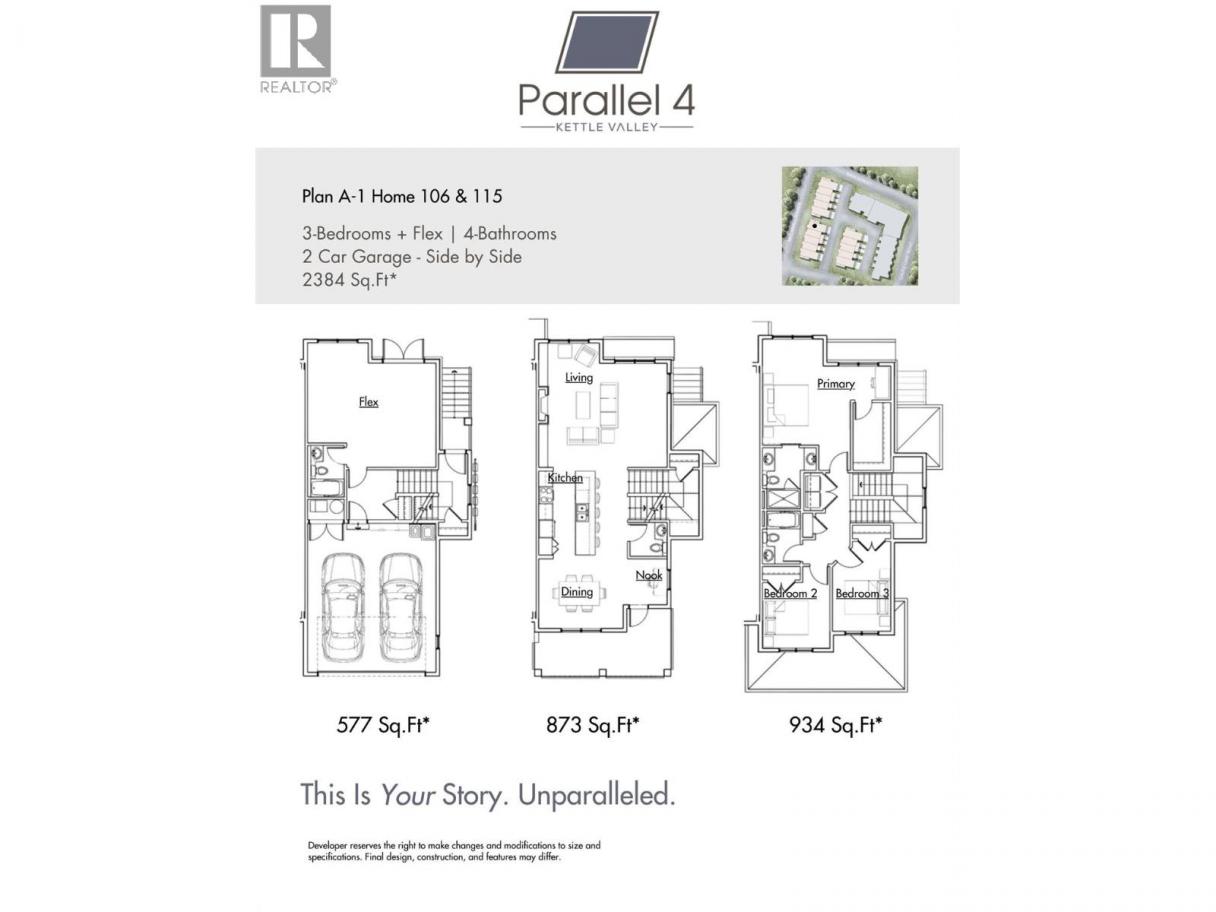 Unparalleled Living in Kettle Valley. Why Wait for Someday? Your Kettle Valley Story Starts Now. Brand New, Move-In Ready Townhomes, Live/Work Homes, and Condos. Welcome to Parallel 4, the newest addition to Kettle Valley—Kelowna’s award-winning, family-friendly neighbourhood. It’s a living hub designed around the 4 cornerstones of an unparalleled life: community, nature, purpose, & growth. Buy now and enjoy the benefits of NEW including new home warranty, No Property Transfer Tax (some conditions apply), 1st time home buyer GST rebate, & the opportunity to be the first people to live in this amazing home. Only 2 homes remain like #106, with a spacious layout flooded with natural light, boasting 9ft ceilings and luxury vinyl plank flooring throughout the main living area. The kitchen is equipped with two-toned cabinets, quartz counters, & wi-fi-enabled Samsung appliances. 3 beds located upstairs including the primary with walk-in closet with built-in shelving and spa-like ensuite. Downstairs, a flex space with washroom & street access is perfect for guests, home office or gym. With a double garage, EV charger roughed-in, & proximity to parks, schools & amenities this home offers ultimate Okanagan lifestyle. Don't miss your opportunity to live a lifestyle of unparalleled convenience & luxury in the heart of Kettle Valley. Townhomes starting from $734,900. Photos & virtual tour of a similar home. Showhome open at #106 Sat-Sun 12-3pm. (id:6769)