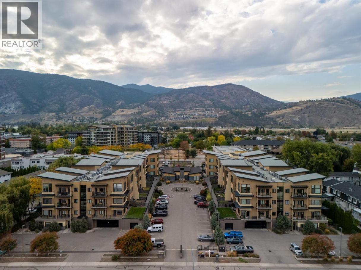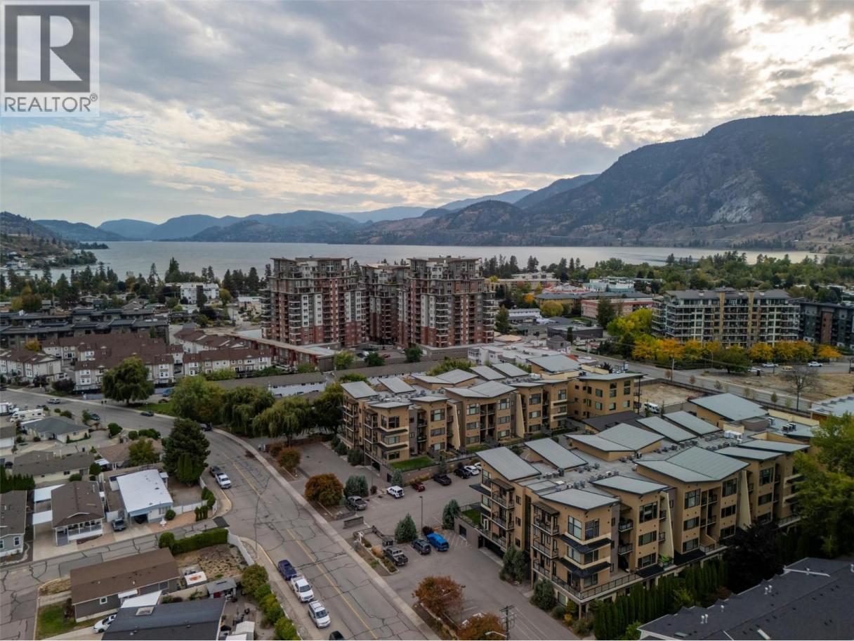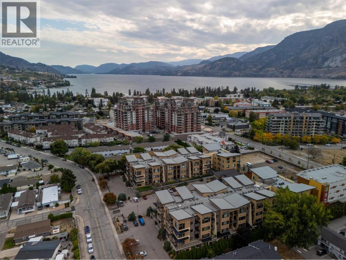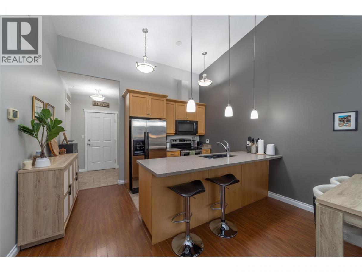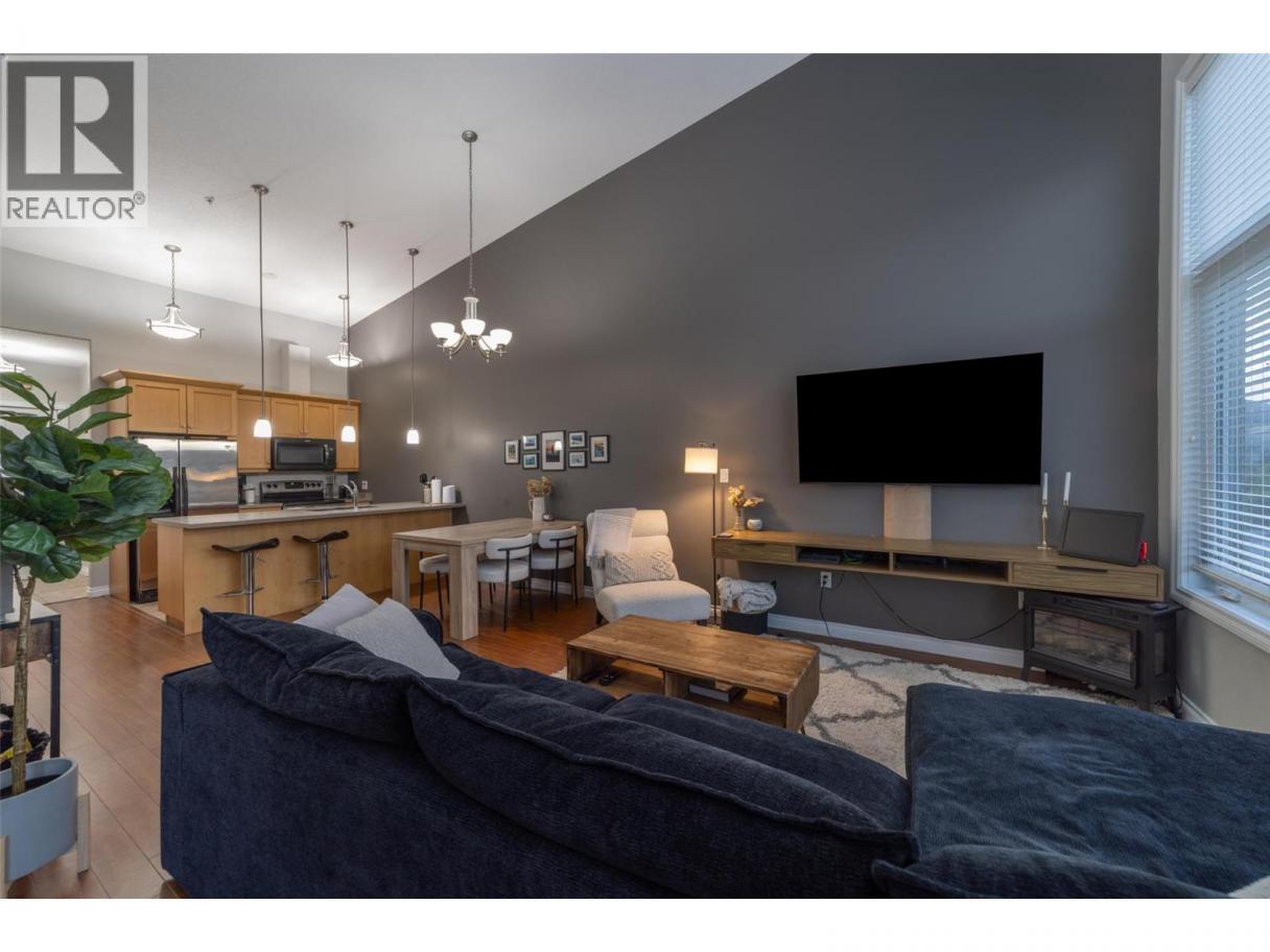 Rare top-floor loft available at the Verana Penticton. This highly regarded building is known for its proximity to the famous Skaha beach, shops, schools, and hospital. The Verana has wonderful amenities (gym, lounge, pool table, TV rm and party room+bbq patio) and is known for great neighbors. Quiet 4th flr 1 bdrm plus den (could serve as a 2nd guest bdrm), 1.5 baths, with open floor plan + soaring loft ceilings. Open kitchen perfect for entertaining. Stainless steel appliances. Brand new washer dryer. New paint in liv/dining room, updated floors in the bdrm+den. Shaded NE facing windows+deck that is ideal for staying out of the hot South Okanagan sun in the afternoons. Secure underground parking with a large storage locker right at your stall. Bike storage. BBQ's allowed and ample visitor parking. Well-run strata. New carpet+paint in the hallways. No long-term rental restrictions. Move-in ready for Spring 2026. (id:6769)