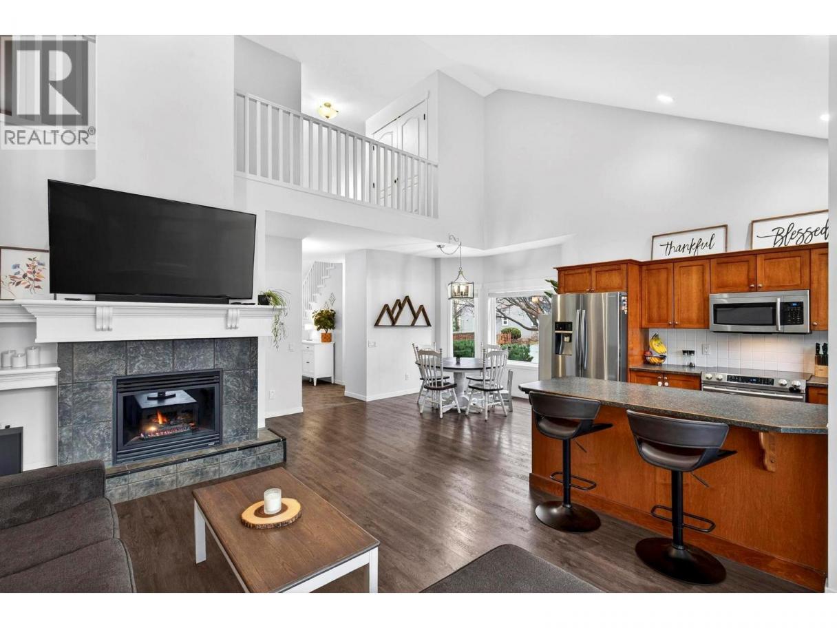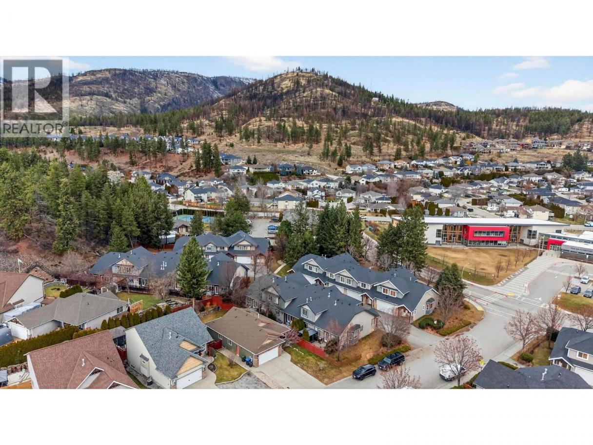 Located directly across the street from Mar Jok Elementary School, a LEED Gold–certified public school, this exceptional end-unit townhome offers the space, comfort, and feel of a single-family home in one of Rose Valley’s most family-friendly neighbourhoods. With 2,435 sq ft, this is a rare opportunity to enjoy house-sized living with low-maintenance convenience. The main level features a bright, open-concept layout designed for everyday living and entertaining, complete with vaulted ceilings, a cozy gas fireplace, and a well-appointed kitchen with stainless steel appliances, generous counter space, and seamless flow to the dining and living areas. The spacious primary bedroom includes a full ensuite and 2 closets. Upstairs, a lofted layout provides two additional bedrooms and a dedicated office or flex space—ideal for growing families or working from home. The fully finished basement adds even more versatility with a large rec room perfect for movie nights, a playroom, or home gym, plus a spacious laundry area. Complete with laundry by the extra bedrooms, a large double car garage, and private outdoor patio space. Step outside and enjoy unmatched walkability: school, daycare, community pool, and tennis courts are all just one minute away, with numerous parks, hiking, and biking trails nearby. All of this, while being only 10 minutes to downtown Kelowna. Spacious, functional, and ideally located—this Rose Valley townhome truly offers the best of community living. (id:6769)