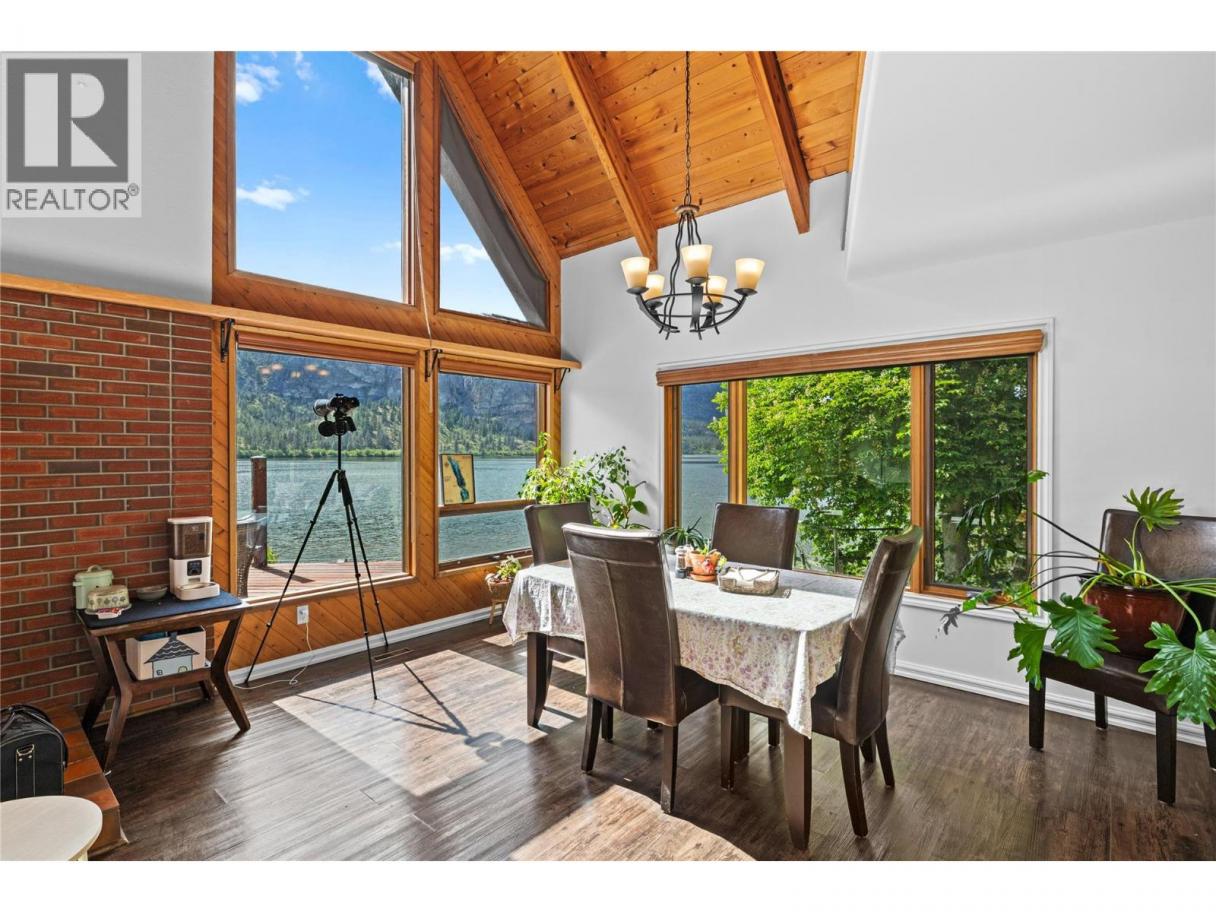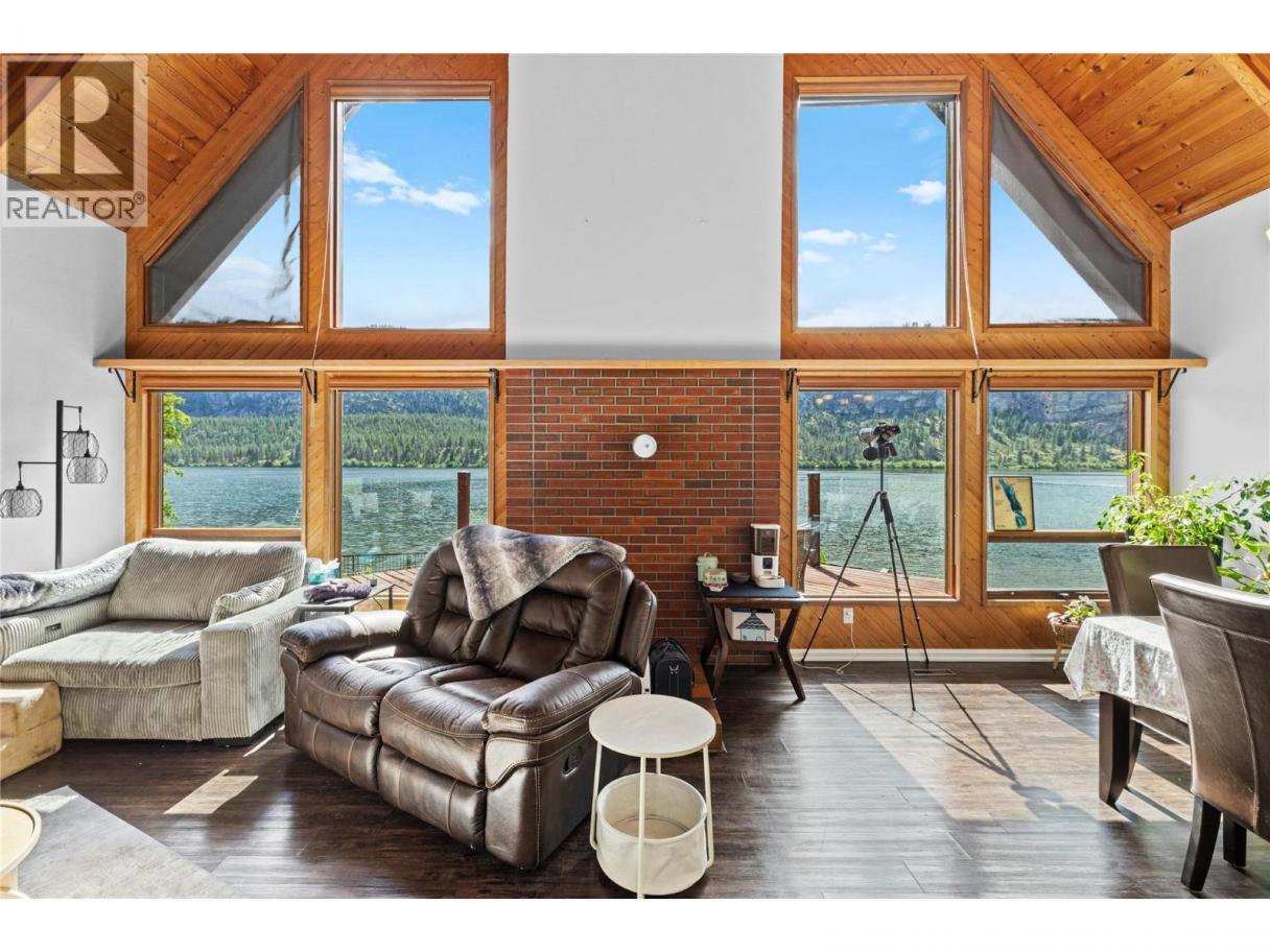 Welcome to your private lakefront retreat on the serene shores of Vaseux Lake in Okanagan Falls. This stunning 5-bedroom, 4-bathroom A-frame home offers a perfect blend of rustic charm and modern comfort, with vaulted ceilings, panoramic windows, and an airy open-concept design that fills the home with natural light and captures breathtaking lake and mountain views. Spanning over 3,200 sq ft, the home features a spacious layout ideal for entertaining or multigenerational living. The master suite and main living areas offer unobstructed views of the lake, creating a seamless indoor-outdoor connection and year-round tranquility. Step outside to a massive wrap-around deck perfect for alfresco dining, gatherings, or simply soaking in the peaceful surroundings. With approx. 100 feet of shoreline, this rare waterfront property offers direct access to one of the Okanagan’s most pristine, non-motorized lakes ideal for paddleboarding, kayaking, and swimming. Recent upgrades include a new heat pump, hot water tank, septic field, lake-facing windows, updated flooring, fresh paint, lighting, a refinished upper deck, and new stainless steel appliances. Located minutes from Okanagan Falls and award-winning wineries, with nearby hiking and birdwatching in this protected migratory sanctuary this home is more than a residence; it's a lifestyle surrounded by nature, serenity, and timeless views. (id:6769)