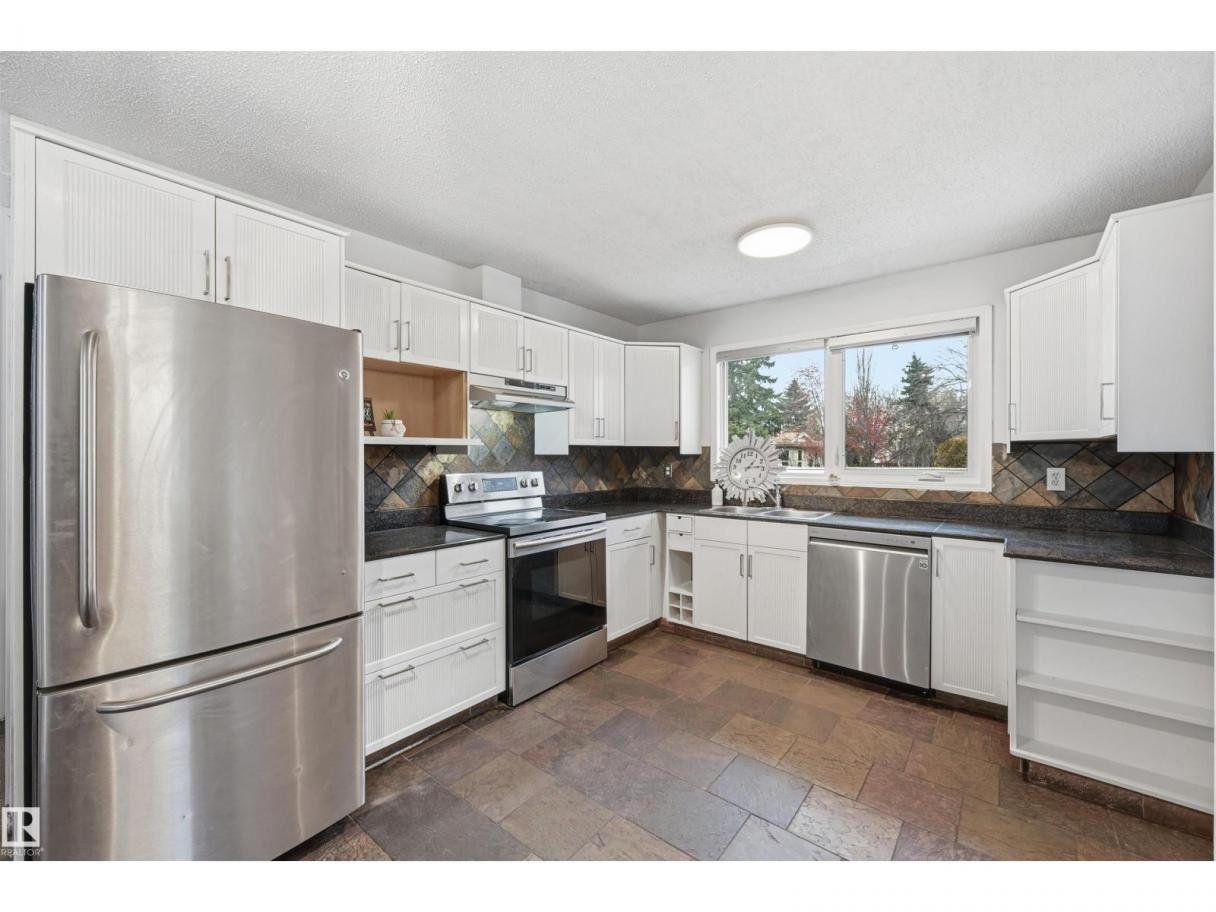 Fantastic location and community with plenty of space for a growing or extended family! Inside this updated bungalow, find an open concept living room, dining and kitchen overlooking backyard. Kitchen has granite counters and stainless steel appliances. 3 bedrooms upstairs, full bathroom & ensuite. Basement has SEPERATE ENTRANCE with SECOND KITCHEN, living space, full bathroom, large bedroom, den/flex space & storage room (over 1,000sf living space). Plus BACKS WALKING PATH with direct gate/fence access (large enough to bring in a Rec vehicle!). MASSIVE PIE LOT is nearly 9,000sf!! So much room for a family to play or lounge on large deck. Oversized/finished garage measures 30x23'. Plus shed and pergola structure! Extra parking with extended driveway. Upgrades include furnace (approx 10 years), new hot water tank, new paint, shingles (approx 5 years), NEST thermostat. Great cul-de-sac location, schools and parks within walking distance and easy access to major arteries and retail! QUICK POSSESSION! (id:6769)