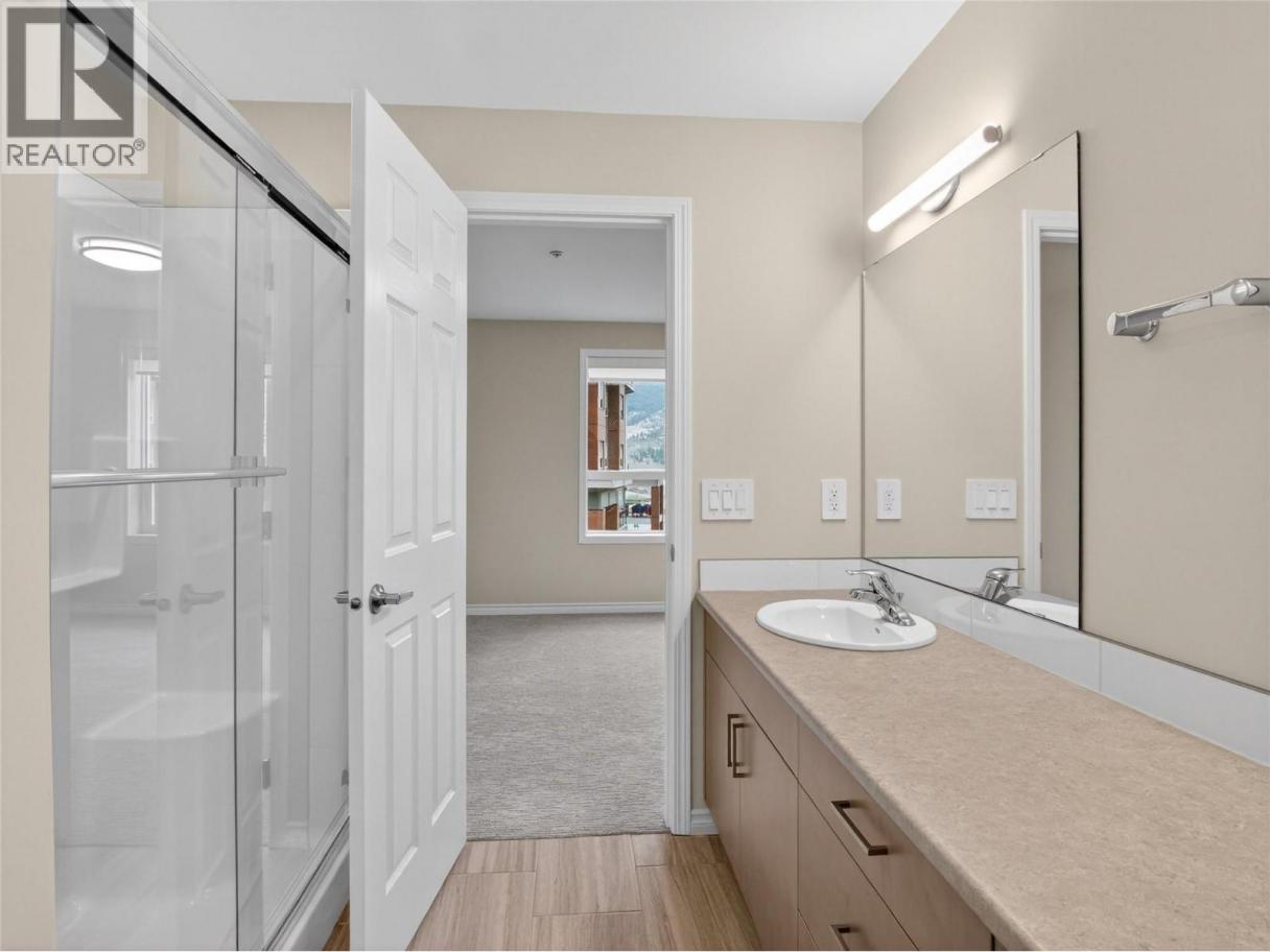 Brand new corner unit with city, lake, & mountain views in Phase 3 of the Skaha Lake Towers! This 1212sqft, 2 bedrm 2 bathrm + den, NW corner, is finished & ready to move into. There is a bright open floor plan with lots of windows & natural light, & views across the city to the North, to the South & Skaha Lake from the deck, & to the West from the living room. The sleek maple flat panel kitchen has a large island with room for stools, laminate flooring runs throughout the main living, & there’s a feature gas fireplace wired for your tv above in the living room. The primary bedroom is large with a walk in closet and ensuite bathroom with double sinks and a walkin shower. The large 2nd bedroom is by the full guest bathroom and the den makes a perfect home office. Enjoy hot water on demand, central AC & energy efficient heating. This brand new concrete & steel building is located just a short walk to Skaha Lake beach & parks + all the awesome trails and outdoor amenities it offers. The unit comes with a secure parking spot in the parkade & a storage locker located conveniently on the same floor as the suite! This complex is not only a stroll to the beach but other great amenities like Kojo Sushi, a bakery & pizza place, convenience stores, the Dragon Boat Pub, & fitness places like SpinCo! All appliances included & net GST is included in the purchase price! No age restriction & two pets allowed, this strata offers great flexibility! Long term rentals allowed no short term. (id:6769)