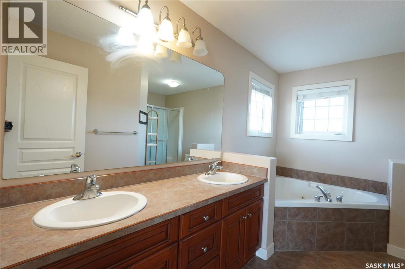 THIS IS NOT A CONDO AND THE YARD IS NOT SHARED. You get almost 3,000 SQFT of living space with this beautiful 2 storey walkout that has the location you will love, Wonderful White City! Backs the golf course and park which includes walking paths and all the fun a family requires! You are welcomed by the beautiful front yard and covered front steps that lead you into the foyer that brings flow through the entire home. Amazing natural light fills both the main and 2nd floor. With this open concept floor plan you will just love what this home offers. Great sized living room with a gas fireplace that creates a elegant focal point and hardwood flooring that runs through most of the main level. The kitchen offers a centre island, with extra seating, also featuring ample counters and cabinetry, backsplash, and pantry. The main floor also includes an office with its own 3 piece bathroom, laundry and direct entry into garage. The main floor comes complete with a 2 piece bathroom, also the dining area has patio doors leading to the deck with a beautifully landscaped backyard. The 2nd floor features 2 spacious bedrooms with the primary bedroom sized for your king size suite, a walk-in closet & a 5 piece bathroom with his and her sinks. This floor is finished with a 4 piece bathroom with tub surround and another huge bedroom. The lower level is fully finished with a family room, 3rd and 4th bedroom and a den perfectly set up for your media room. This floor is complete with a 4 piece bathroom with tub surround. Other features include newer furnace, heated basement floor, double attached garage, walkout basement to patio and much more! This home is in a fantastic location. Set up your viewing today you don't want to miss out on this one! (id:6769)