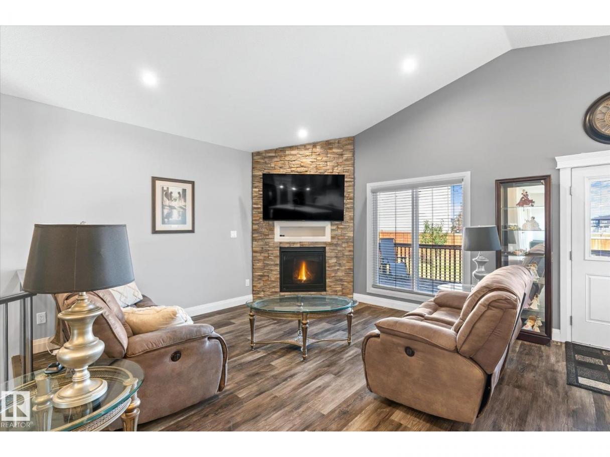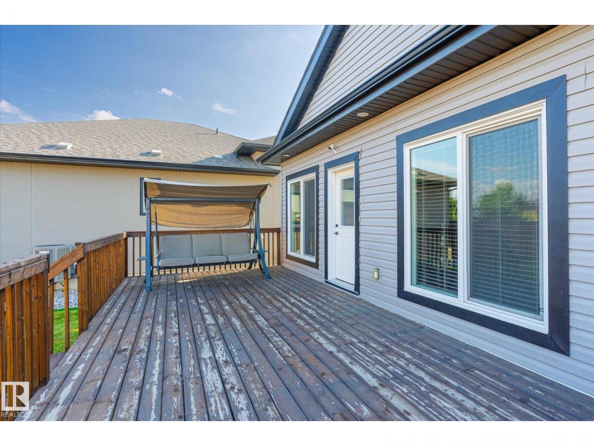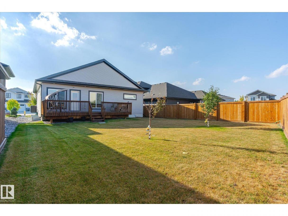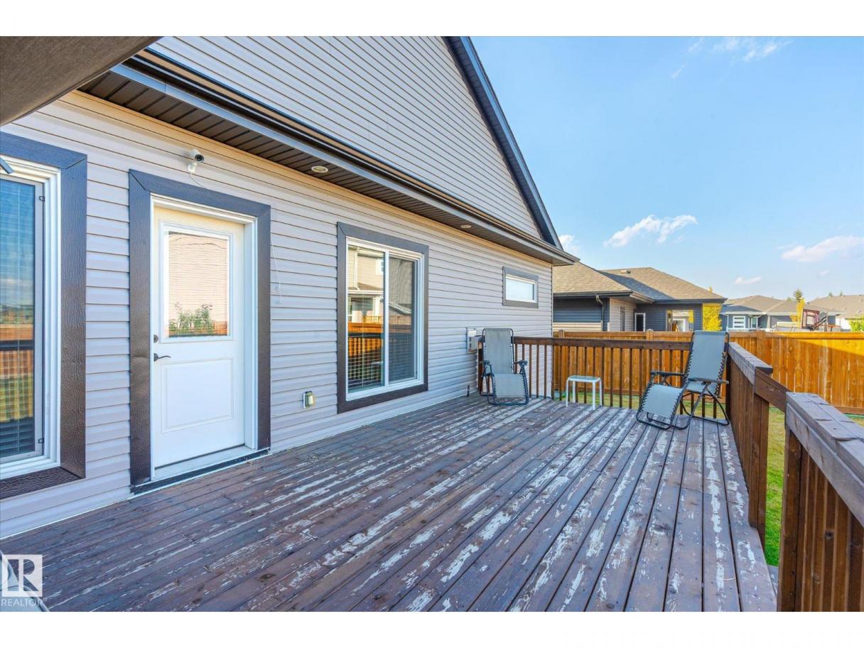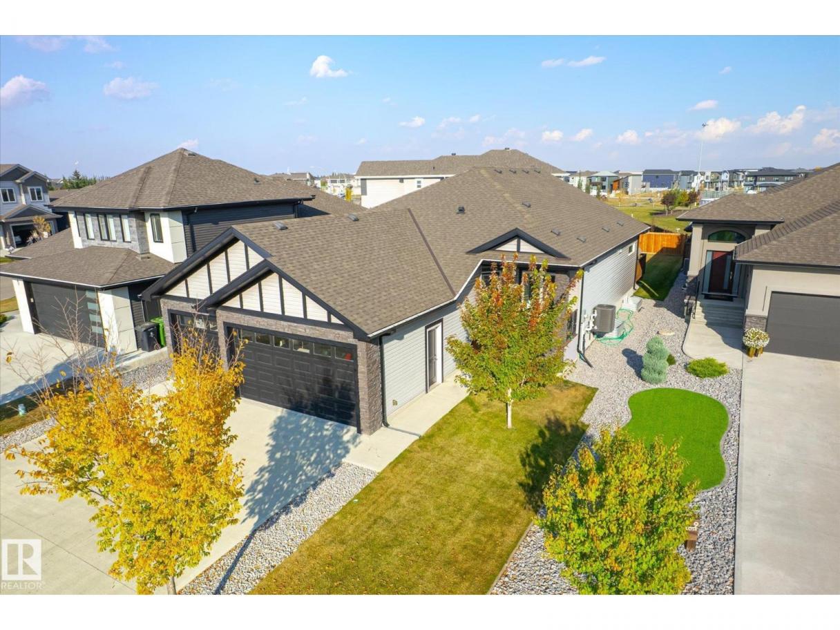 Exquisite custom-built bungalow with all the bells and whistles! Rare find in Fort Saskatchewan on a quiet cul-de-sac, partially backing a park for privacy. At 1,577 sq ft with fully finished basement, it offers high-end finishes and plenty of space for downsizers seeking single-floor living while keeping a functional basement. Stunning curb appeal includes a triple car garage and front veranda. Main floor features a bright den, warm fireplace in the living room, dining area, chef’s kitchen with stainless appliances, granite counters, island, and pantry. Mudroom with laundry, 4-pc main bath, and spacious primary bedroom with TWO walk-in closets and 5-pc ensuite with heated floors. Basement boasts high ceilings, large windows, 3 bedrooms, and massive rec space. Enjoy the back deck, landscaping, central A/C, and pristine condition — a true 10/10! (id:6769)