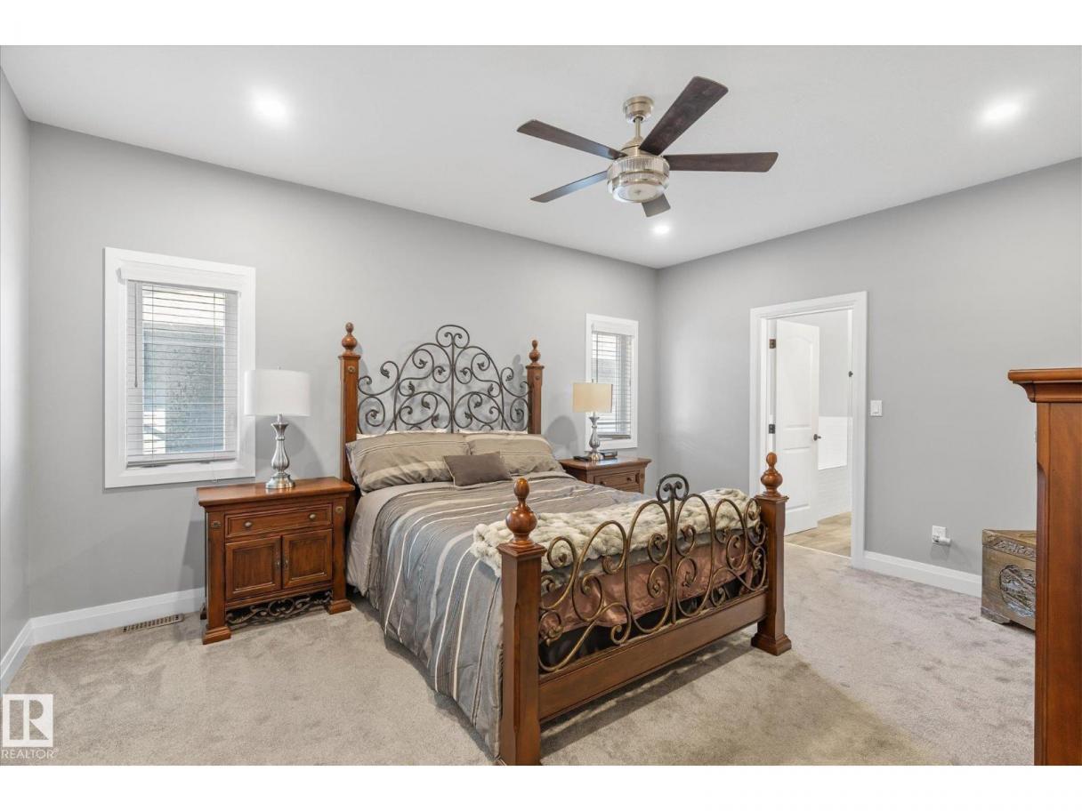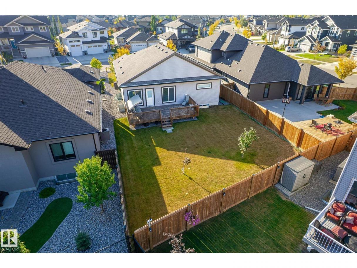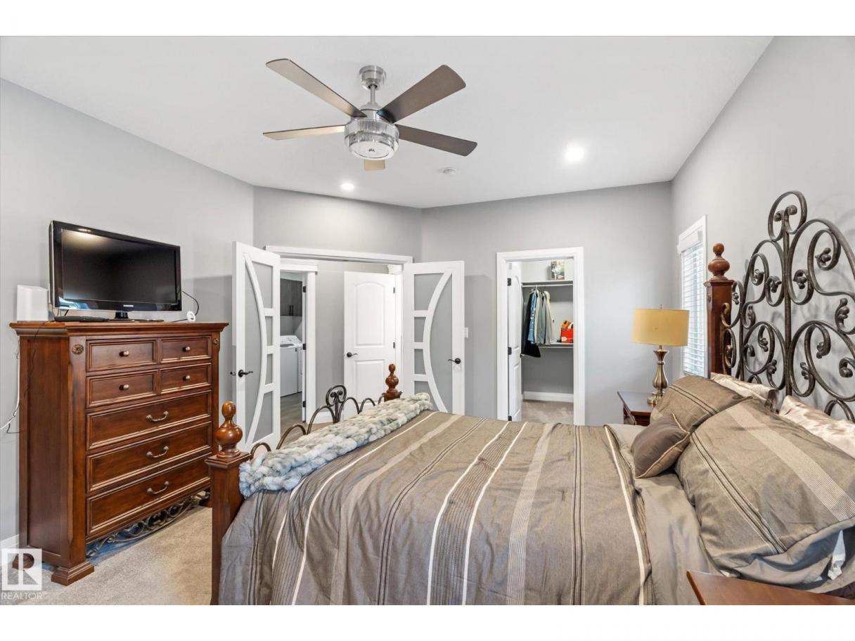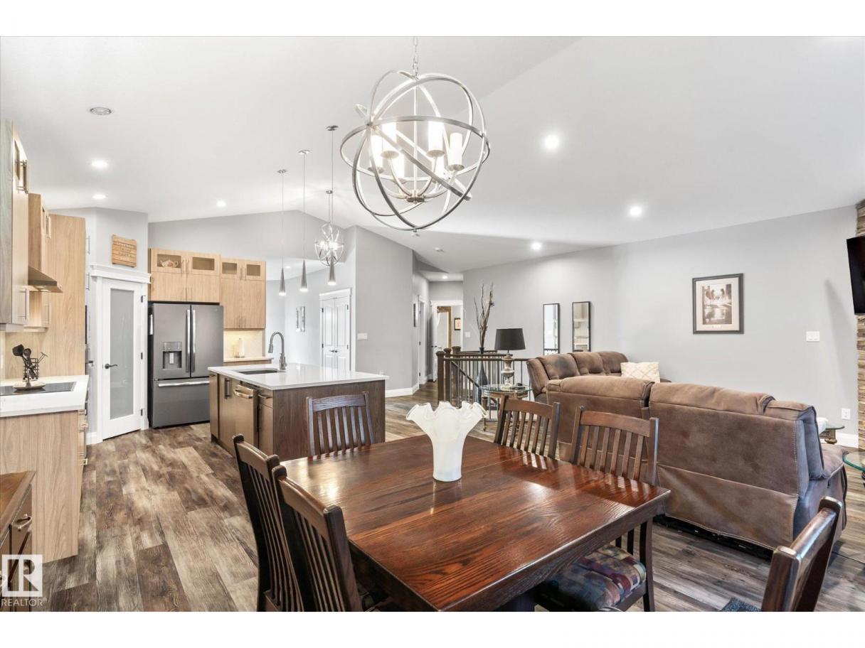 Exquisite custom-built bungalow with all the bells and whistles! Rare find in Fort Saskatchewan on a quiet cul-de-sac, partially backing a park for privacy. At 1,577 sq ft with fully finished basement, it offers high-end finishes and plenty of space for downsizers seeking single-floor living while keeping a functional basement. Stunning curb appeal includes a triple car garage and front veranda. Main floor features a bright den, warm fireplace in the living room, dining area, chef’s kitchen with stainless appliances, granite counters, island, and pantry. Mudroom with laundry, 4-pc main bath, and spacious primary bedroom with TWO walk-in closets and 5-pc ensuite with heated floors. Basement boasts high ceilings, large windows, 3 bedrooms, and massive rec space. Enjoy the back deck, landscaping, central A/C, and pristine condition — a true 10/10! (id:6769)