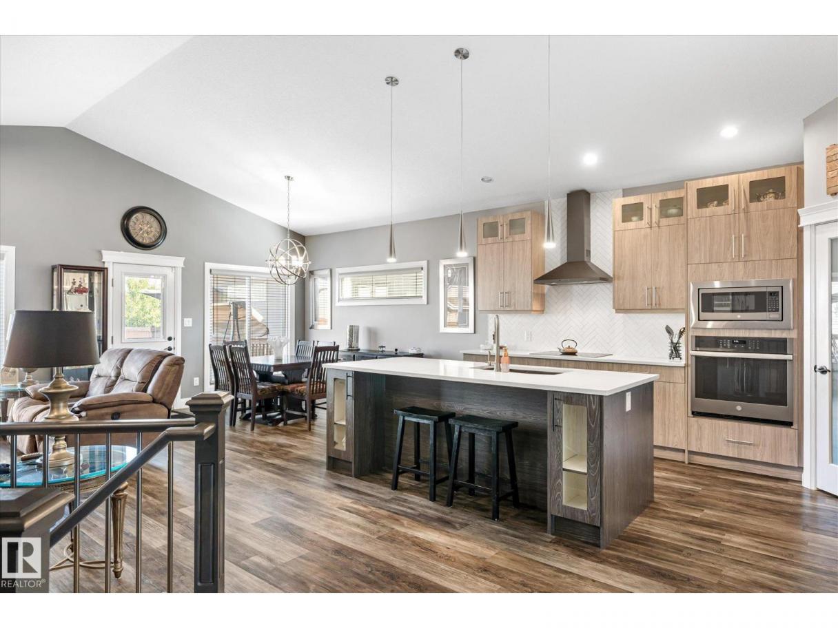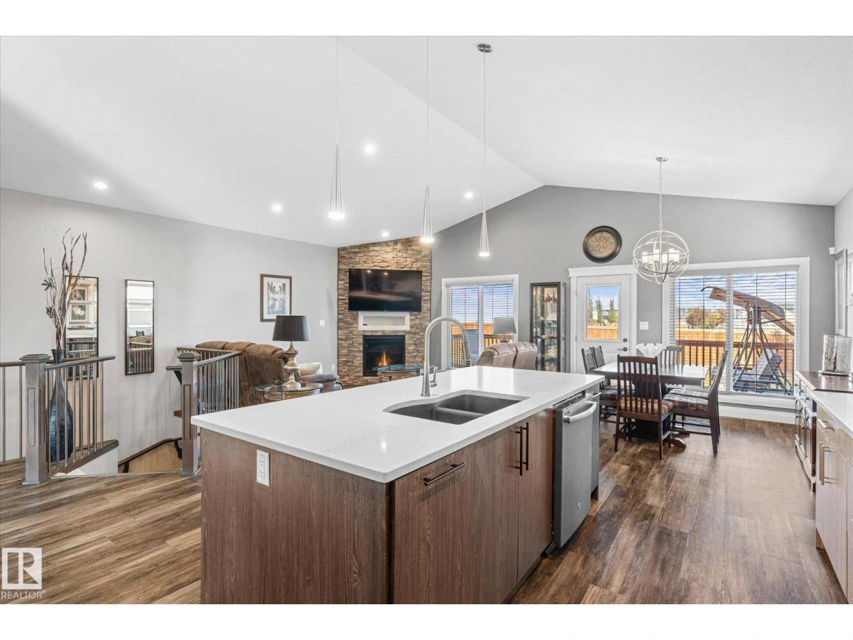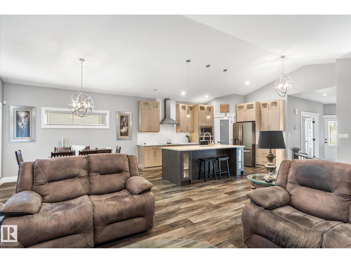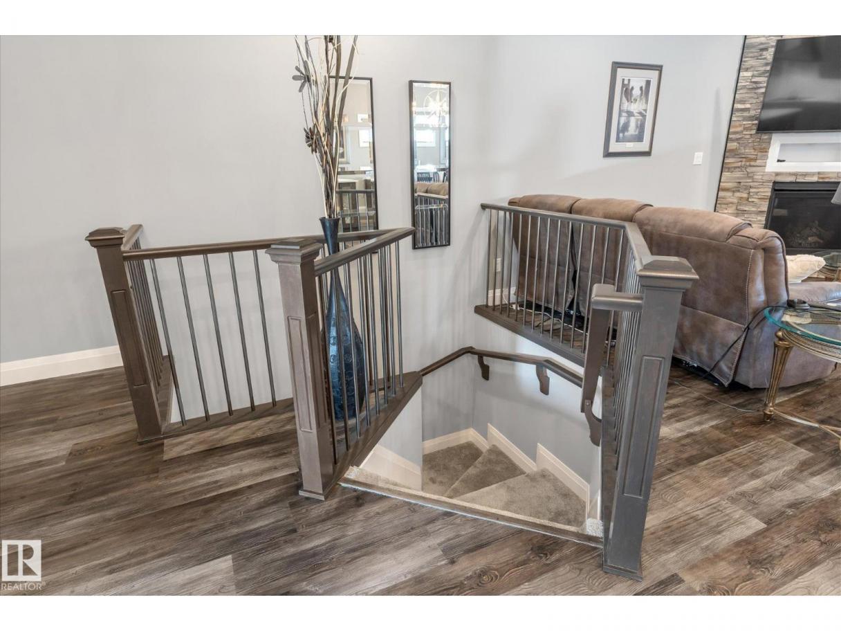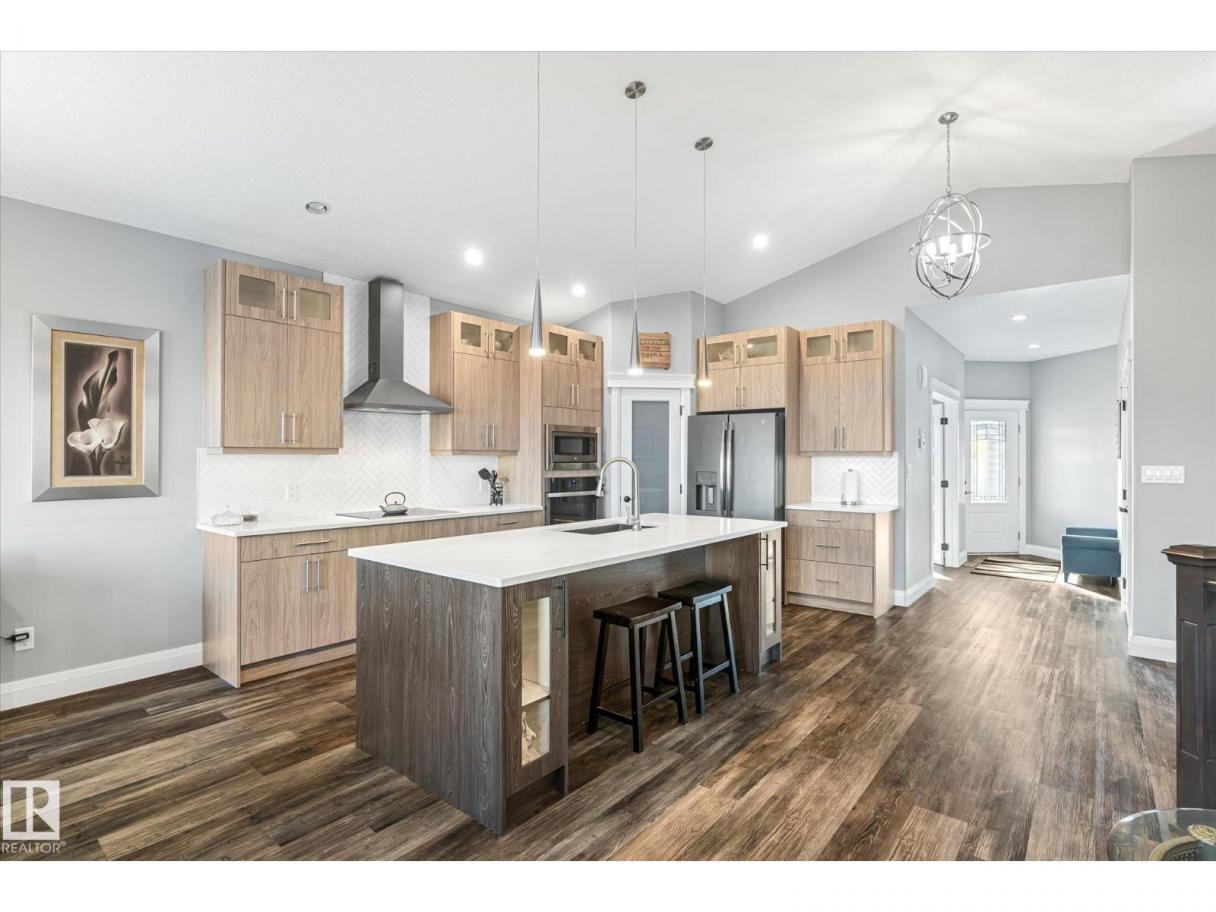 Exquisite custom-built bungalow with all the bells and whistles! Rare find in Fort Saskatchewan on a quiet cul-de-sac, partially backing a park for privacy. At 1,577 sq ft with fully finished basement, it offers high-end finishes and plenty of space for downsizers seeking single-floor living while keeping a functional basement. Stunning curb appeal includes a triple car garage and front veranda. Main floor features a bright den, warm fireplace in the living room, dining area, chef’s kitchen with stainless appliances, granite counters, island, and pantry. Mudroom with laundry, 4-pc main bath, and spacious primary bedroom with TWO walk-in closets and 5-pc ensuite with heated floors. Basement boasts high ceilings, large windows, 3 bedrooms, and massive rec space. Enjoy the back deck, landscaping, central A/C, and pristine condition — a true 10/10! (id:6769)