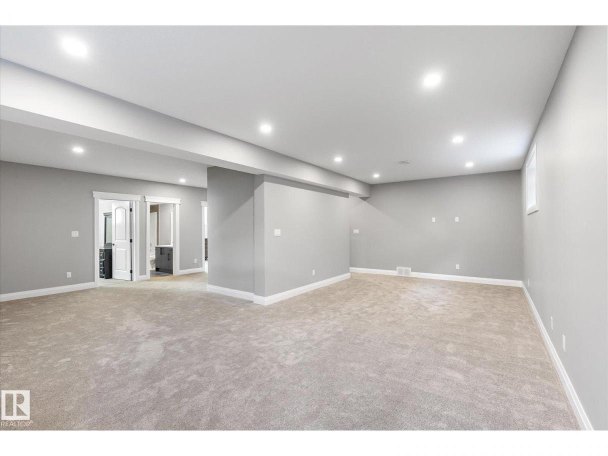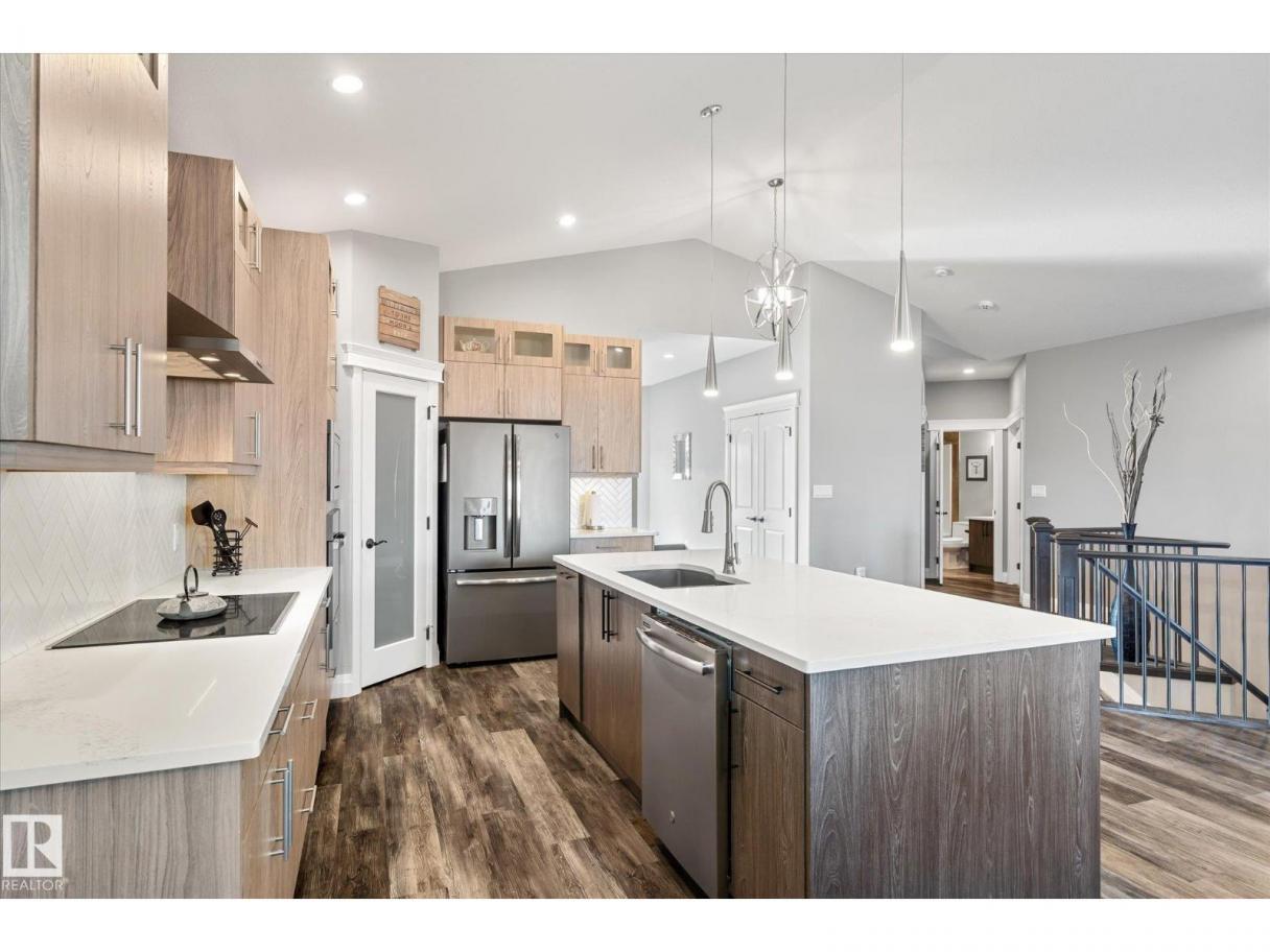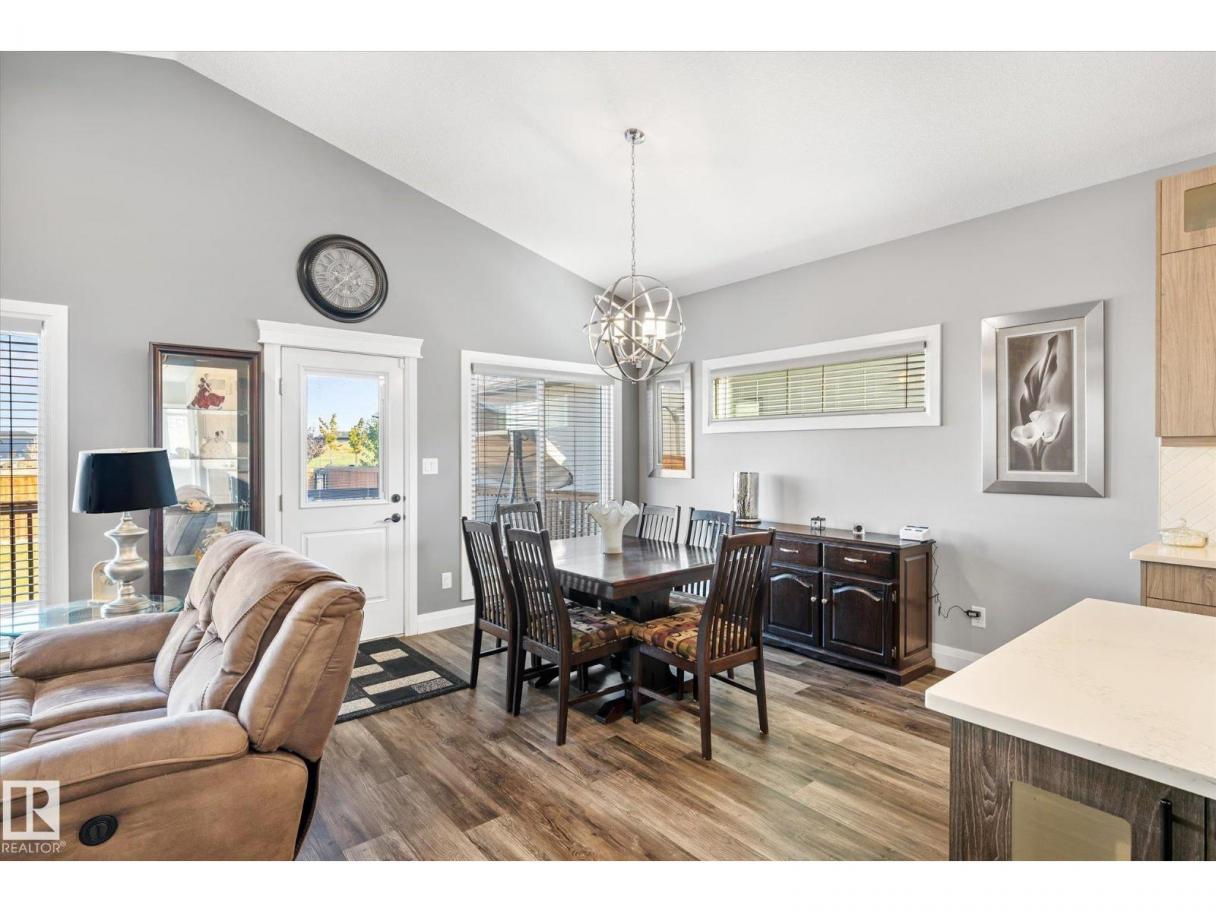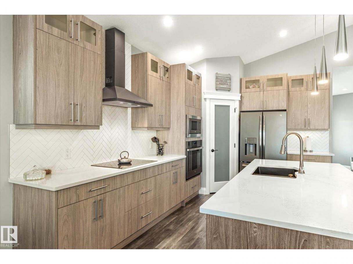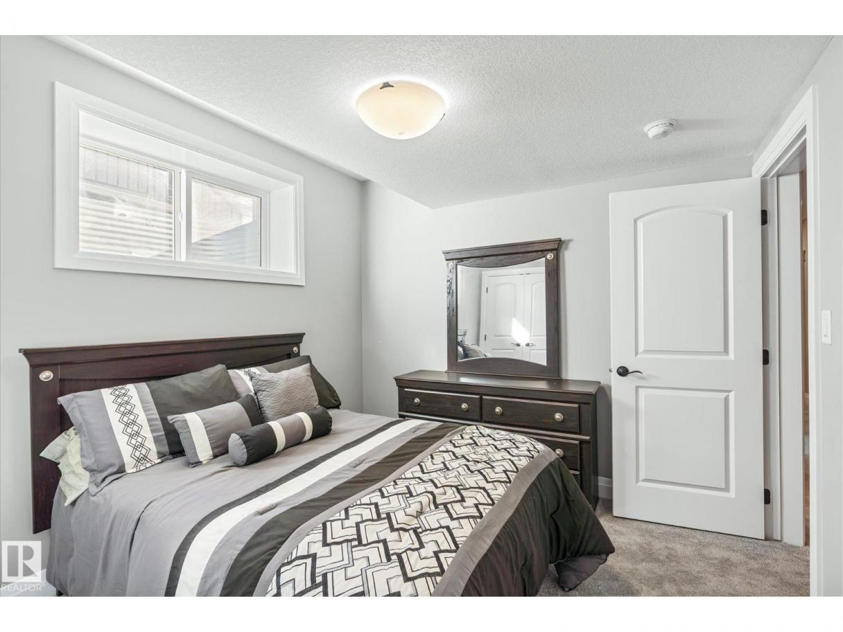 Exquisite custom-built bungalow with all the bells and whistles! Rare find in Fort Saskatchewan on a quiet cul-de-sac, partially backing a park for privacy. At 1,577 sq ft with fully finished basement, it offers high-end finishes and plenty of space for downsizers seeking single-floor living while keeping a functional basement. Stunning curb appeal includes a triple car garage and front veranda. Main floor features a bright den, warm fireplace in the living room, dining area, chef’s kitchen with stainless appliances, granite counters, island, and pantry. Mudroom with laundry, 4-pc main bath, and spacious primary bedroom with TWO walk-in closets and 5-pc ensuite with heated floors. Basement boasts high ceilings, large windows, 3 bedrooms, and massive rec space. Enjoy the back deck, landscaping, central A/C, and pristine condition — a true 10/10! (id:6769)