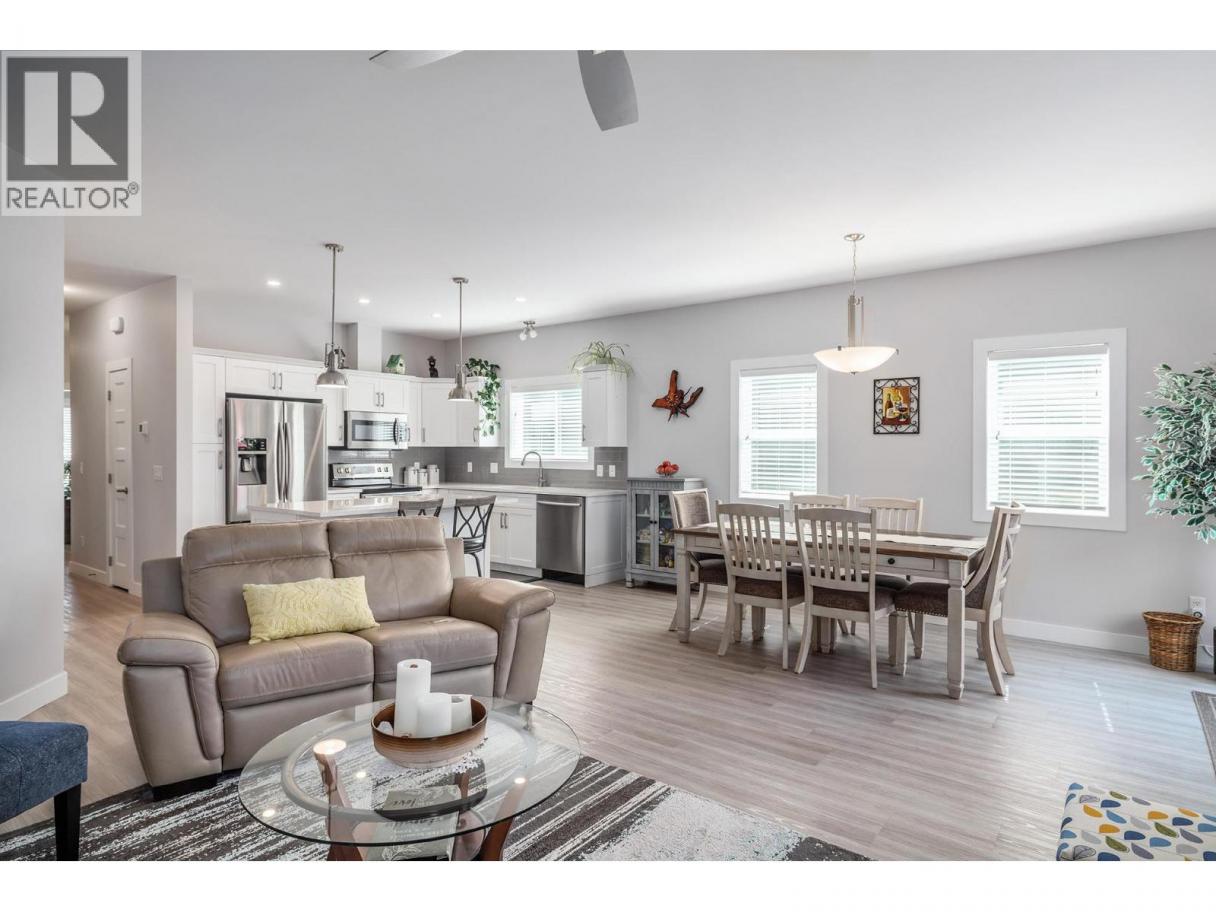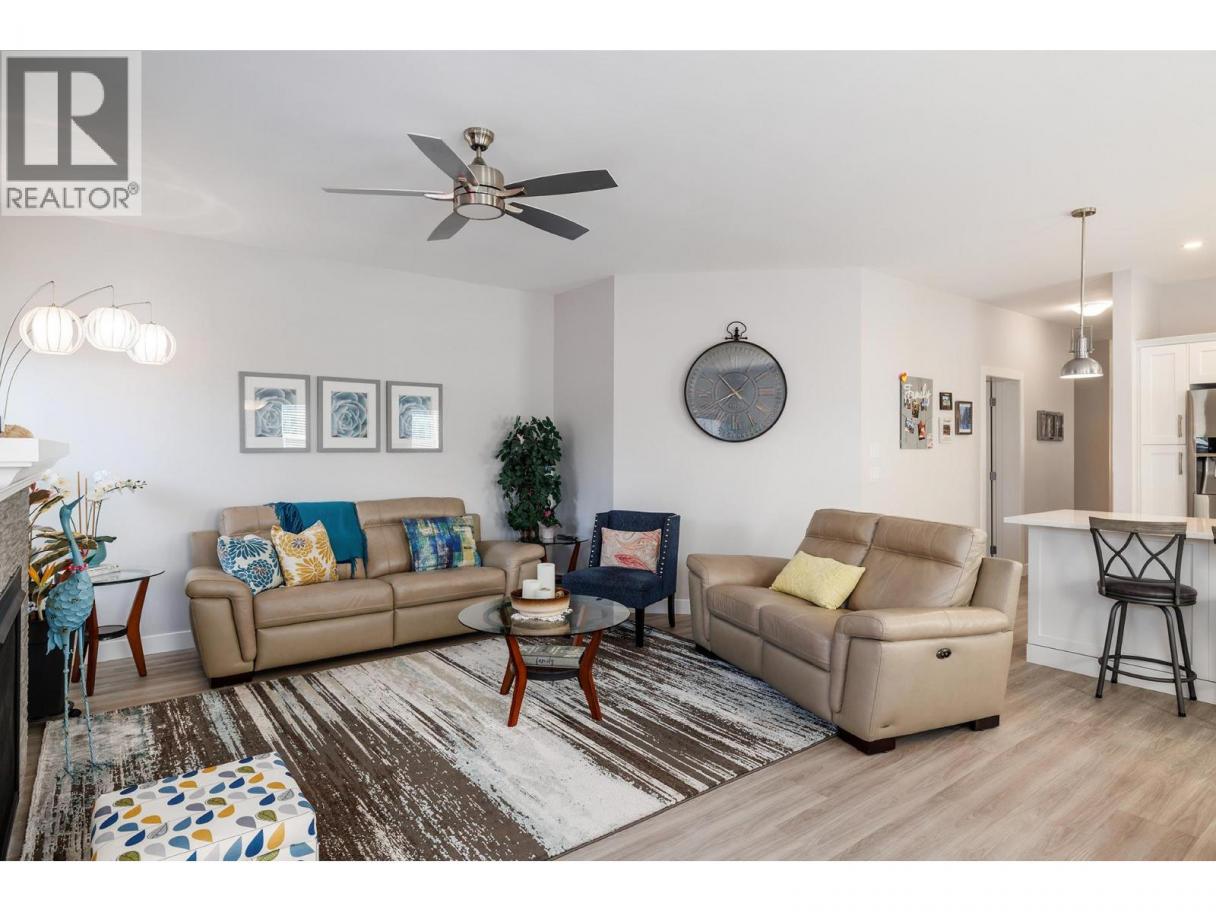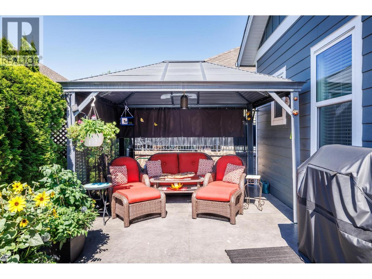 Thoughtfully designed, tastefully finished and a wonderful place to call home. Many extra features like solid surface countertops, open access to the den, lighting, rock, gas fireplace, extended dining area, exposed aggregate walkways and patios, covered gazebo, and more. Over $15,000 in extras packed into this beautiful property that all combine to make a difference. You really want to take your time and explore this gem. Large primary bedroom, a walk thru closet and oversized ensuite making this area a little oasis. The den is used as a TV room, making the living room ideal for relaxing or entertaining. Additional cabinetry in the garage for the handyman and for storage. FABULOUS LOCATION...right across from Two Eagles Golf Course and so close to shopping, dining, wineries and the lake. Take advantage of the beautiful Sage Creek Clubhouse, including a fitness center, party facilities and games room. No property transfer tax and strata fees of $625/month. So much value in this home - come and see for yourself. (id:6769)