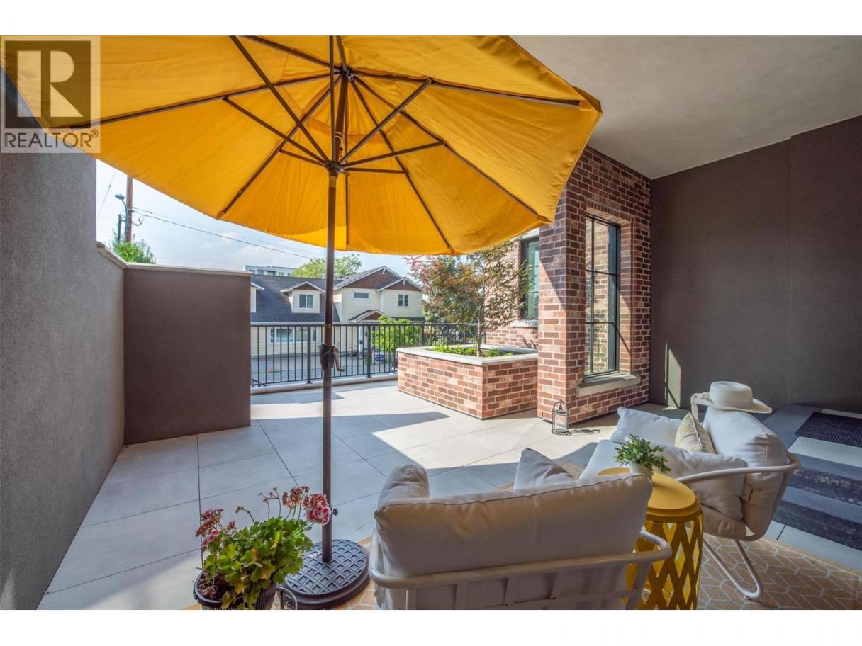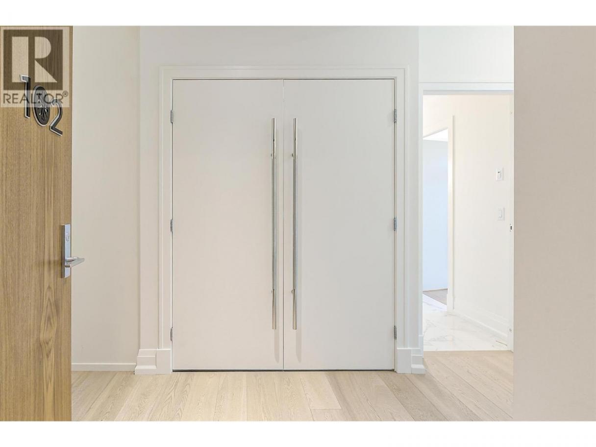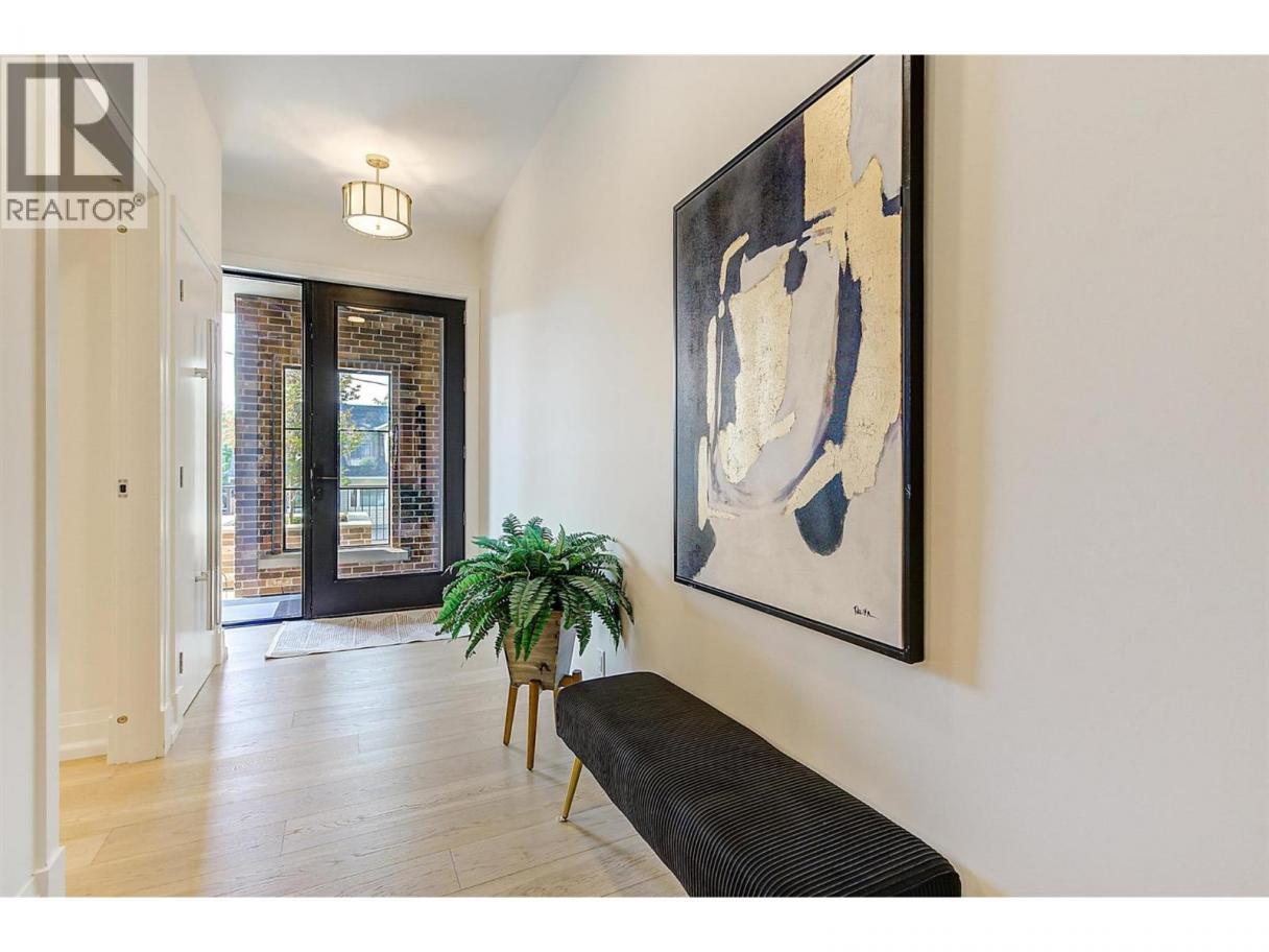 Luxury Living in Sought-After Pandosy.Experience refined urban living in this elegant main-level condominium, located in a prestigious six-storey concrete, steel, and brick building in the heart of Pandosy. Just steps to boutique shopping, dining, parks, beaches, and the hospital, this residence offers the perfect blend of sophistication and walkable convenience. Enjoy rare dual access with two points of entry, including a private street-level entrance with video monitoring and secure fob access for added peace of mind. The unique front-to-back layout delivers exceptional outdoor living with two private spaces: a welcoming front patio and an expansive 1,100+ sq. ft. rear patio backing onto tranquil Abbott Park. Designed for entertaining, the rear patio is pre-wired for a hot tub, features gas hookups for BBQ and fire table, and is fully wired for an outdoor kitchen. Inside, 10-foot ceilings, oversized windows, engineered hardwood floors, solid wood doors, and a cozy gas fireplace. The chef-inspired kitchen impresses with an expansive island, handcrafted backsplash, upgraded cabinetry, quartz countertops, and premium Bosch appliances, plus pre-wiring for a wine fridge discreetly tucked behind the wine storage rack. Two secure parking stalls with EV-ready charging and a private storage area. Only two residences per floor. This is luxury, low-maintenance living at its finest, ideal for those seeking a refined lock-and-leave lifestyle in one of Kelowna’s most desirable locations. (id:6769)