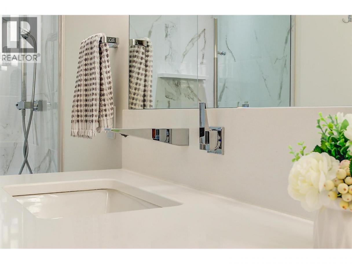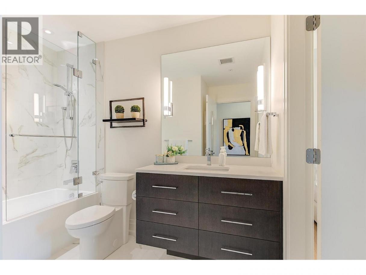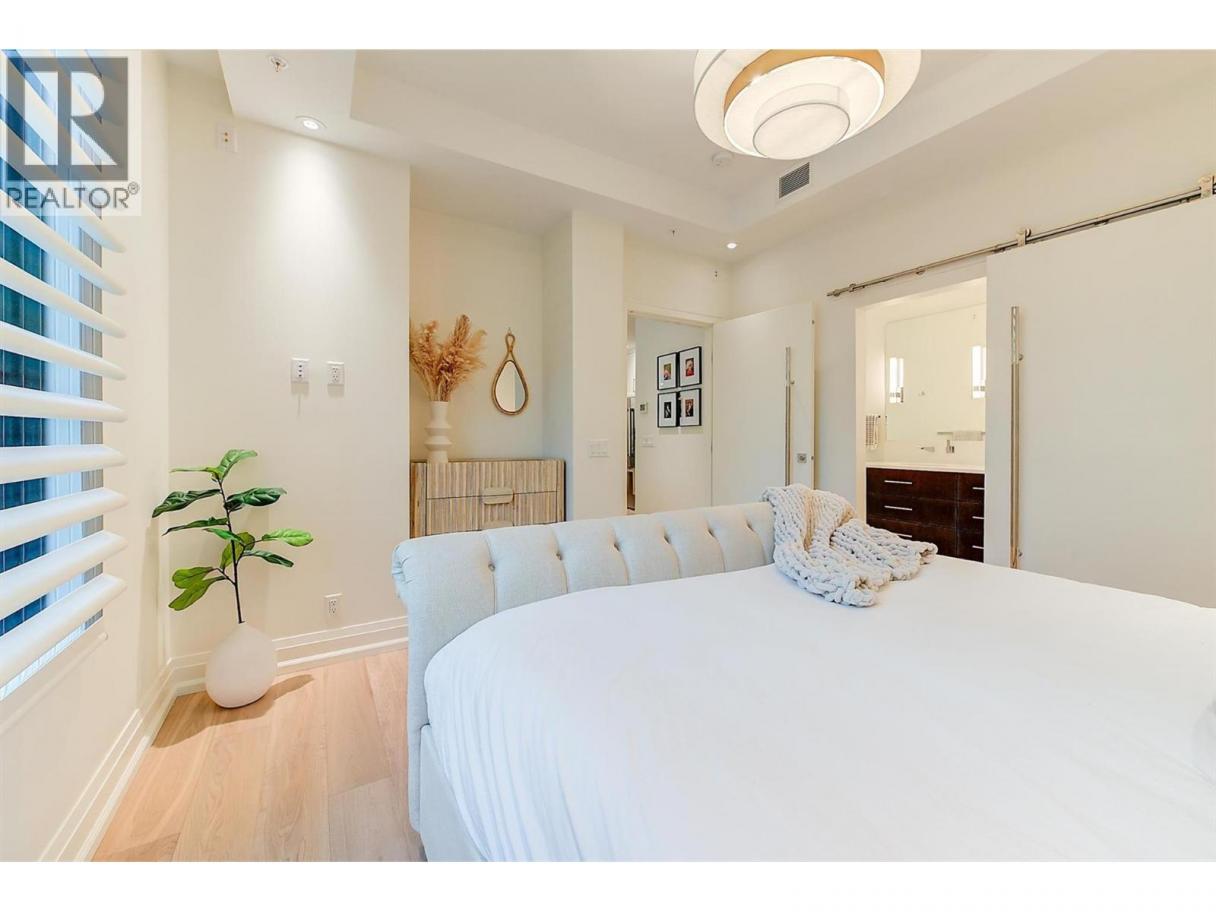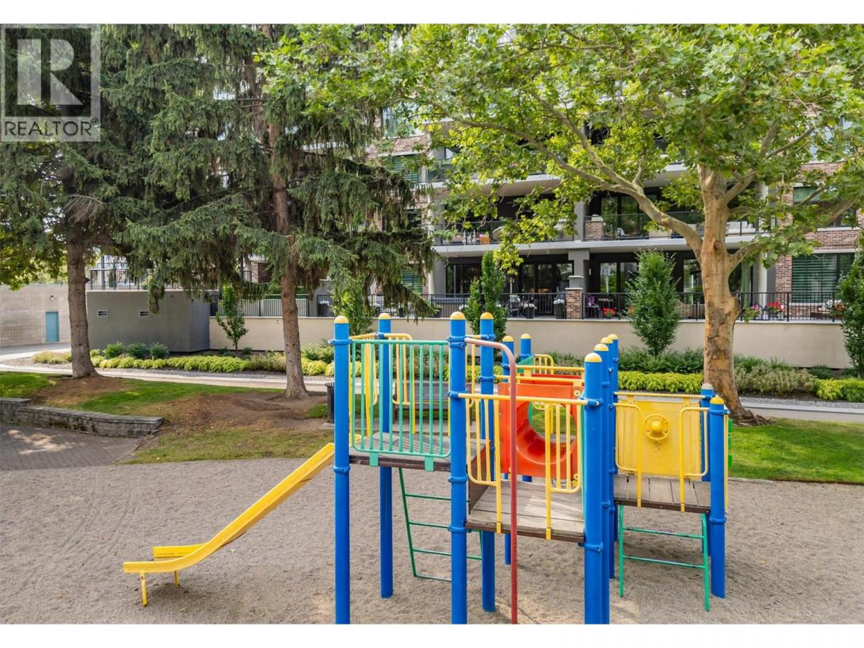 Luxury Living in Sought-After Pandosy.Experience refined urban living in this elegant main-level condominium, located in a prestigious six-storey concrete, steel, and brick building in the heart of Pandosy. Just steps to boutique shopping, dining, parks, beaches, and the hospital, this residence offers the perfect blend of sophistication and walkable convenience. Enjoy rare dual access with two points of entry, including a private street-level entrance with video monitoring and secure fob access for added peace of mind. The unique front-to-back layout delivers exceptional outdoor living with two private spaces: a welcoming front patio and an expansive 1,100+ sq. ft. rear patio backing onto tranquil Abbott Park. Designed for entertaining, the rear patio is pre-wired for a hot tub, features gas hookups for BBQ and fire table, and is fully wired for an outdoor kitchen. Inside, 10-foot ceilings, oversized windows, engineered hardwood floors, solid wood doors, and a cozy gas fireplace. The chef-inspired kitchen impresses with an expansive island, handcrafted backsplash, upgraded cabinetry, quartz countertops, and premium Bosch appliances, plus pre-wiring for a wine fridge discreetly tucked behind the wine storage rack. Two secure parking stalls with EV-ready charging and a private storage area. Only two residences per floor. This is luxury, low-maintenance living at its finest, ideal for those seeking a refined lock-and-leave lifestyle in one of Kelowna’s most desirable locations. (id:6769)
