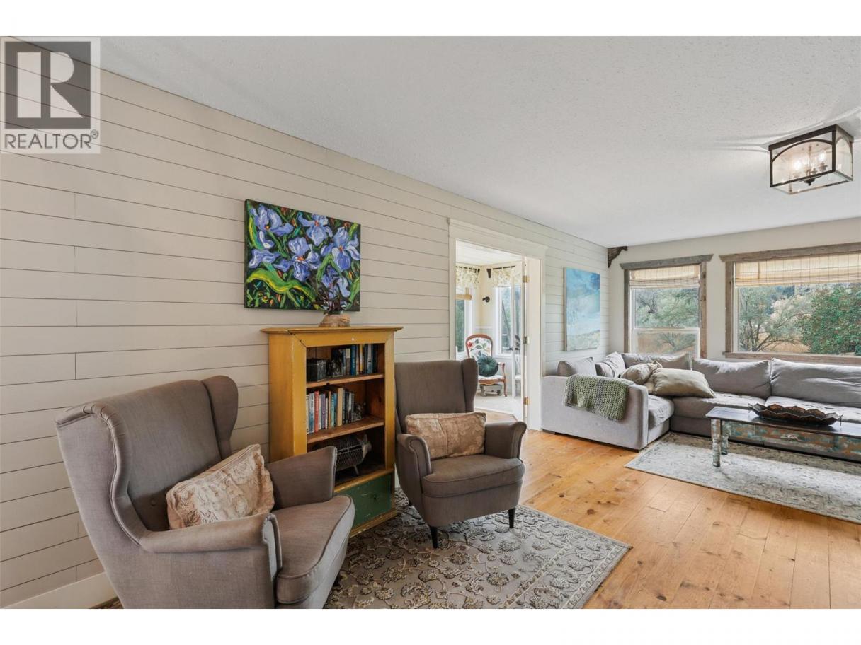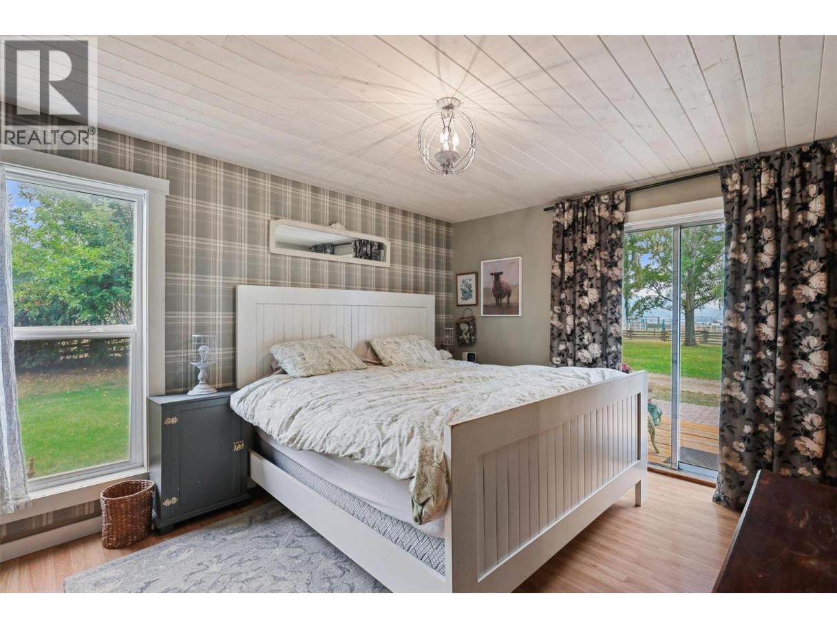 Experience the perfect blend of country charm and modern comfort with this beautifully updated farmhouse, set on 4.8 picturesque acres just 20 minutes from town. Thoughtfully upgraded while preserving its vintage character, the home offers 2 spacious bedrooms and 2 bathrooms on the main level, including a private primary suite with walk-in closet and ensuite. The inviting open-concept kitchen and dining area flow seamlessly into a cozy living room with fireplace, while a bright sunroom spans the full length of the home. The fully finished lower level adds two additional bedrooms, a full bathroom with an oversized walk-in shower, a versatile family room with walkout access to the backyard, and two generous storage rooms. Recent updates enhance both comfort and efficiency, including a newer furnace, central air conditioning, hot water on demand, built-in vacuum system, and upgraded appliances. Outside has a massive 60’ x 45’ powered shop with dedicated 200-amp service, plus an additional large outbuilding for extra storage. The spacious deck provides the perfect setting for entertaining, while the land features a thriving pumpkin patch, dedicated garden areas, and scenic frontage along Monte Creek. Contact the listing agent for more information. (id:6769)