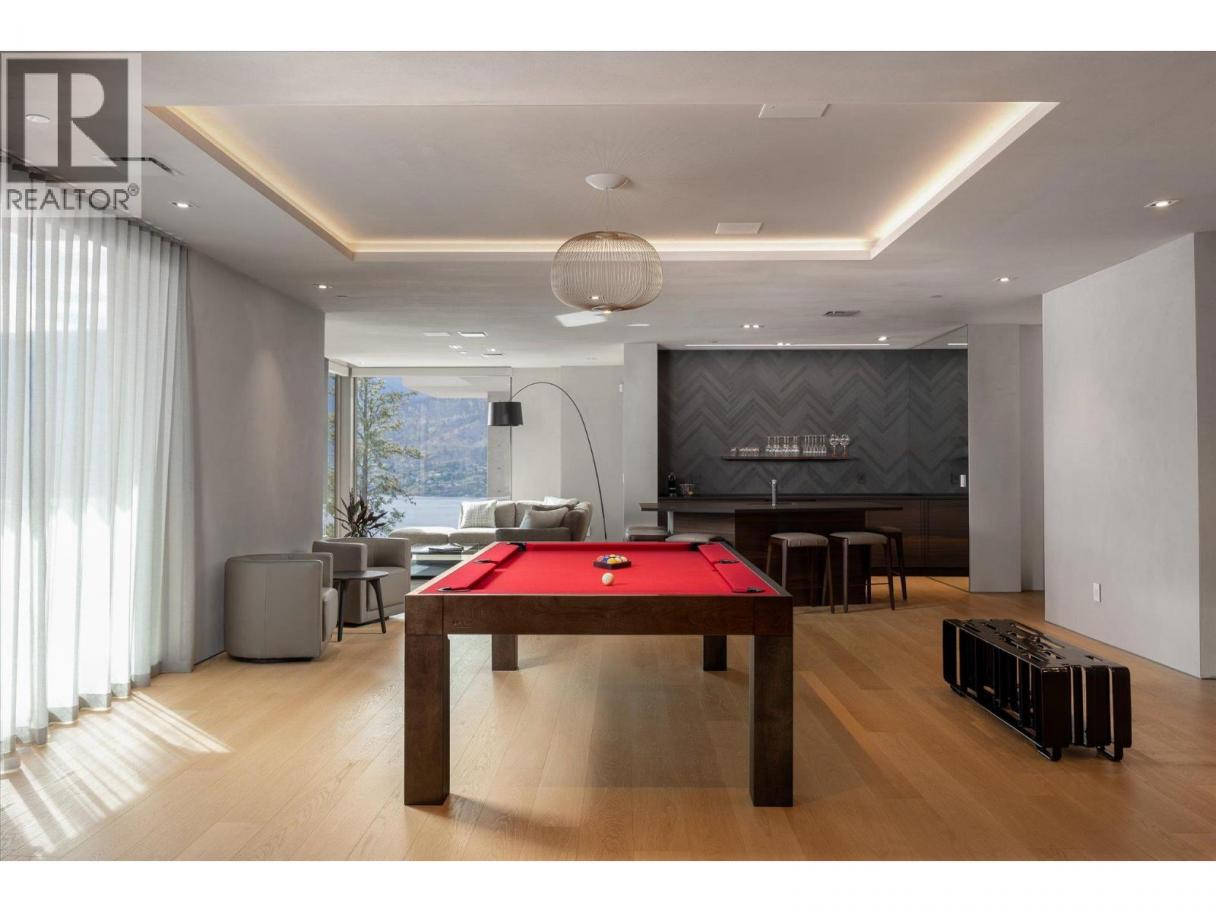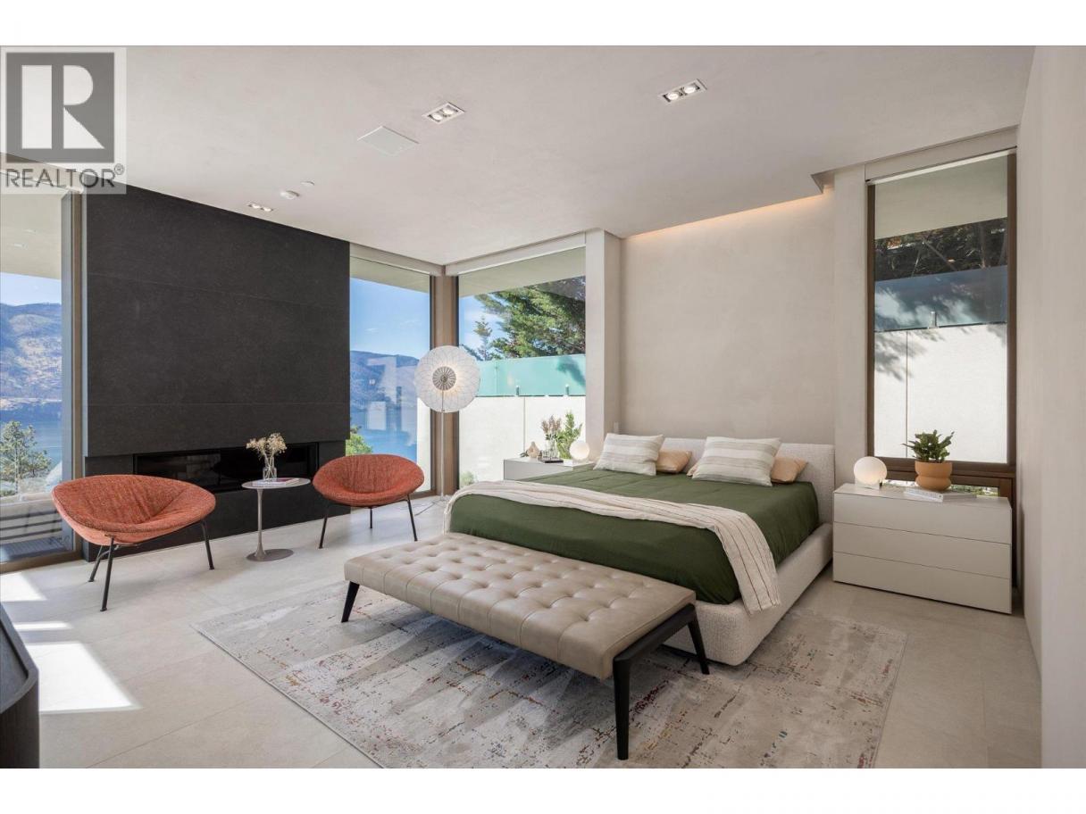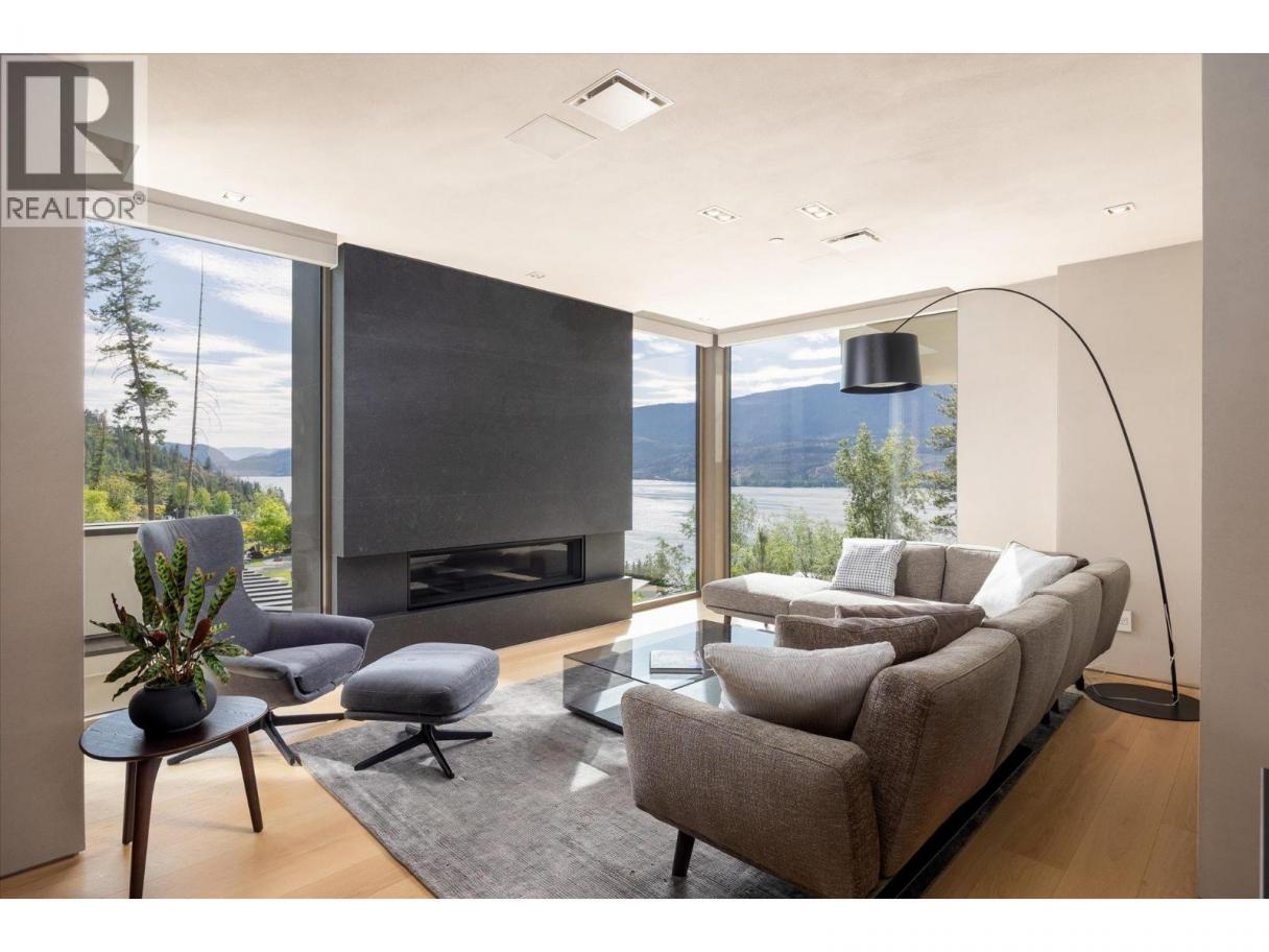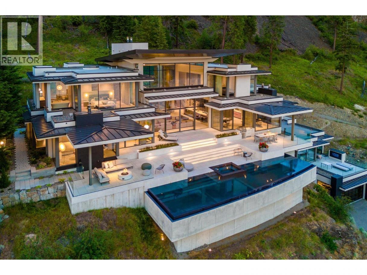 Nestled in exclusive Sheerwater, Mont des Cieux the prestigious 2023 Home of the Year awarded by the Okanagan Housing Awards of Excellence, offers the ultimate lakefront living experience. This luxurious 10,000 square foot custom residence is strategically designed to provide unparalleled privacy and breathtaking views of Okanagan Lake. Constructed primarily of steel, concrete, and glass, this home radiates a sophisticated warmth. The glass-enclosed elevator seamlessly connects the various levels. The expansive great room, featuring soaring ceilings and walls of windows, fills the space with natural light, creating a serene ambiance. Step outside to the infinity pool overlooking Okanagan Lake or find tranquility in the back hillside seating area beside a tiled pond and waterfall, both designed for your relaxation and enjoyment. With cutting-edge mechanical systems, solar panels, and a fully-automated Crestron system, this visionary masterpiece stands out in the Okanagan region. Imported triple-pane windows from Austria, glass panels from Germany, millwork from Italy, furniture from Australia, and gym equipment from Poland all ensure this home is of the highest international standard. Boasting three primary suites, a state-of-the-art theater, and a wine cellar capable of storing over 300 bottles, Mont des Cieux offers a lifestyle of unparalleled luxury and sophistication. Embrace the Okanagan lifestyle with the benefit of lakefront access and your boat slip at the private wharf. (id:6769)