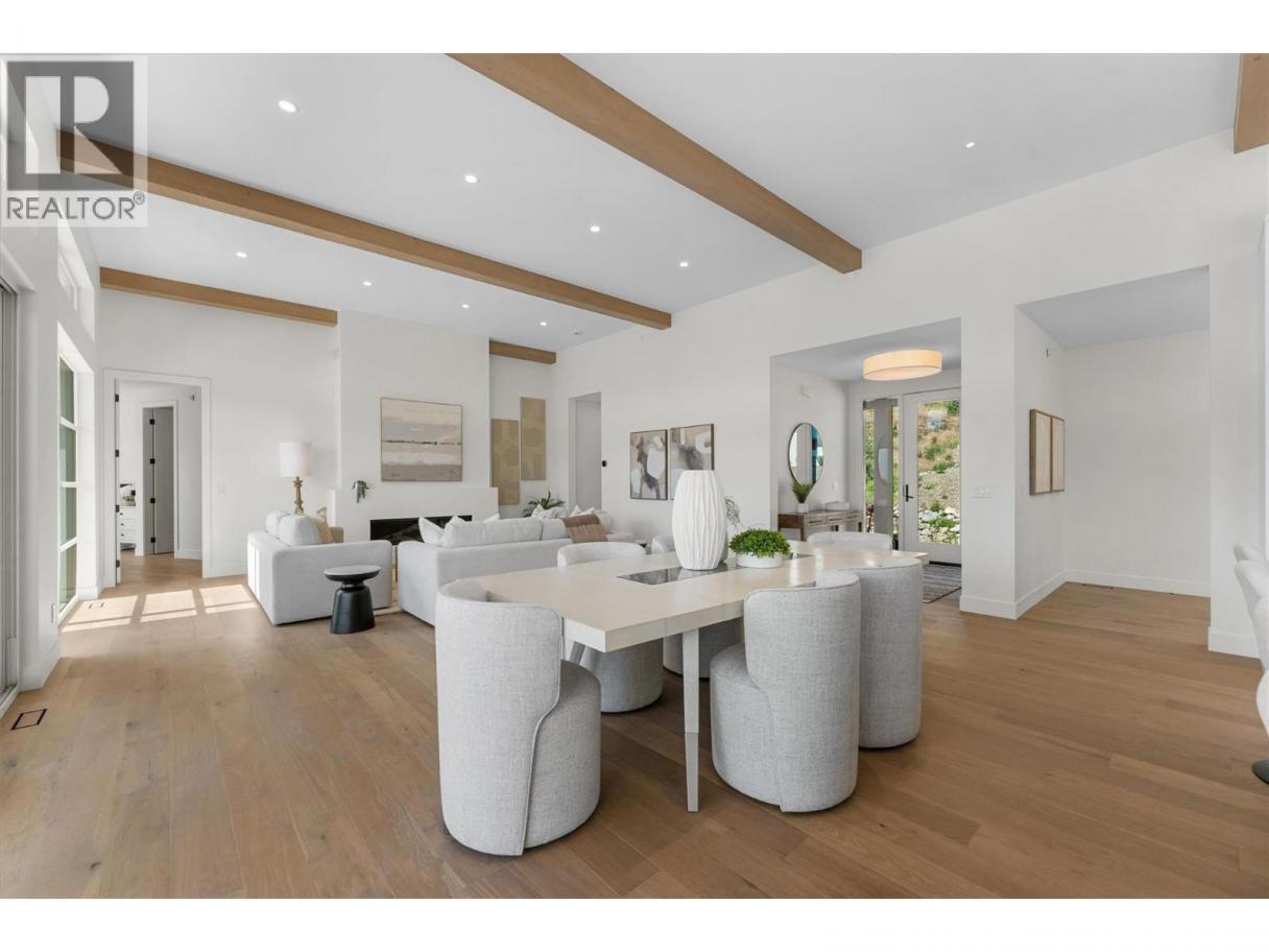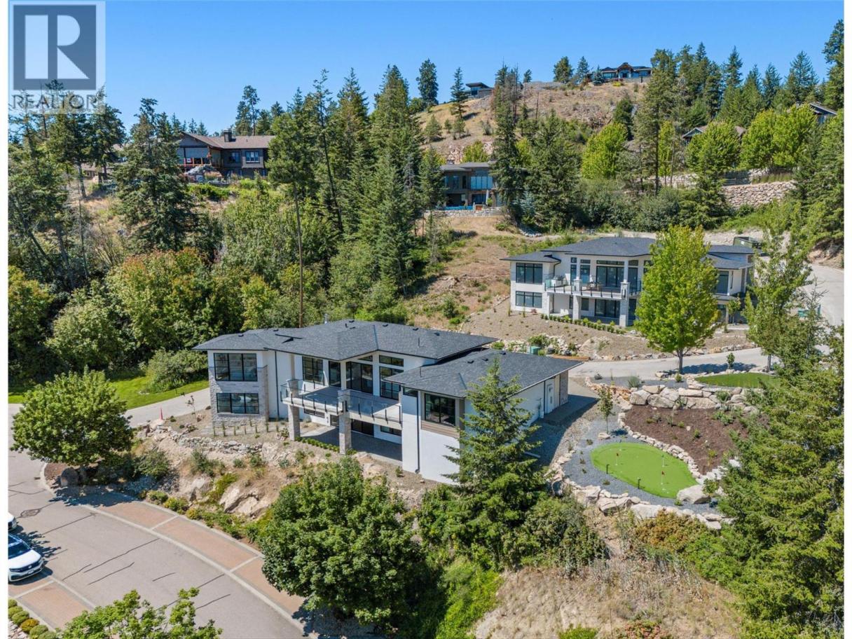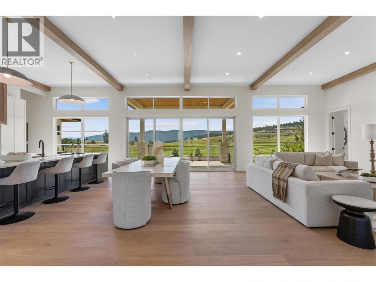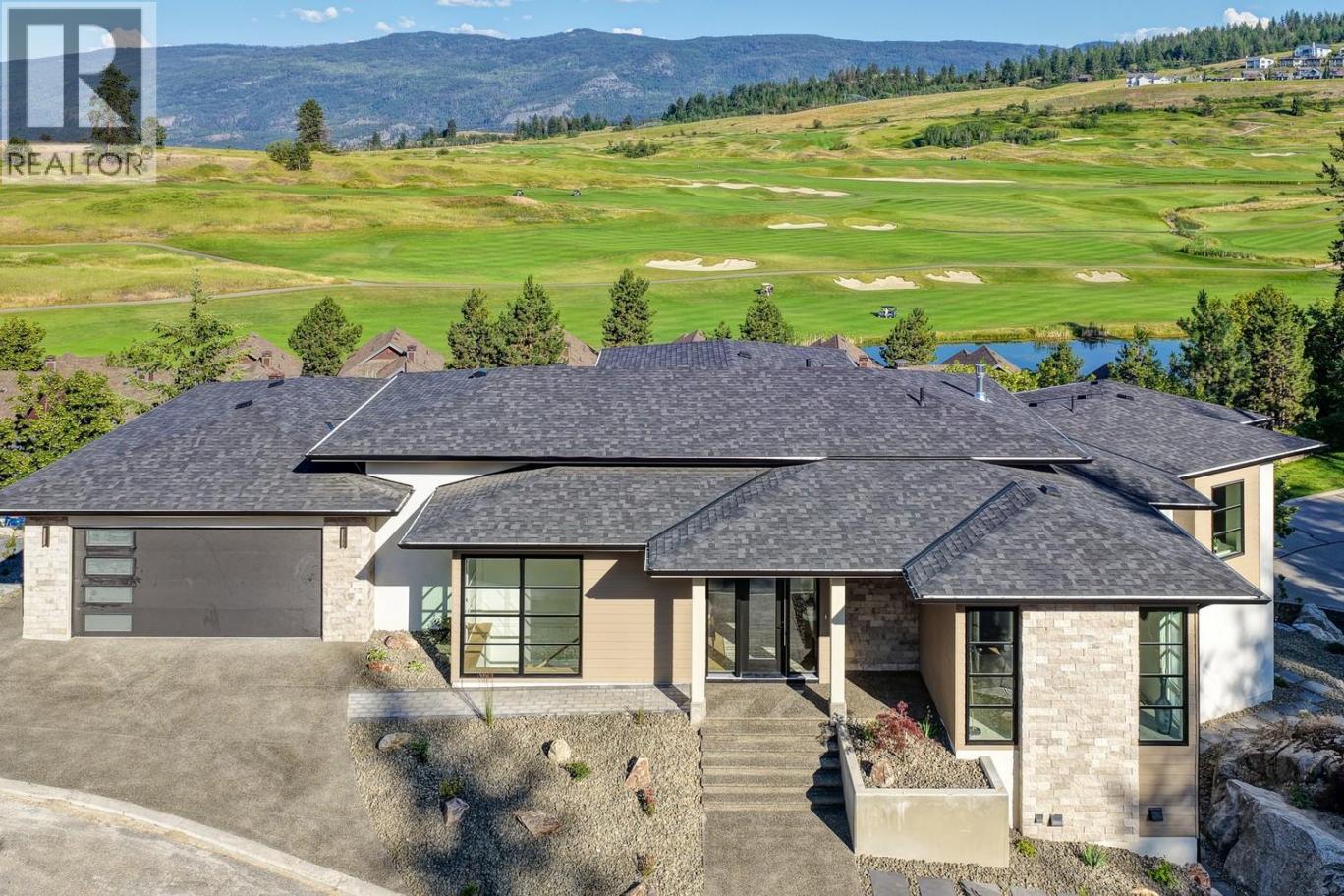 NO SPEC/VACANCY TAX. Modern luxury meets resort-style living in this brand-new residence at Predator Ridge’s prestigious Falcon Point. With over 4,000 sq. ft. of refined design, this 5 bed, 4 bath home is perfectly positioned to capture golf course and mountain views. Expansive windows and 12 ft. ceilings with exposed beams set the tone in the main living space, where a sleek fireplace and engineered hardwood floors create an elegant yet inviting atmosphere. The chef’s kitchen is a true centerpiece, featuring a Fisher & Paykel appliance package, entertainment-sized waterfall island, and seamless access to a covered patio complete with an outdoor kitchen. The main floor offers a serene primary retreat with spa-inspired 5-piece ensuite and a second bedroom or use as an office. The lower level is designed for entertaining with a spacious rec room, wet bar, and patio ready for a hot tub. A secondary primary suite with ensuite and walk-in closet, plus two additional bedrooms and a den/gym, provide excellent space for family and guests. An amazing 4-car garage, fully landscaped grounds, and thoughtful finishes throughout reflect exceptional attention to detail. Enjoy the unparalleled lifestyle of Predator Ridge, Canada’s premier four-season resort community, offering 36 holes of championship golf, a racquet club, miles of trails, Sparkling Hill Resort nearby, and world-class wineries just minutes away. GST applicable. (id:6769)