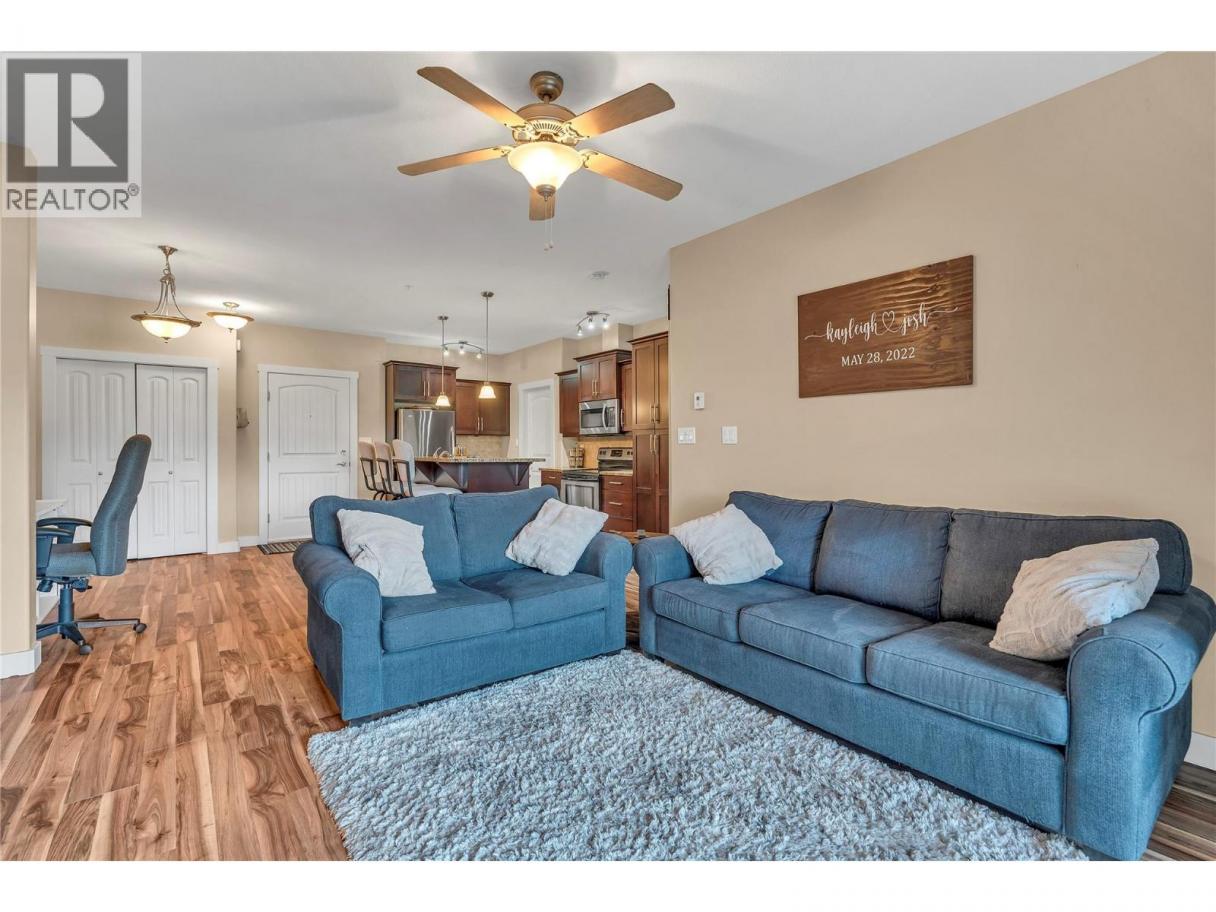 Welcome to 13615 Victoria Rd N - The perfect blend of convenience, comfort, & contemporary living. Stylish One Bedroom + Den in Victoria Place – Summerland’s Premier Address. This standout complex is in the heart of Summerland, thoughtfully designed a step above the rest. This chic 1-bedroom + den, 2 bathroom home offers sophisticated comfort with 9-foot ceilings, granite countertops, an electric fireplace, & in-floor radiant heating paired with a ductless heat pump for energy-efficient, year-round climate control. Enjoy beautiful east-facing views & an expansive entertainment-sized deck—perfect for gardening, relaxing, or hosting guests. Inside, the open-concept living space is flooded with natural light, creating a bright & welcoming atmosphere throughout the day. The primary bedroom features a spacious 4-piece ensuite, while a convenient 3 piece guest bathroom adds functionality & privacy for visitors. The den offers flexible space for a home office or an extra sleeping area. This home is especially quiet with virtually no noise transfer between units, and with no neighbour on one side, it feels exceptionally private. The building is well-maintained & welcomes all ages, pets, & rentals, offering remarkable flexibility for homeowners & investors. Other highlights include secure parking, a storage locker, in-suite laundry, a central vacuum system, and low strata fees (approx $200/mth). Just steps from downtown Summerland’s charming shops & everyday amenities. (id:6769)