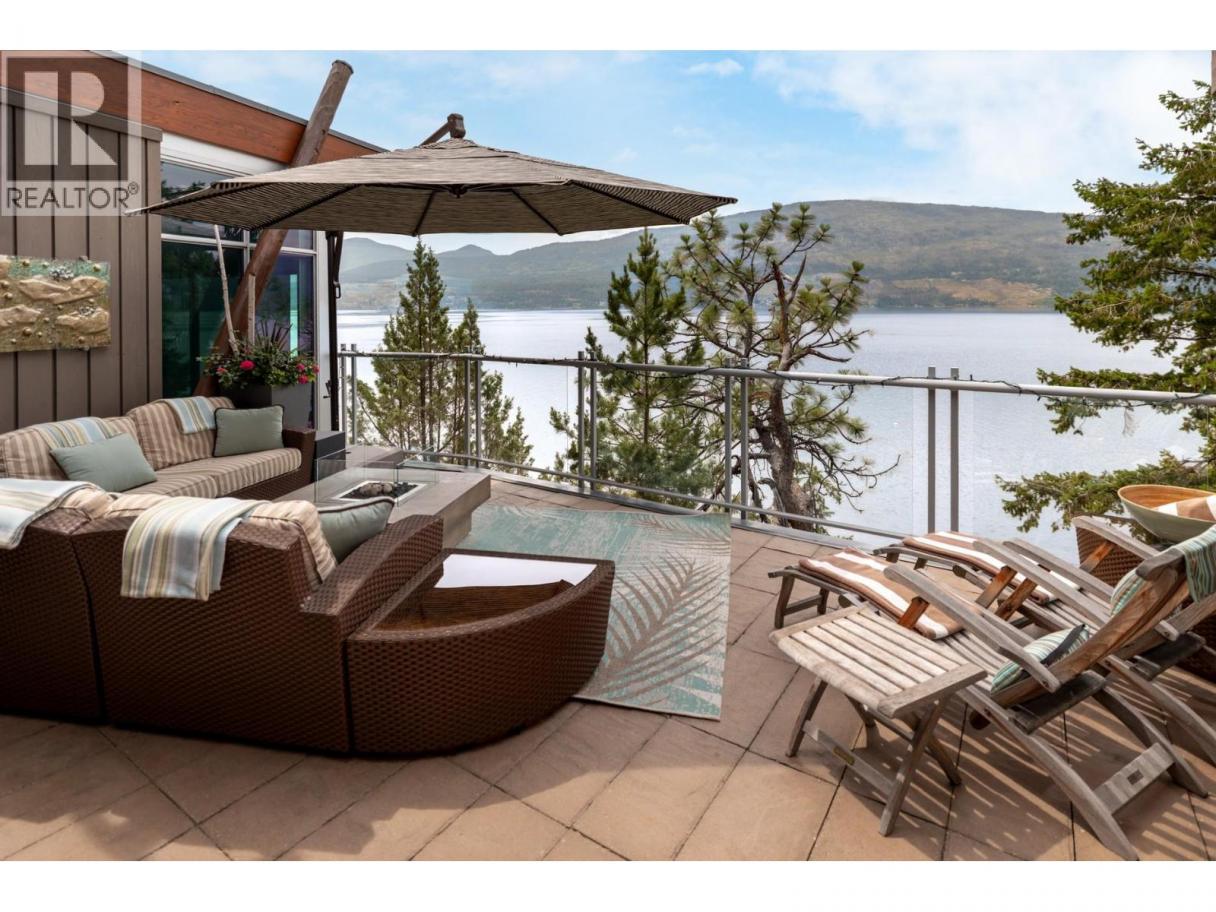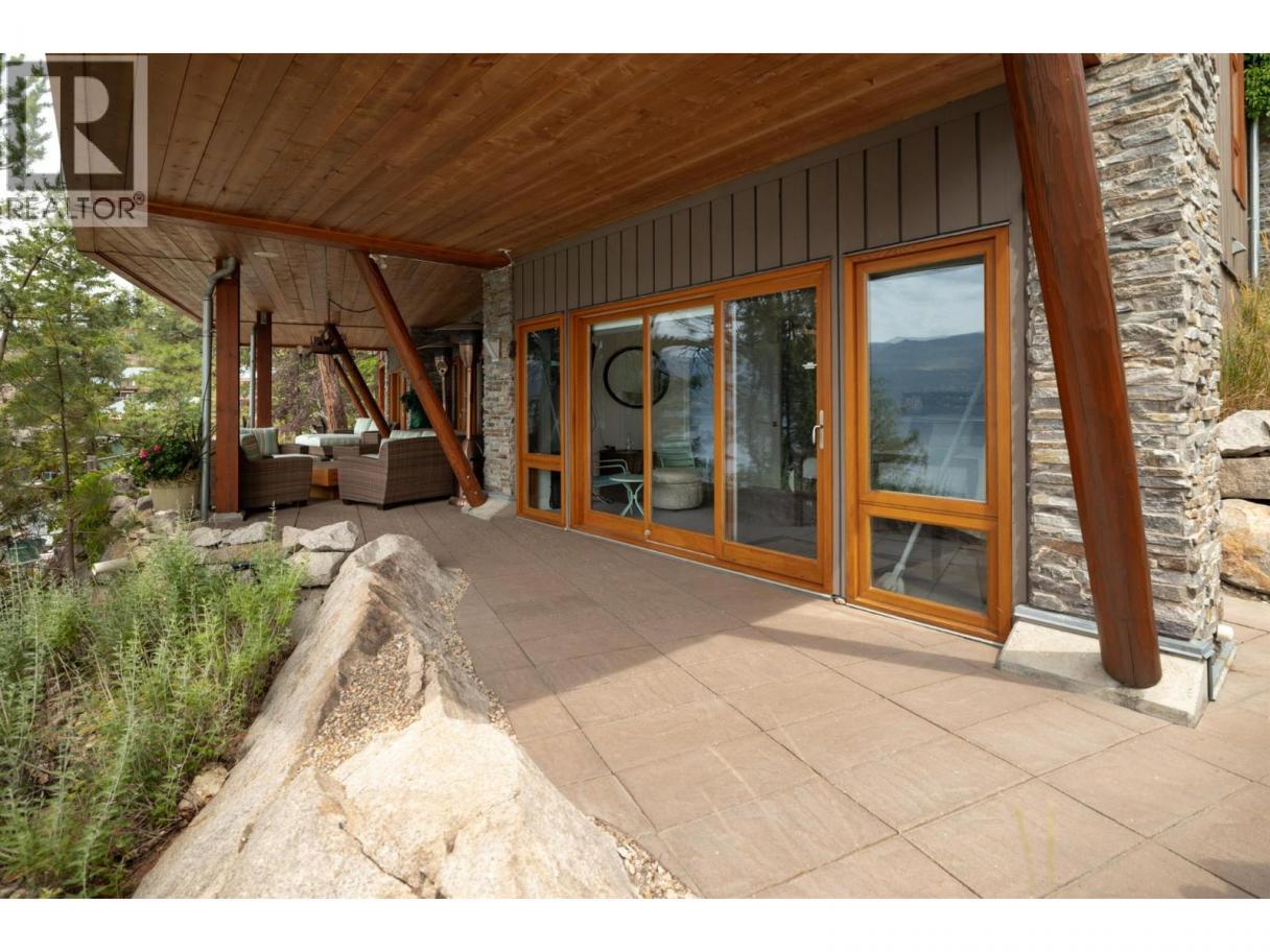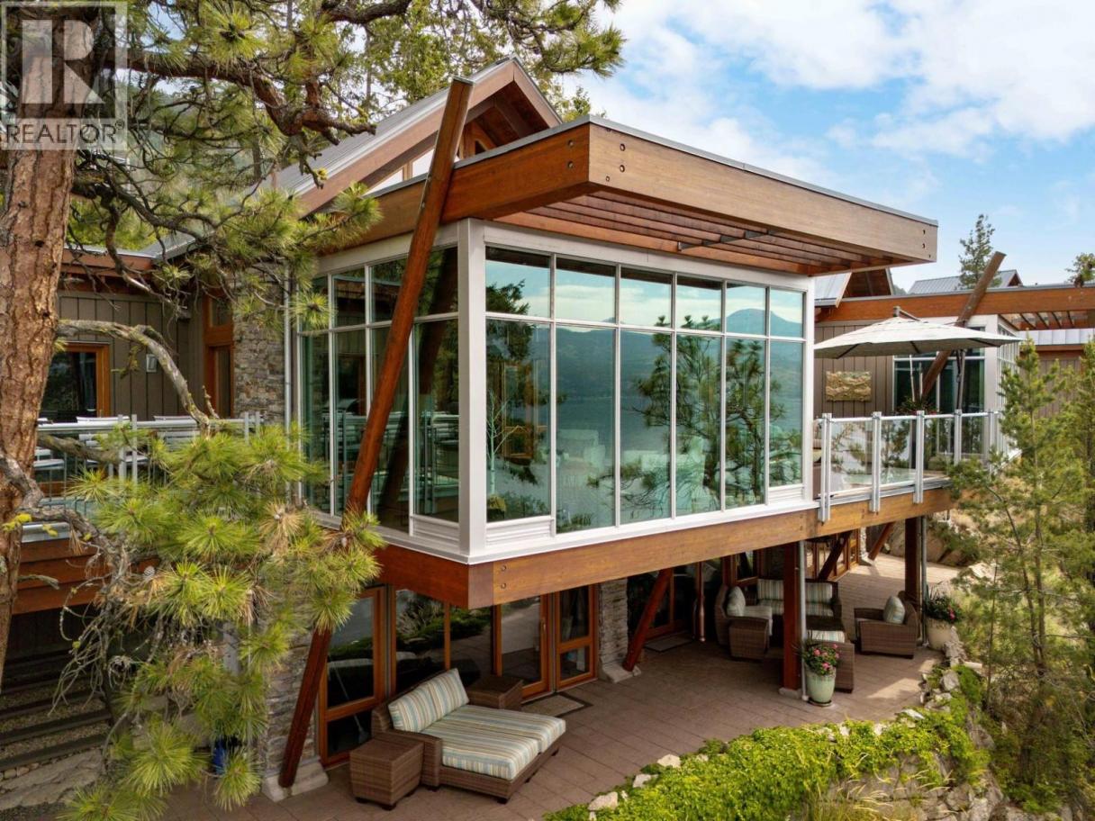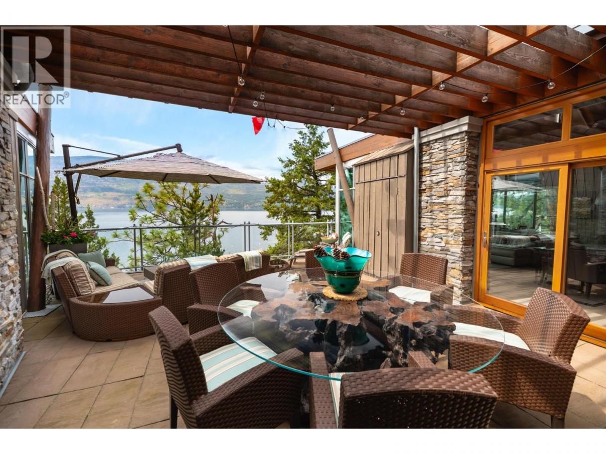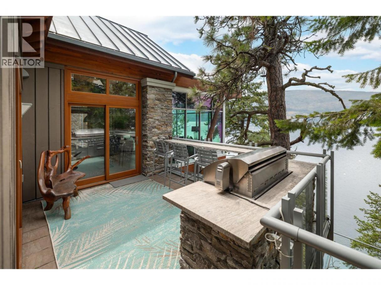 Perched above the shoreline in the exclusive Outback community, this one-of-a-kind cantilevered lakefront home is a West Coast-inspired masterpiece that blends bold architecture with the serenity of nature. Crafted into the rocky knoll, the 5 bedroom, 4 bathroom custom residence offers 3,423 sq.ft. of thoughtfully designed living space and over 1,200 sq.ft. of multilevel outdoor terraces, all with panoramic lake views. Vaulted timber ceilings, expansive windows, and organic materials create a seamless connection between indoors and out. The chef’s kitchen features brand-new Sub-zero appliances and a one-of-a-kind burl piece from California’s iconic Redwood forest, while the living room and primary suite are both framed by uninterrupted vista views of Okanagan Lake. Luxurious features include a lakeside hot tub, media room, multiple lounging decks, and a lower-level recreation room—perfect for entertaining or unwinding in privacy. 3 owned parking stalls as an added bonus. As part of The Outback’s resort-style community, enjoy access to the private marina, two sandy swimming bays, tennis courts, two pools with hot tubs, a fitness center, and a lakeside fire pit lounging area adjacent to the rare salmon spawning bay. Surrounded by protected parkland, this is a true retreat for those seeking immersive natural luxury. Enjoy direct access to scenic hiking and biking trails and take advantage of the close proximity to the neighboring resort community of Predator Ridge. (id:6769)