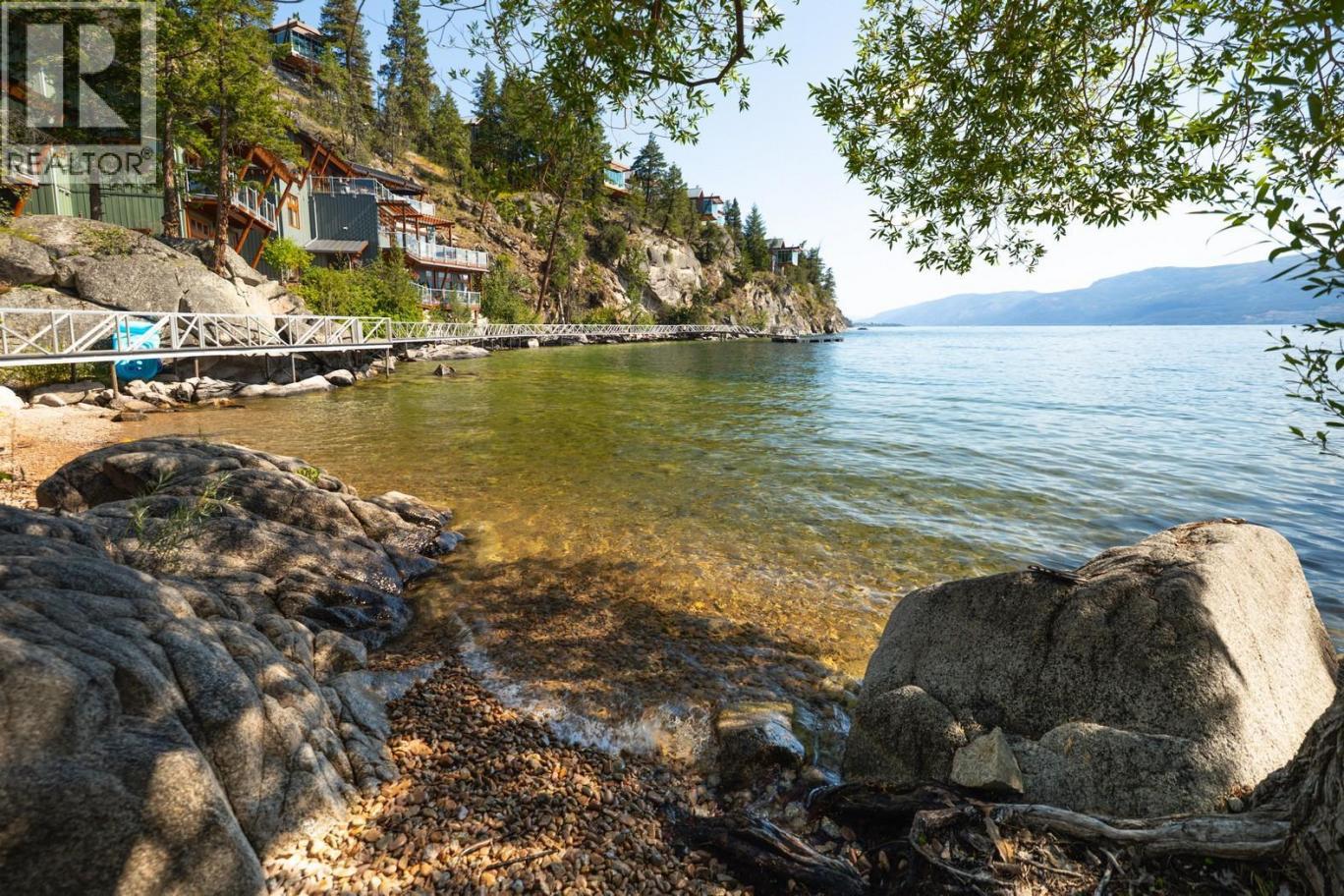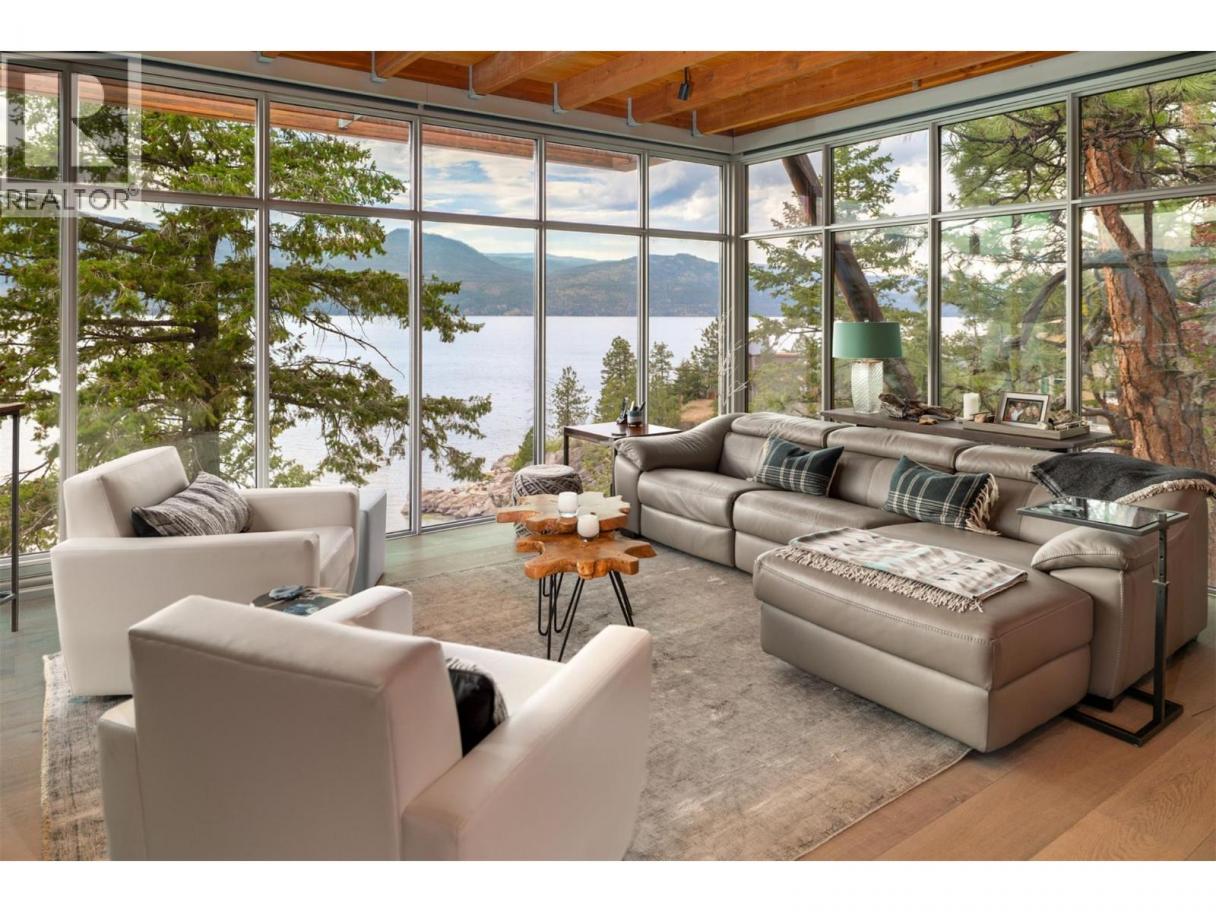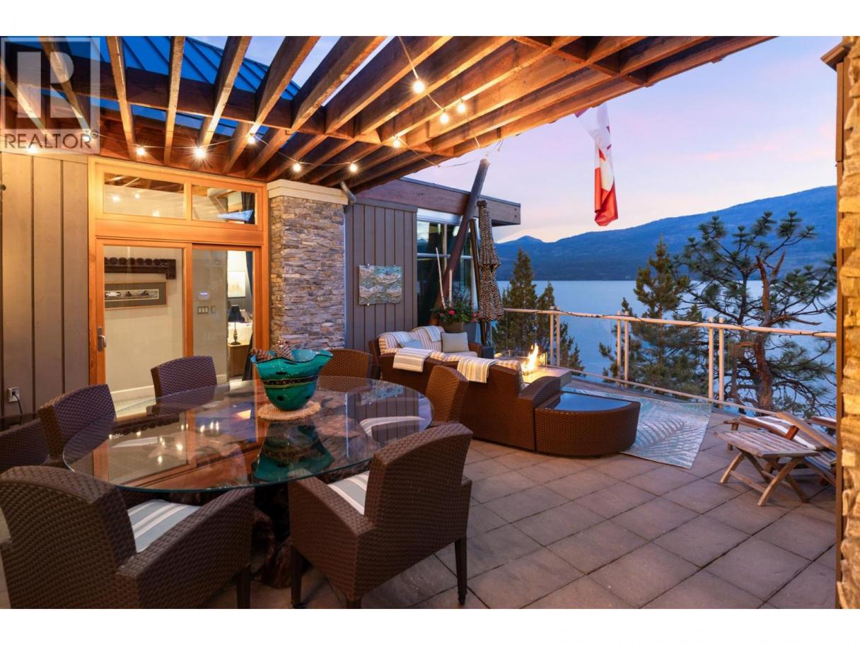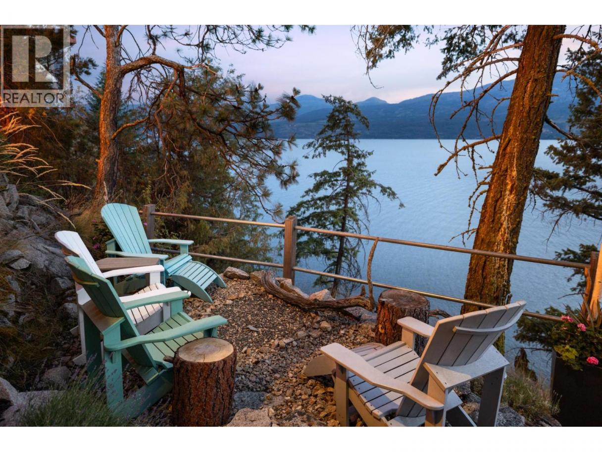 Perched above the shoreline in the exclusive Outback community, this one-of-a-kind cantilevered lakefront home is a West Coast-inspired masterpiece that blends bold architecture with the serenity of nature. Crafted into the rocky knoll, the 5 bedroom, 4 bathroom custom residence offers 3,423 sq.ft. of thoughtfully designed living space and over 1,200 sq.ft. of multilevel outdoor terraces, all with panoramic lake views. Vaulted timber ceilings, expansive windows, and organic materials create a seamless connection between indoors and out. The chef’s kitchen features brand-new Sub-zero appliances and a one-of-a-kind burl piece from California’s iconic Redwood forest, while the living room and primary suite are both framed by uninterrupted vista views of Okanagan Lake. Luxurious features include a lakeside hot tub, media room, multiple lounging decks, and a lower-level recreation room—perfect for entertaining or unwinding in privacy. 3 owned parking stalls as an added bonus. As part of The Outback’s resort-style community, enjoy access to the private marina, two sandy swimming bays, tennis courts, two pools with hot tubs, a fitness center, and a lakeside fire pit lounging area adjacent to the rare salmon spawning bay. Surrounded by protected parkland, this is a true retreat for those seeking immersive natural luxury. Enjoy direct access to scenic hiking and biking trails and take advantage of the close proximity to the neighboring resort community of Predator Ridge. (id:6769)