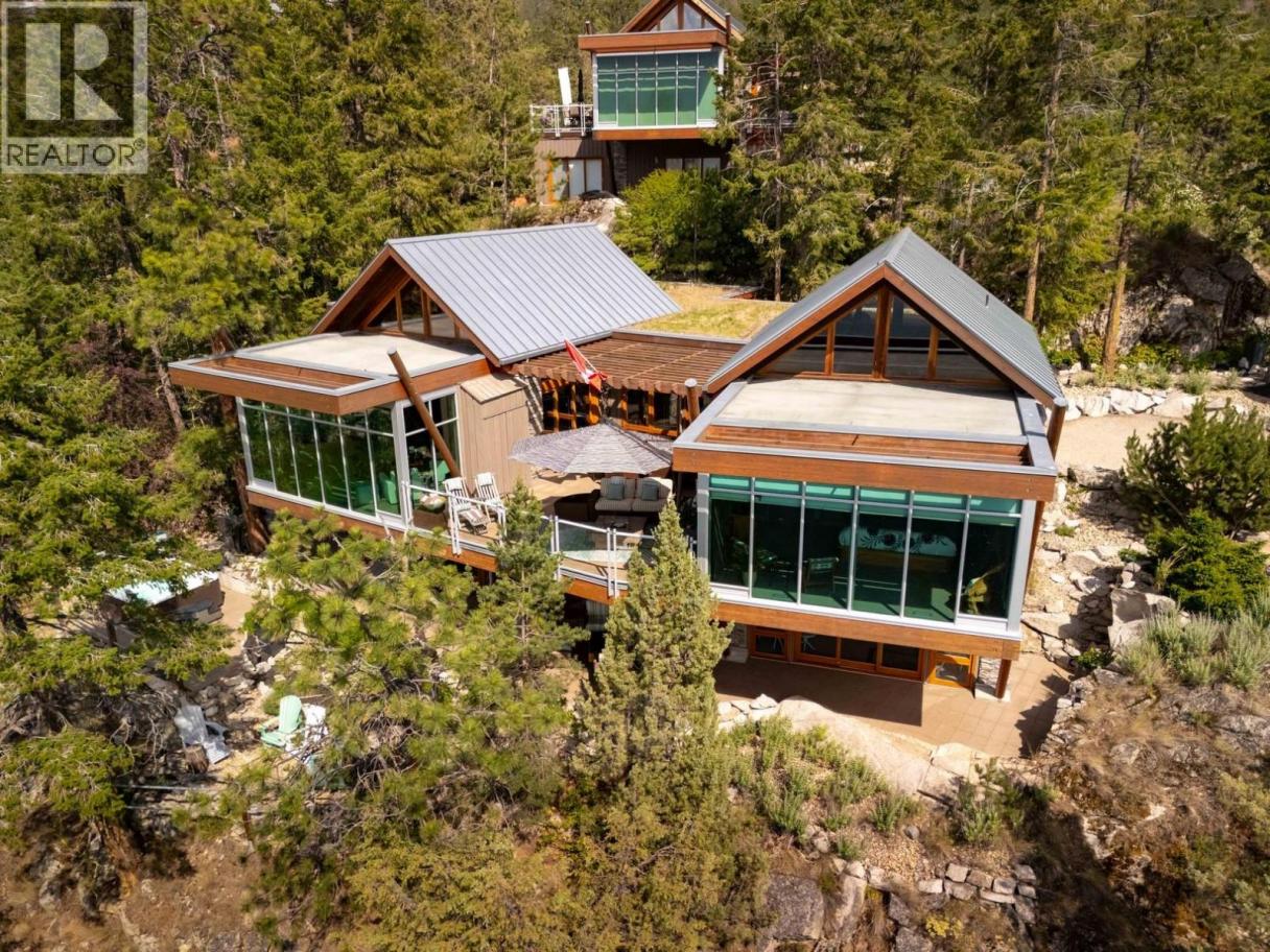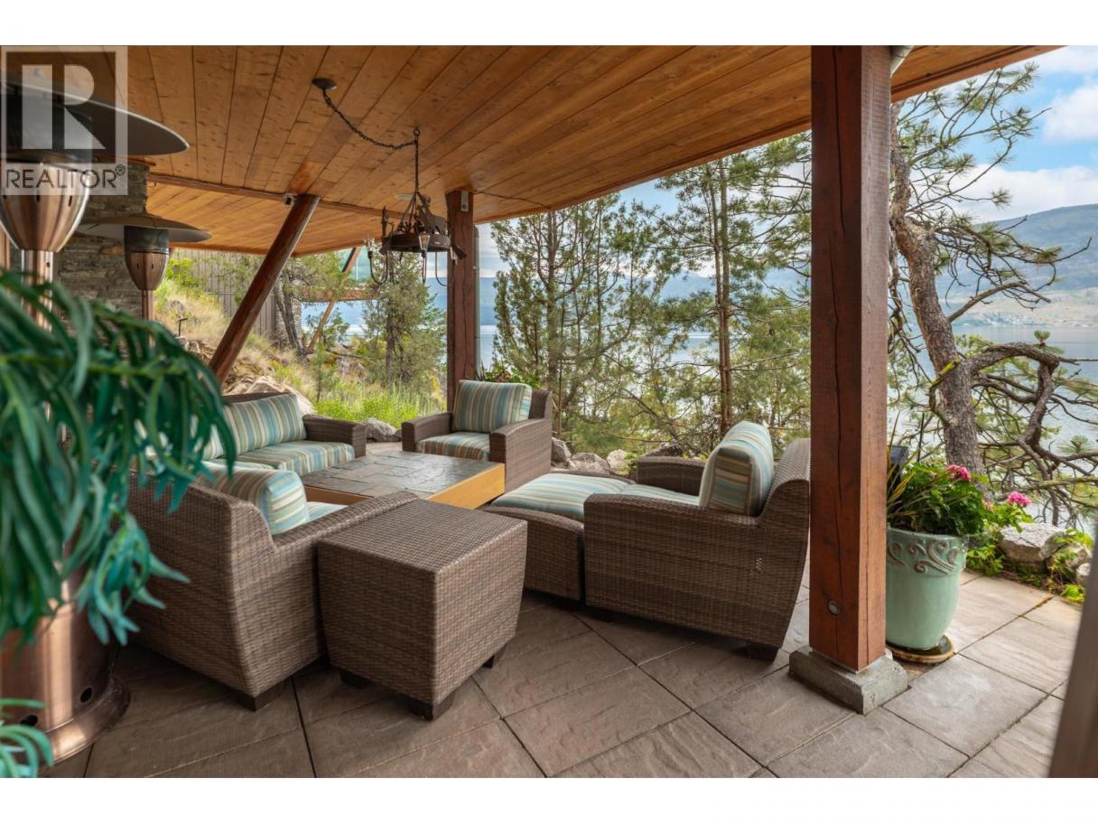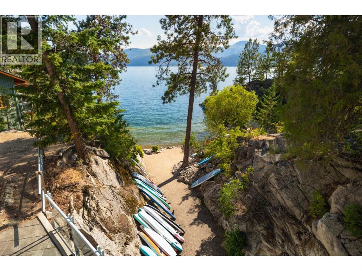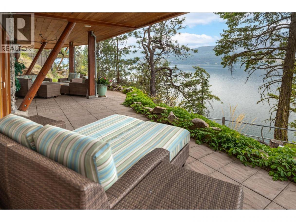 Perched above the shoreline in the exclusive Outback community, this one-of-a-kind cantilevered lakefront home is a West Coast-inspired masterpiece that blends bold architecture with the serenity of nature. Crafted into the rocky knoll, the 5 bedroom, 4 bathroom custom residence offers 3,423 sq.ft. of thoughtfully designed living space and over 1,200 sq.ft. of multilevel outdoor terraces, all with panoramic lake views. Vaulted timber ceilings, expansive windows, and organic materials create a seamless connection between indoors and out. The chef’s kitchen features brand-new Sub-zero appliances and a one-of-a-kind burl piece from California’s iconic Redwood forest, while the living room and primary suite are both framed by uninterrupted vista views of Okanagan Lake. Luxurious features include a lakeside hot tub, media room, multiple lounging decks, and a lower-level recreation room—perfect for entertaining or unwinding in privacy. 3 owned parking stalls as an added bonus. As part of The Outback’s resort-style community, enjoy access to the private marina, two sandy swimming bays, tennis courts, two pools with hot tubs, a fitness center, and a lakeside fire pit lounging area adjacent to the rare salmon spawning bay. Surrounded by protected parkland, this is a true retreat for those seeking immersive natural luxury. Enjoy direct access to scenic hiking and biking trails and take advantage of the close proximity to the neighboring resort community of Predator Ridge. (id:6769)