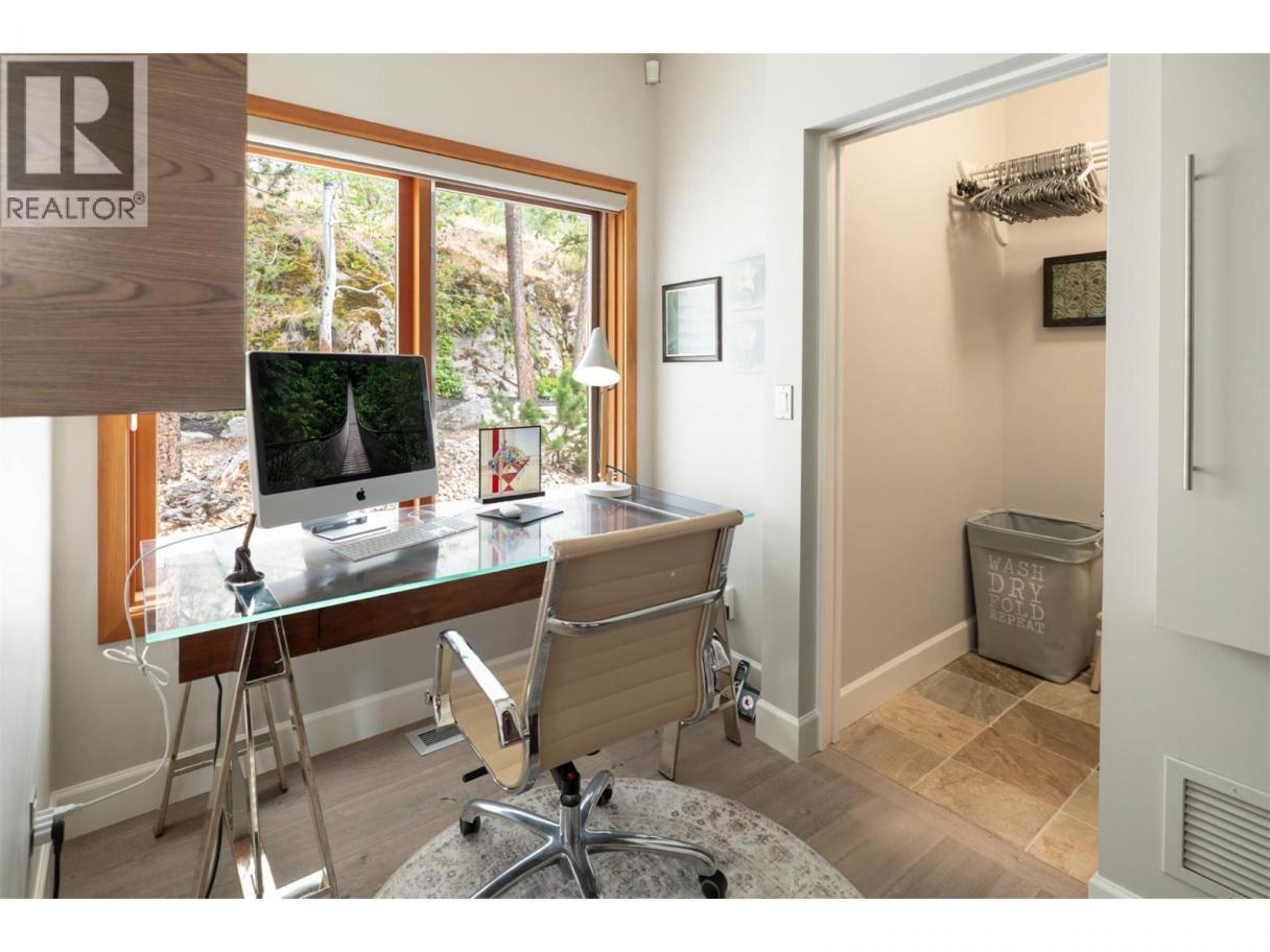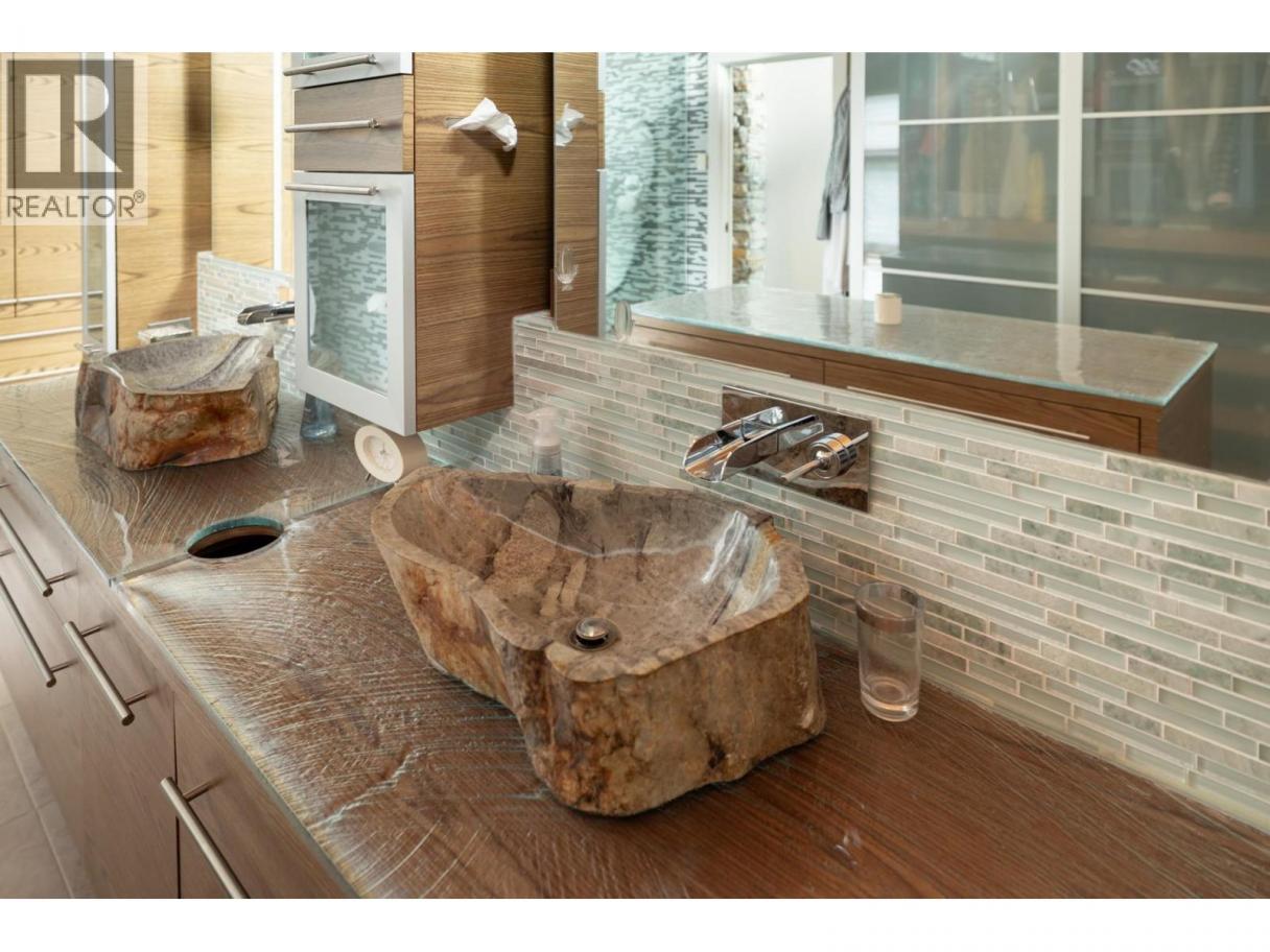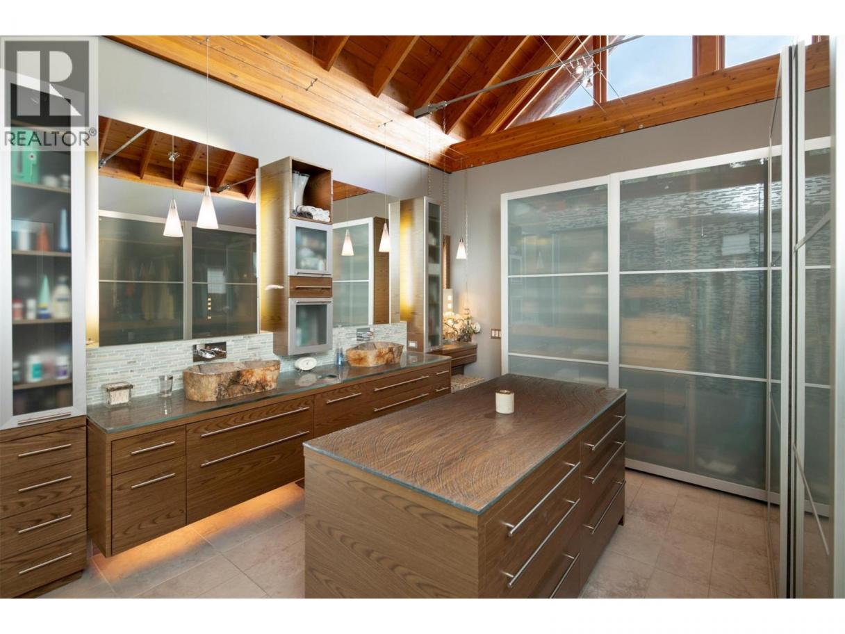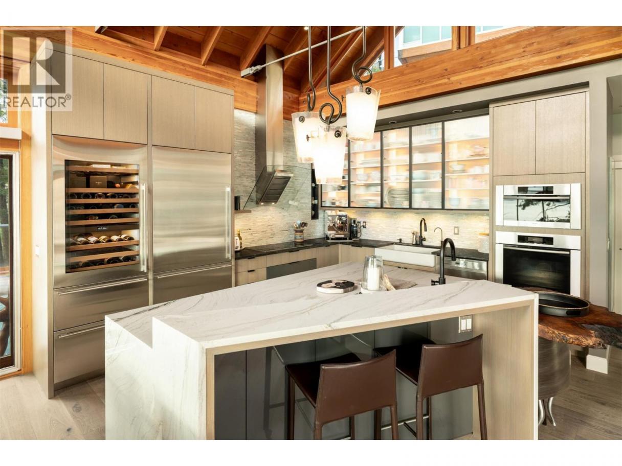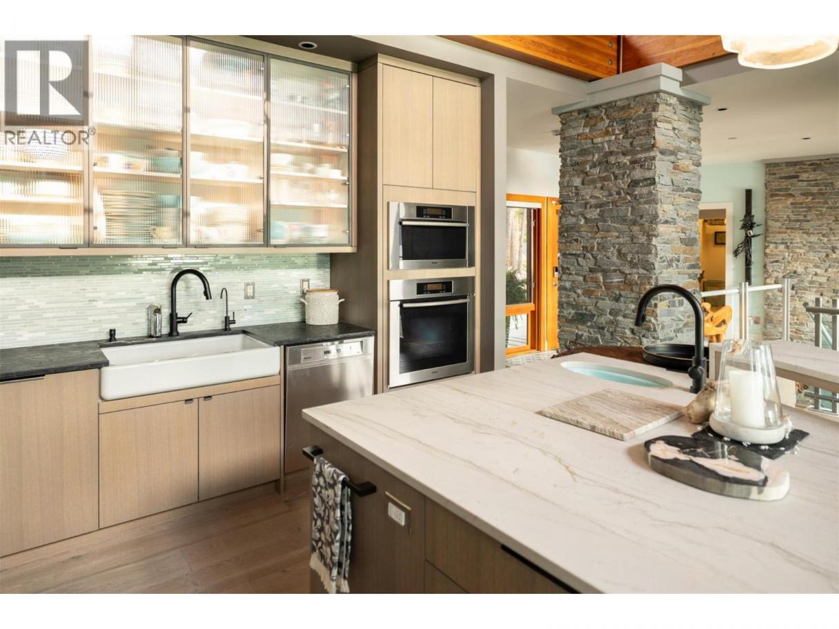Perched above the shoreline in the exclusive Outback community, this one-of-a-kind cantilevered lakefront home is a West Coast-inspired masterpiece that blends bold architecture with the serenity of nature. Crafted into the rocky knoll, the 5 bedroom, 4 bathroom custom residence offers 3,423 sq.ft. of thoughtfully designed living space and over 1,200 sq.ft. of multilevel outdoor terraces, all with panoramic lake views. Vaulted timber ceilings, expansive windows, and organic materials create a seamless connection between indoors and out. The chef’s kitchen features brand-new Sub-zero appliances and a one-of-a-kind burl piece from California’s iconic Redwood forest, while the living room and primary suite are both framed by uninterrupted vista views of Okanagan Lake. Luxurious features include a lakeside hot tub, media room, multiple lounging decks, and a lower-level recreation room—perfect for entertaining or unwinding in privacy. 3 owned parking stalls as an added bonus. As part of The Outback’s resort-style community, enjoy access to the private marina, two sandy swimming bays, tennis courts, two pools with hot tubs, a fitness center, and a lakeside fire pit lounging area adjacent to the rare salmon spawning bay. Surrounded by protected parkland, this is a true retreat for those seeking immersive natural luxury. Enjoy direct access to scenic hiking and biking trails and take advantage of the close proximity to the neighboring resort community of Predator Ridge. (id:6769)