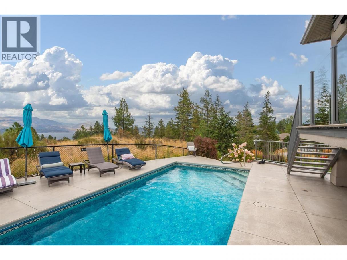 LOCATION, LOCATION – Upper Mission 4-Bedroom with Pool & Lake Views. Welcome to this stunning 4-bedroom, 3-bathroom home in highly sought-after Upper Mission, offering panoramic lake and city views from nearly every room. The bright, open layout features spacious living areas, oversized windows, and a gourmet kitchen complete with granite countertops, a generous island, and a butler’s pantry with second fridge — ideal for entertaining and everyday living. The primary suite includes a walk-in shower, while three additional bedrooms plus a den provide excellent flexibility for families or work-from-home lifestyles. The walkout basement boasts expansive windows, soundproofed ceilings, and an open design perfect for games, media, or hosting guests. Outdoor living shines with a saltwater pool, secluded hot tub, covered balcony with awning, and a fully fenced, low-maintenance yard with artificial turf — perfect for kids and pets. Enjoy exceptional privacy, with the property behind not suitable for subdivision, all located on a quiet, private 6-home street. Just minutes from top-rated schools, parks, trails, wineries, and the new shopping centre, this home also includes dual-zone HVAC, wide-plank engineered hardwood, quality finishes throughout, and water included in the strata fee ($375/month covering water, street lighting, and snow removal). A rare opportunity to own a view property in one of Kelowna’s most desirable neighbourhoods. (id:6769)