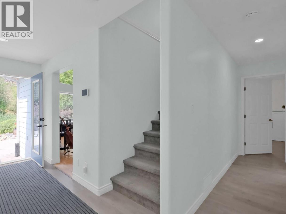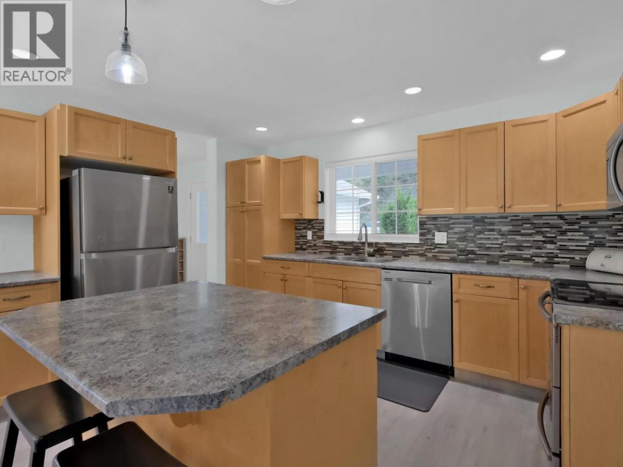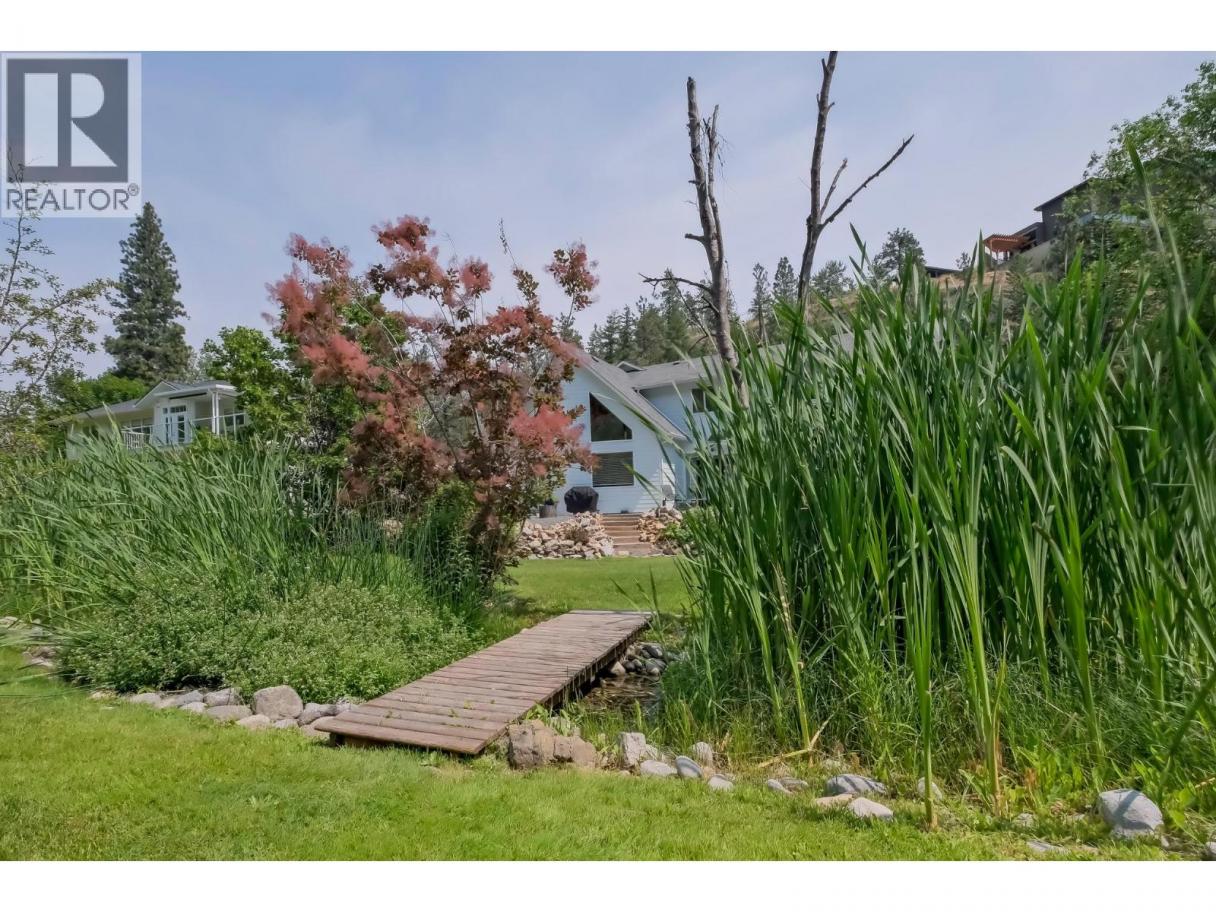 Set along the iconic Bottleneck Drive, this lovingly maintained home blends comfort and character with a location that feels truly magical. Just minutes from celebrated wineries, the scenic KVR Trail, and downtown Summerland, the property also backs directly onto the historic Kettle Valley Steam Railway, creating a picturesque setting that feels straight out of a Hallmark movie. Inside, soaring 19-foot vaulted ceilings fill the living room with natural light, while the upper level offers three inviting bedrooms that overlook the bright and airy space below. The heart of the home is its open-concept kitchen, dining, and family rooms, where large windows frame the outdoors and a walk-out door provides easy access to the backyard. It’s a space designed for connection—whether you’re preparing meals, gathering around the table, or enjoying quiet evenings together. The main level also offers wonderful flexibility with a private office or guest area, complete with its own entrance and a built-in wall bed—an ideal retreat for visiting friends or a quiet place to work. Outdoors, the backyard feels like a private sanctuary. A gentle creek winds through beautifully landscaped gardens with natural rock accents, while a spacious patio invites you to relax in the hot tub, host summer barbecues, or simply unwind in the peaceful surroundings. Thoughtful updates, including modern HVAC, newer appliances, newer flooring, and fresh paint, mean the home is as practical as it is welcoming. (id:6769)