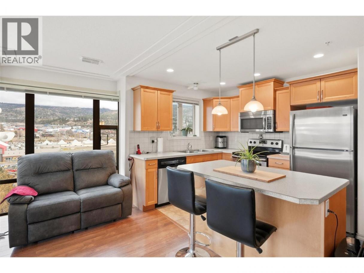 Views for miles from this bright, well appointed north east corner unit. This two bedroom, two bathroom home offers an abundance of natural light and huge windows, welcoming the sunshine into the open concept main living area. The kitchen space includes an island with storage and seating, a pantry closet, and all appliances including a built in microwave. The spacious primary bedroom offers a walk through closet and a private ensuite with walk in shower. The second bedroom is a versatile space with a custom made Murphy bed with built in desk and shelving, great for a work space or hobby area. Other features include a gas fireplace, in suite laundry, of course the main full bathroom with tub/shower combo, hot water on demand, central air conditioning and forced air heating. Being only steps to Cherry Lane Shopping Center, direct access to the bike lane and the transit hub, a car is not a necessity living here. However, included with this unit is a secure underground parking stall and a storage locker. Amenities of this complex are an exercise room, an incredibly organized library and a meeting room. All ages are welcome, pets are allowed with some size restrictions and there are no short-term rentals. Call for your private viewing today. (id:6769)