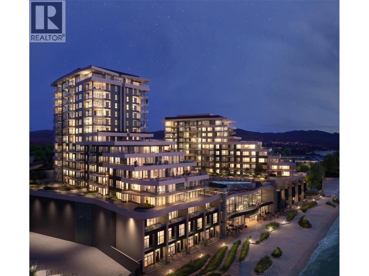 HIGHLY DESIRABLY 9th FLOOR CORNER, TWO BEDROOM UNIT! UNOBSTRUCTED SOUTHWEST LAKE VIEWS! Located in the heart of Kelowna's Lower Mission, Aqua Waterfront resort offers vacation-inspired living at your door step with world class amenities and timeless style. This 2 bedroom, 2 bath private corner unit offers oversized windows, high ceilings, an open concept living space, full sized stackable laundry, quiet top of the line high efficiency heating/cooling system and a generous sized covered balcony. The modern two-toned kitchen area includes a wide French door fridge, a quartz waterfall island, and an under counter 24” wine cooler completes the stylish inviting space. Did we mention the second bedroom has a million dollar view! Aqua’s top of the line amenities include a large 2-storey gym with yoga studio, a generous sized outdoor pool and hot tub area with gathering spaces, an indoor lounge area with co-working space, a pet wash station and an above ground bike storage for easy access. Exclusive opportunity to join the state of the art Aqua Boat Club with a ton of offerings and services. Includes storage locker and one spacious stall with an option to purchase a second. No size pet restrictions! The Aqua Waterfront Resort with its future cafes, vibrant shops, world class amenities and state of the art boat storage center offers you the lifestyle you deserve! (id:6769)