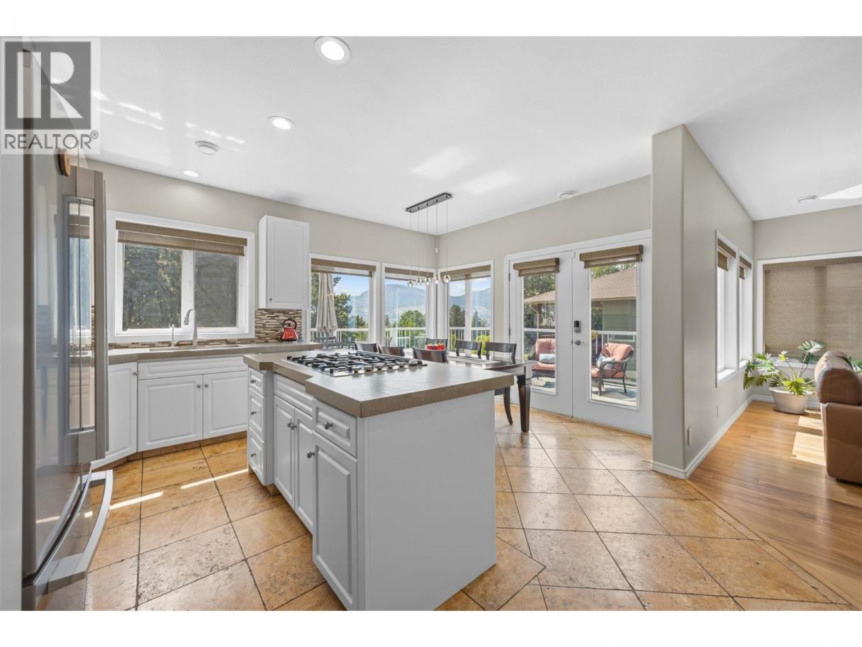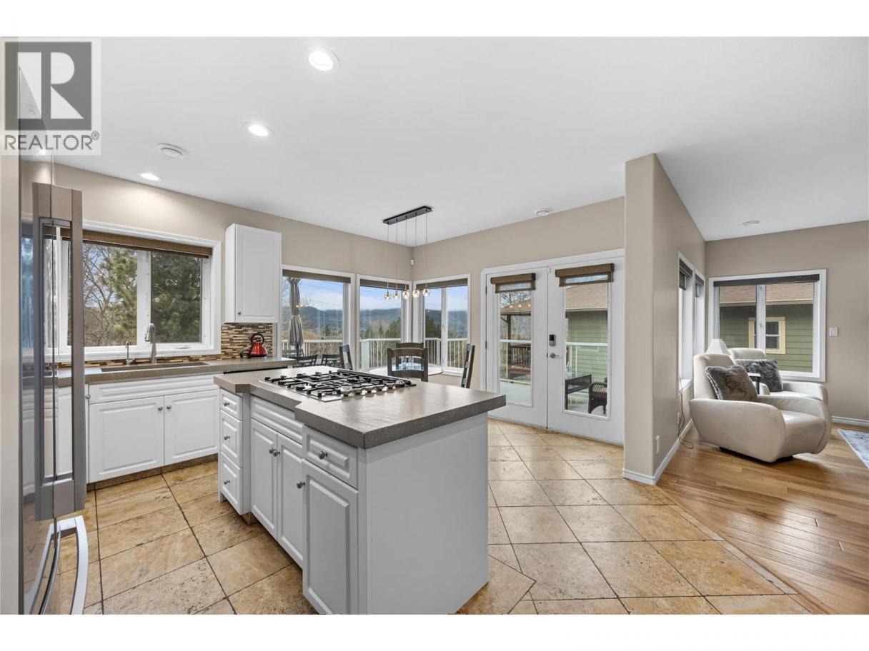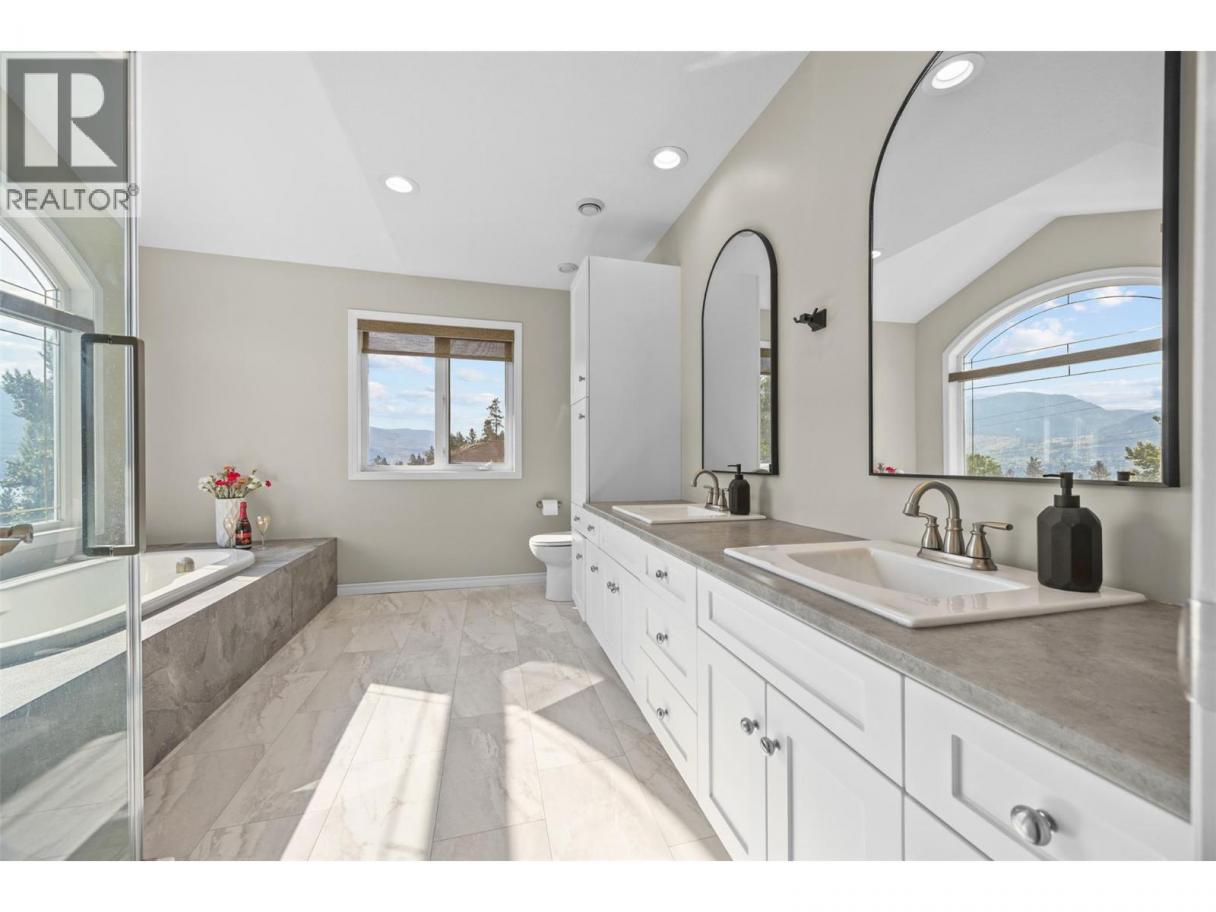 240 Heritage Boulevard is a multi-level 4,250 sq. ft. home, located 7 mins south of Penticton. The upper-level boasts of 3 bedrooms and 2 washrooms, and the primary bedroom is set up as an oasis, with its own private lakeview deck, large walk-in closet, and completely updated 5-piece ensuite. The main level features a double garage, laundry room, a front office, a formal living and dining room as well as a bright and spacious kitchen-den combo facing southeast with views of the lake and mountains. The lower level may be the most exciting part of the home. It boasts of a bright, self-contained two-bedroom BnB suite with a private patio, hot tub, and a second heated double garage 24’ x 29’, that can be used as a studio, gym or a work garage. There is ample parking with a second driveway on the south side, perfect for guests, family, RV parking, or rental income. The entire house has been updated with fresh paint throughout (walls, baseboards, doors), new door & cabinet hardware, brand-new carpet on staircases, a new roof, industrial hot water tank and new dishwasher (2024), new washer and dryer (2026) and upgraded lighting and landscaping. Other features include in-floor heating with solid hardwood & tile; two gas fireplaces and a 1 min walk Heritage Hills Park. (id:6769)