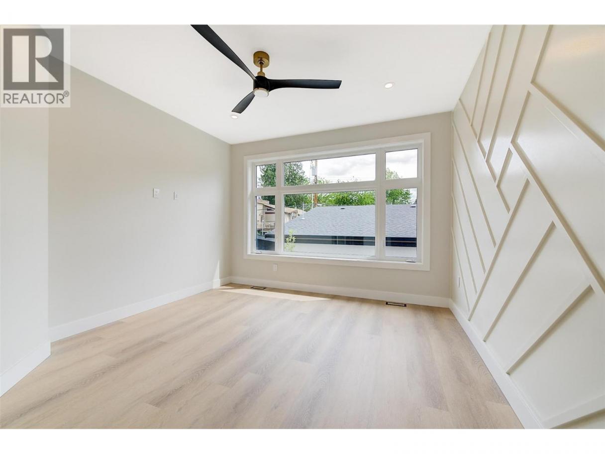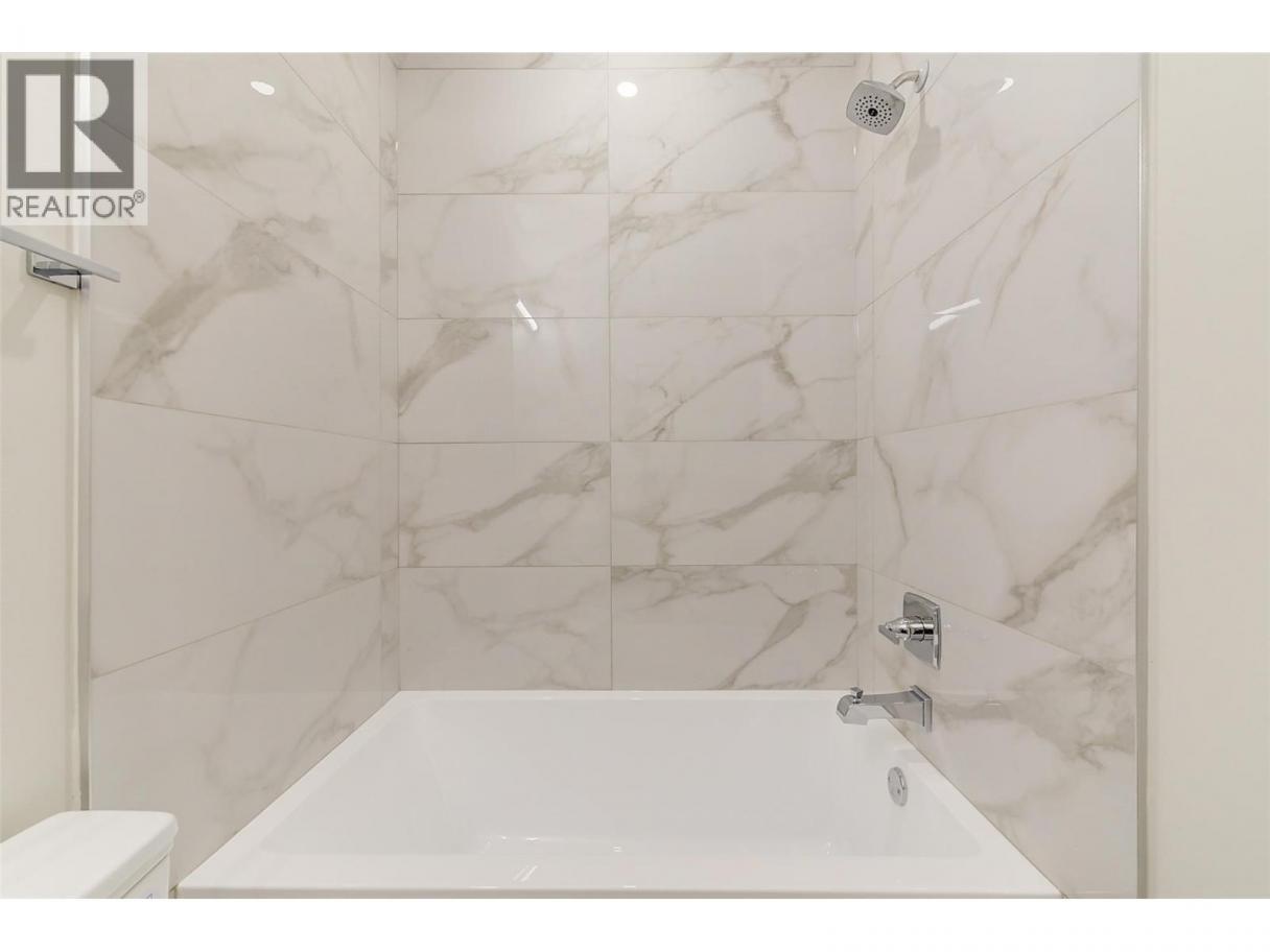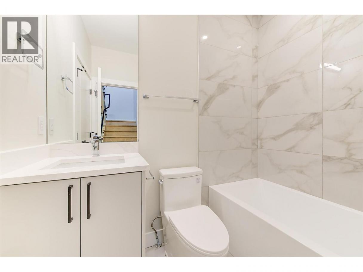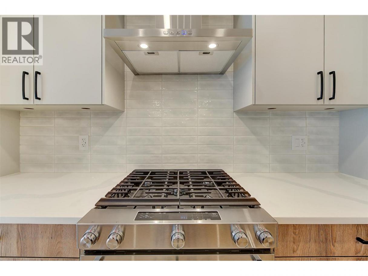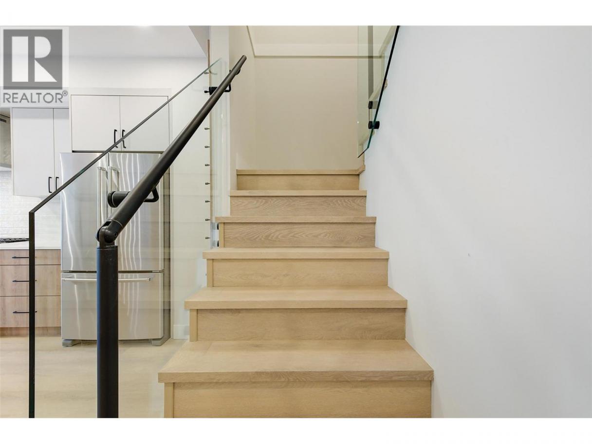 Discover Luxury Downtown Living - Step into this custom-built, North-facing townhome, offering 3 bedrooms, 2.5 bathrooms, and two stories of exquisite design. Topped with a rooftop patio prepped for a hot tub, this home invites you to embrace the Okanagan’s signature outdoor lifestyle. Every detail has been carefully curated to exude sophistication. Expansive windows fill the space with natural light, complementing the modern exterior of concrete and wood finishes. Inside, the chef-inspired kitchen stands out with a large island, stainless steel appliances, quartz countertops, and a custom backsplash framing the gas stove and 28-inch hood range fan. Throughout the home, premium flooring, a built-in fireplace, and contemporary light fixtures enhance the luxurious ambiance. The primary suite features a spa-like ensuite with a double vanity and a sleek walk-in shower. A large crawl space on the main floor offers ample storage, while the private yard with a covered patio creates your personal oasis. Completing the home is a covered single-car garage with rough-in for an EV charging station, blending convenience with modern living. This townhome isn’t just a residence—it’s a statement of style, comfort, and urban sophistication. Make it yours and elevate your lifestyle today. (id:6769)