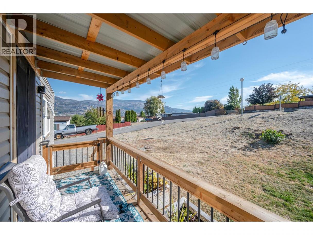 Why rent when you can own? Immaculately updated 2-bed, 1-bath mobile home in desirable Riva Ridge Park — move-in ready and full of upgrades. Bright open living space with ambient pot lighting, new drywall, new flooring, doors and trim. Kitchen and bath fully renovated; bathroom features PEX plumbing. Mechanical updates include a new sealed tin roof, new siding, new hot water tank, two heat pumps/ductless A/C units, and a new LG washer & dryer. Outside offers generous parking, attractive low-maintenance landscaping with crushed rock and paving stones, a private backyard, large front yard and abundant exterior storage. Connected to municipal sewer. Located a short walk to Skaha Lake with convenient access to the community garden. Quiet, wildlife-friendly park with no age restrictions; pets welcome with park approval. No rentals permitted. (id:6769)