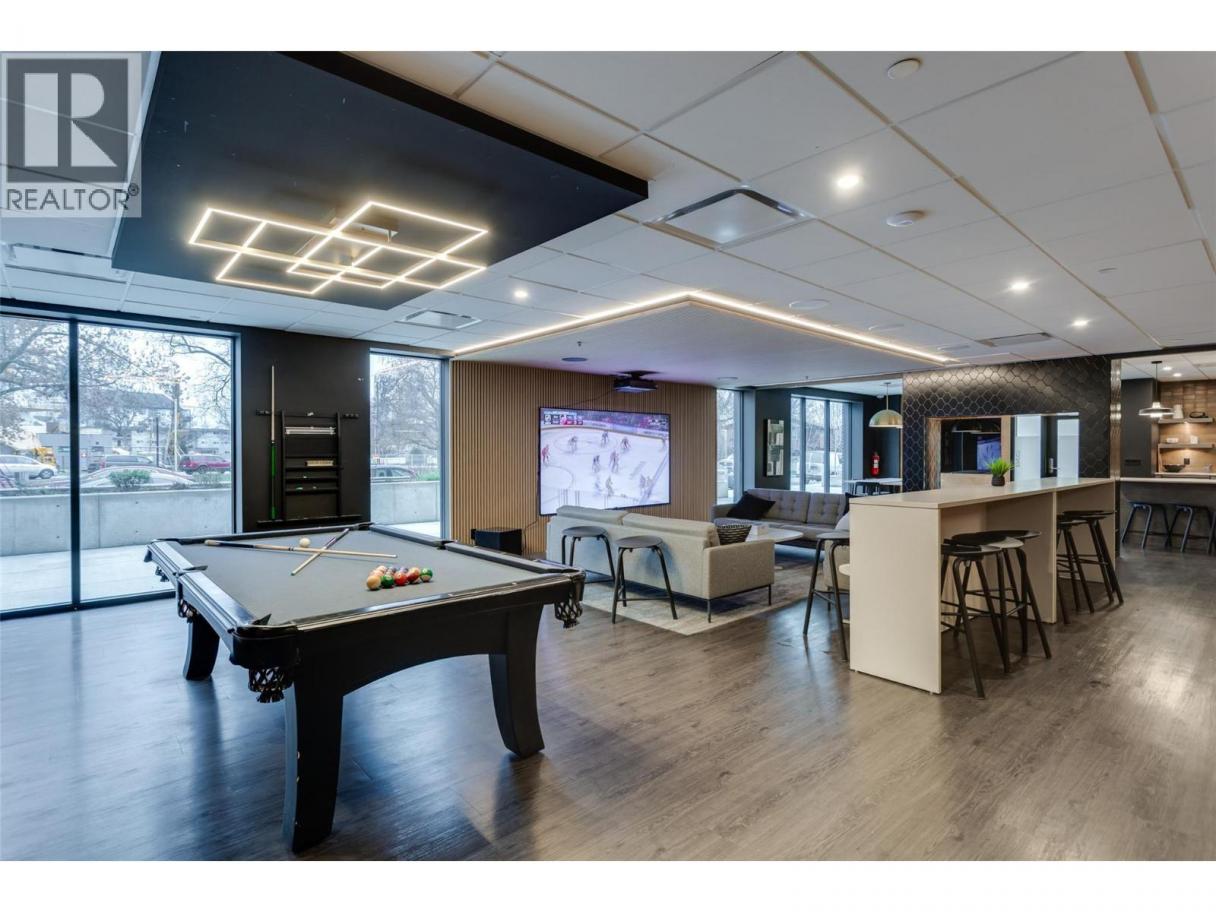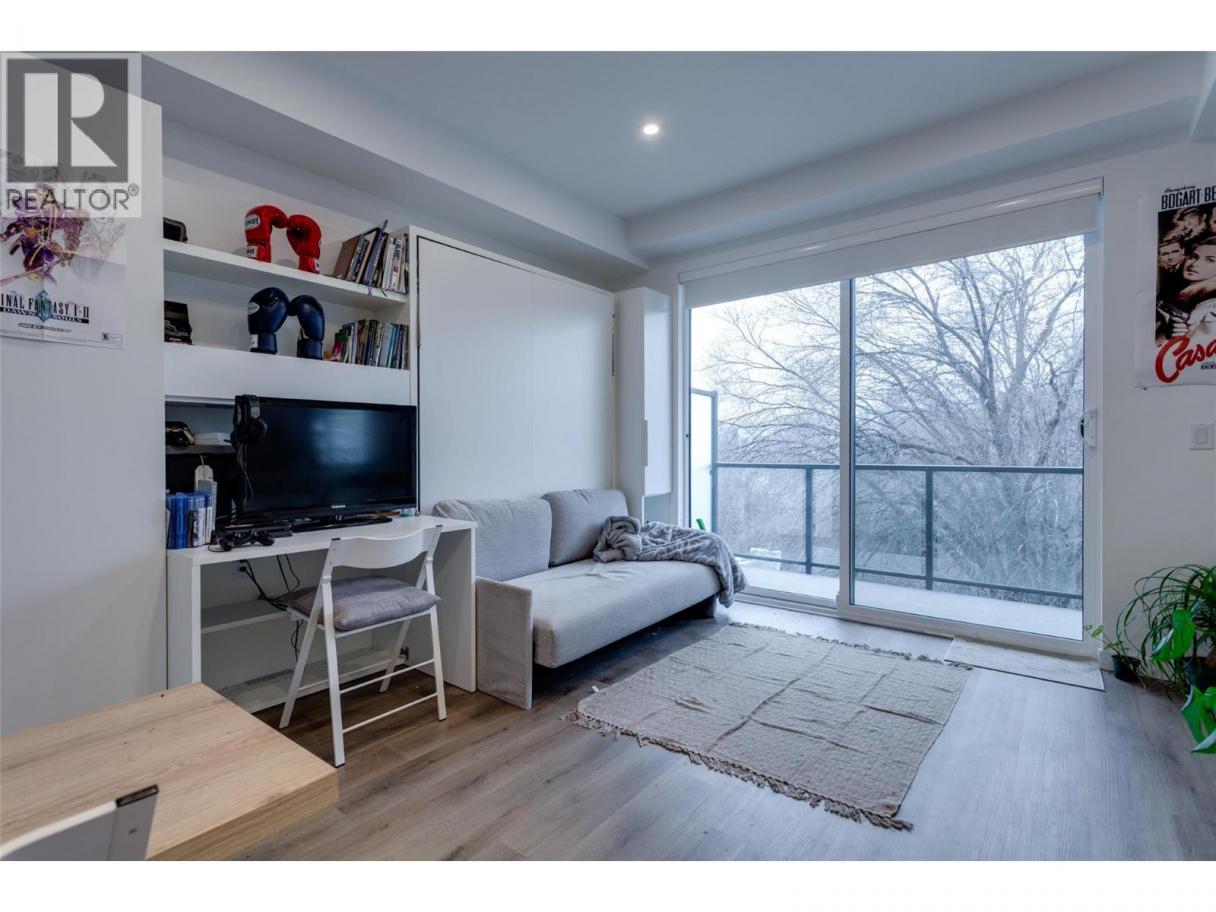 New Smart-Suite at Five Crossings – Urban Living Redefined. Welcome to Five Crossings, one of Kelowna’s most amenity-rich and lifestyle-driven buildings. This thoughtfully designed new smart-suite maximizes every inch of space with a Queen Murphy bed, built-in storage, home office, media cabinet, genie table, and a $22,000 furniture package—perfect for modern urban living or a high-performing investment. GST Paid. The sleek galley kitchen features built-in appliances, push-to-open cabinetry, and a heat pump for efficient heating and cooling. With no age restrictions and pet-friendly bylaws (2 cats or dogs, no size limits), this home offers exceptional flexibility for first-time buyers, students, professionals, and investors alike. Five Crossings delivers true resort-style amenities, including a state-of-the-art fitness centre, co-working space, dog wash, bike storage and repair station, shared garden plots, and a stylish residents’ lounge with a full kitchen, golf simulator, pool table, projection screen, and fireplace. The sixth-floor rooftop features a yoga/zen lounge, BBQ area, covered outdoor dining with fireplace, multiple fire pits, and stunning city and mountain views. Ground-level amenities include a bocce court, dog run, MODO car share, and EV charging. Ideally located across from a park and just steps to Capri Shopping Centre, restaurants, and transit, with easy access to UBCO & Okanagan College 16 mins, downtown 8 mins, and KGH 8 mins. Book your showing today! (id:6769)