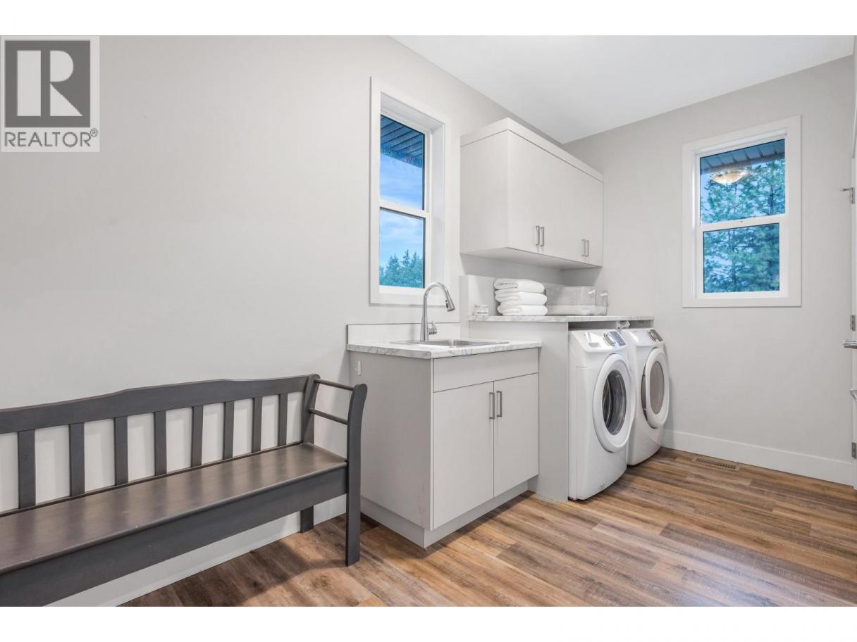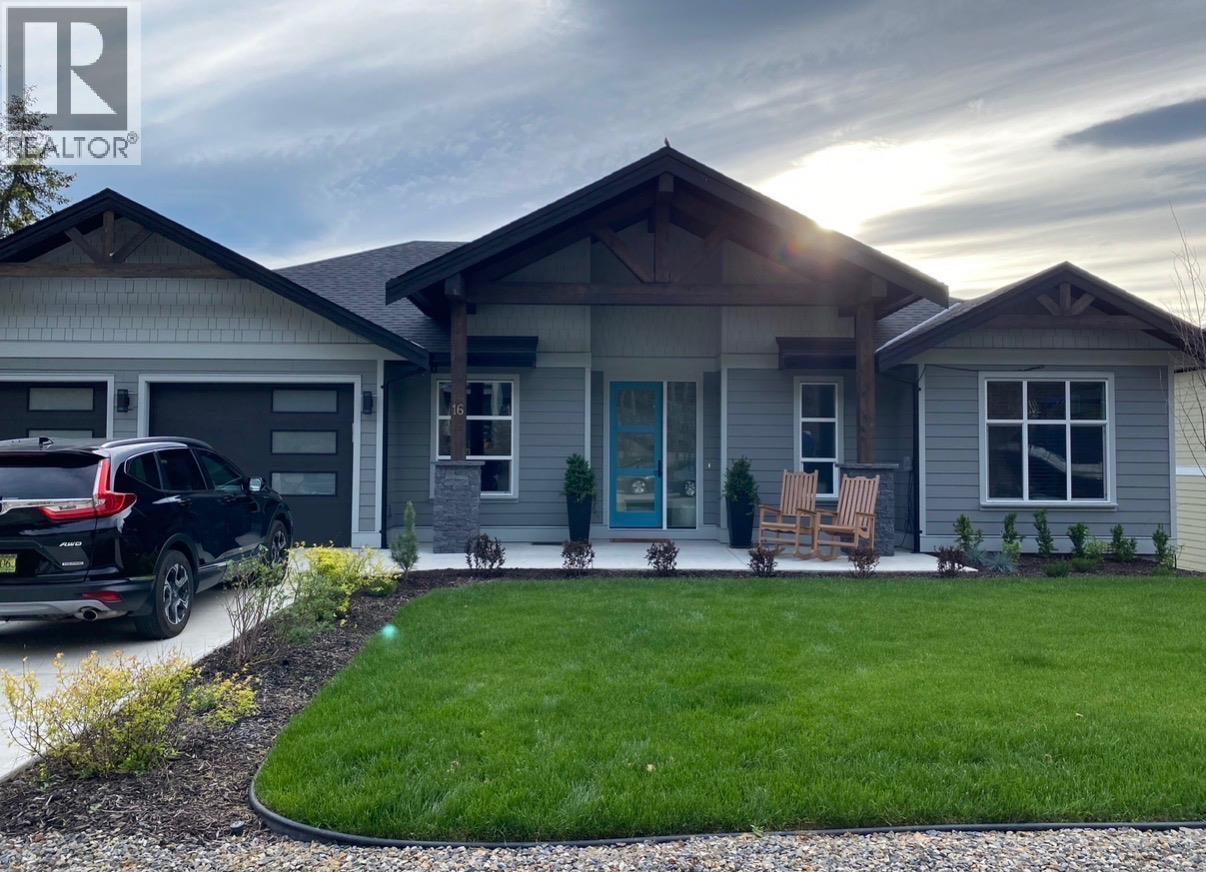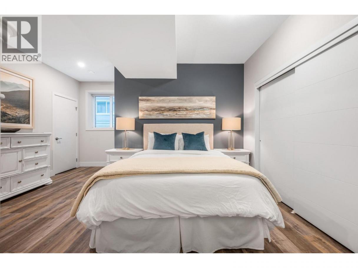 Set within the sought-after Canadian Lakeview Estates, this newly built walk-out rancher offers a refined blend of comfort, functionality, and lifestyle. Designed with entertaining in mind, the open main living area is filled with natural light and showcases a modern kitchen with stainless steel appliances, a generous island, and stone countertops. The adjoining living room is anchored by a gas fireplace feature wall and opens onto a large covered deck with beautiful mountain views. Thoughtful design details continue throughout the home, including three private en-suites that provide added privacy and convenience for family and guests. Residents enjoy exclusive access to a private beach featuring showers and a picnic area, tucked away on a quiet side street, along with a shared boat launch for easy lake access. Additional highlights include quartz countertops throughout, provisions for future boiler and in-floor heating, and pre-wiring for a hot tub and electric vehicle. The neighbourhood also offers a community park with tennis and pickleball courts, completing this exceptional lakeside lifestyle. (id:6769)