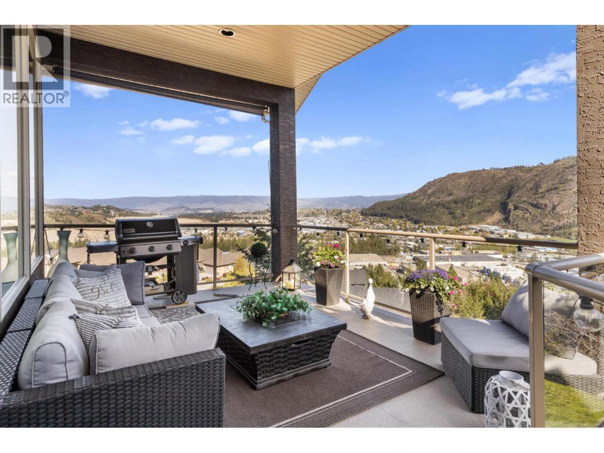 Discover elevated luxury living in The Highlands, one of West Kelowna’s most prestigious gated communities. This impeccably maintained 3,300+ sq ft walkout rancher offers impressive scale, refined finishes, and unobstructed lake, mountain, and valley views. Designed for grand entertaining and everyday comfort, the open-concept main level is enhanced by 12-foot ceilings, expansive windows, rich crown moulding, and gleaming hardwood floors that frame the stunning lake view outlook. The chef-inspired kitchen features newer stainless steel appliances, a convection range with built-in air fryer, granite island, and walk-in pantry. Step outside to the private, covered upper balcony with gas hookup—ideal for sunset dining and with exceptional privacy. The expansive primary suite is a nice retreat with a spa-inspired ensuite showcasing a double granite vanity, soaker tub, and separate shower. The lower level with two additional bedrooms, a full bathroom, and a spacious family room with oversized windows and walkout access to a covered patio offering secluded outdoor living and hot tub hookup. The fully fenced, beautifully landscaped backyard provides a serene, private setting. A standout media and recreation room with built-in bar, beverage fridge, and wine cooler completes this exceptional home. Quietly tucked away in a secure community yet minutes to schools, golf, shopping, and dining, this residence delivers luxury, space, privacy, and iconic Okanagan views without compromise. (id:6769)