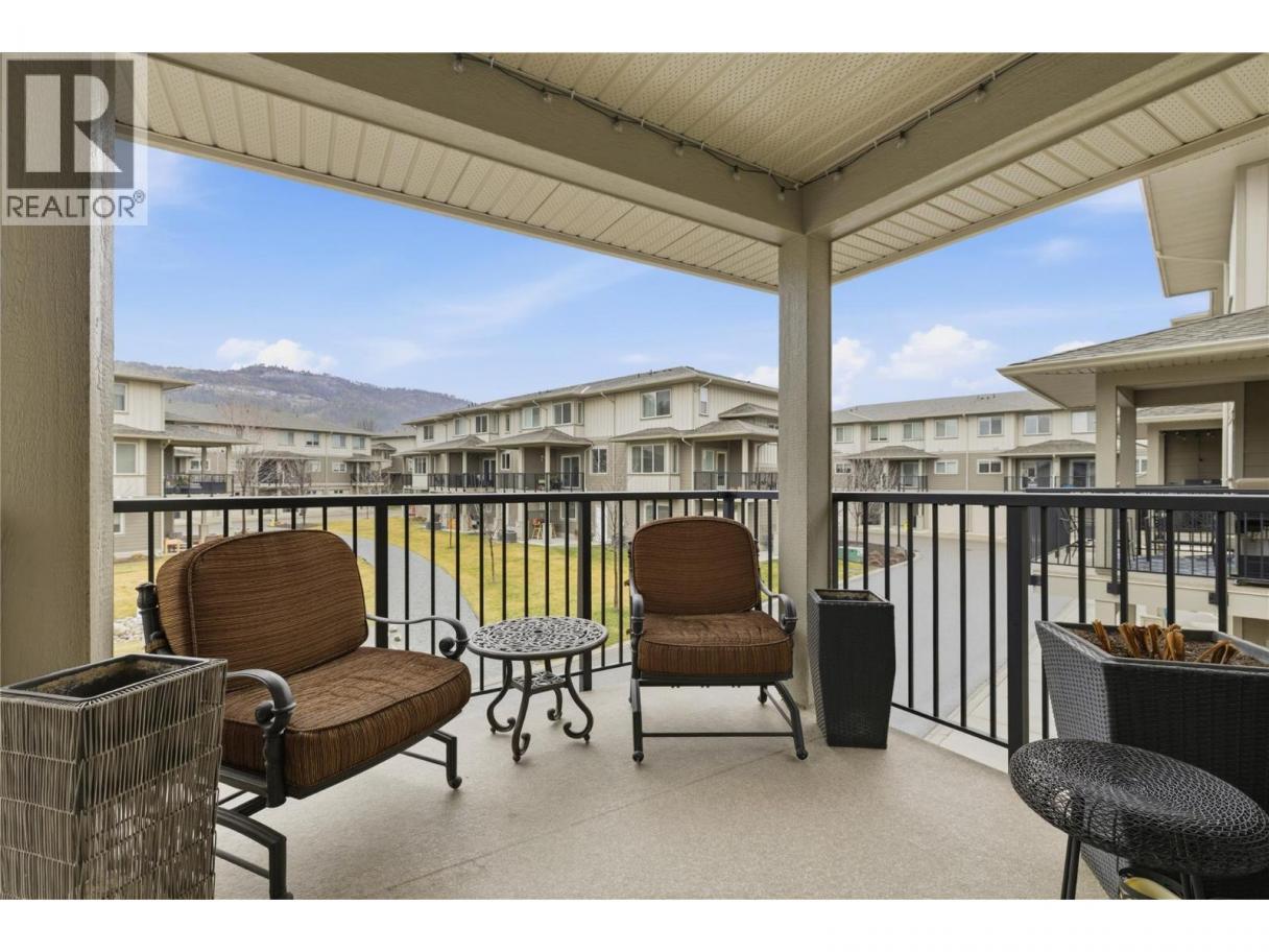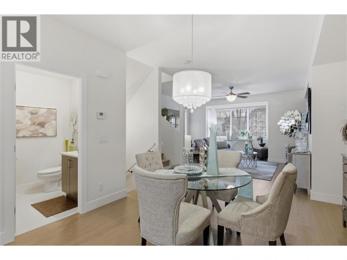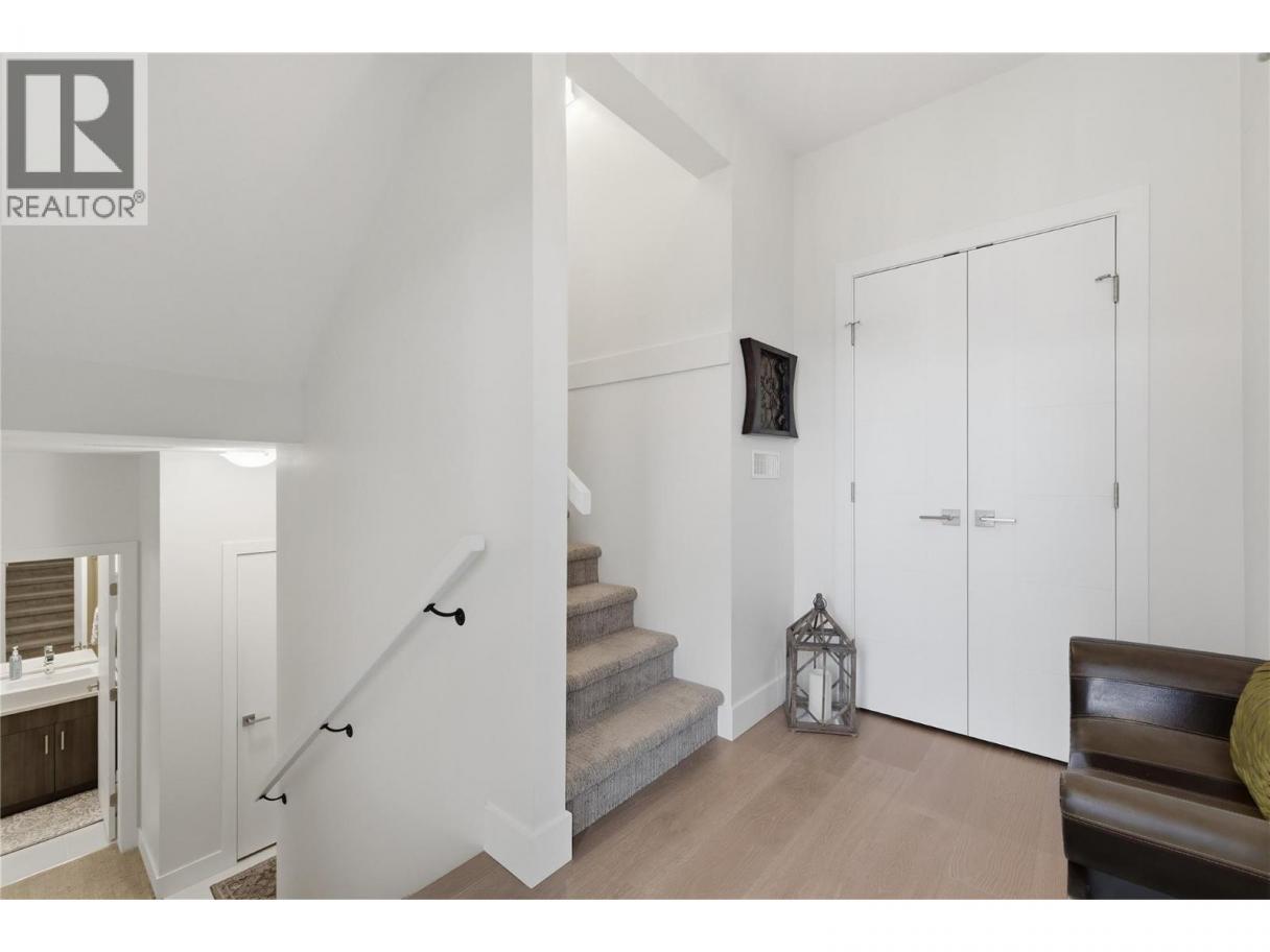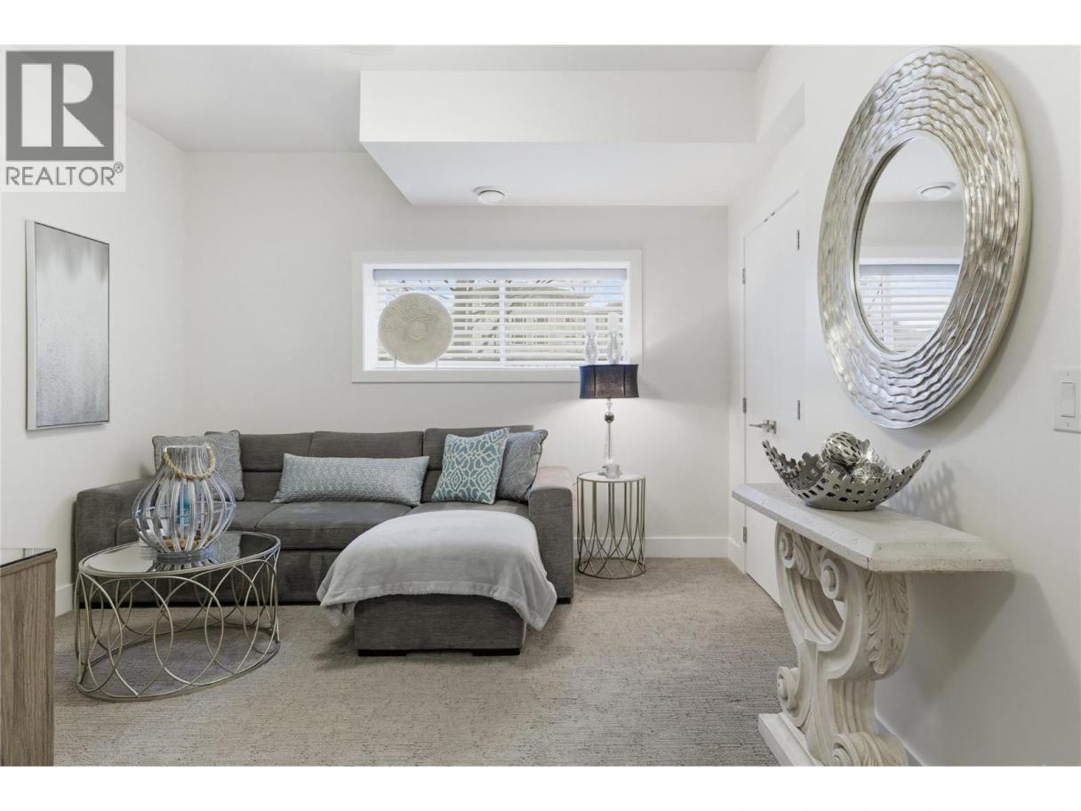 Bright and beautiful corner unit in the highly sought-after Grove development, offering modern lifestyle living in the heart of Glenmore. This like-new 3-bedroom, 4-bath townhome with a finished lower-level flex space is one of the largest units in the complex, blending comfort and style while being flooded with natural light throughout. High-end finishes include wide-plank engineered hardwood floors, high ceilings, and European-tiled bathrooms with luxurious fixtures. The open-concept main level showcases a chef’s kitchen with soft-close cabinetry, oversized island, quartz countertops, stainless steel appliances, and an electric fireplace in the living room. Two distinct outdoor living spaces enhance the home’s appeal: a covered deck off the kitchen—perfect for morning coffee—and a walk-up front patio ideal for entertaining. A heated double car garage and low strata fees add to the convenience. The finished lower-level flex space includes a full 4-piece bathroom and large walk-in closet, offering versatile options for guests, family, or work-from-home needs. Centrally located just steps to shopping, restaurants, Brandt’s Creek Linear Park, hiking trails, and the new Glenmore Recreation Park with skateboard park, pickleball courts, sports fields, and more. Close to Dr. Knox Middle School and three elementary schools. Don’t miss this opportunity for high-end, convenient Okanagan lifestyle living for the whole family. (id:6769)