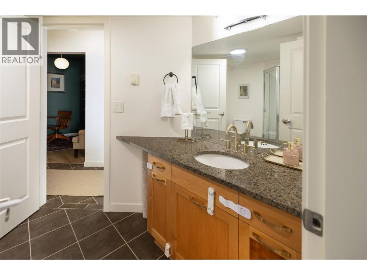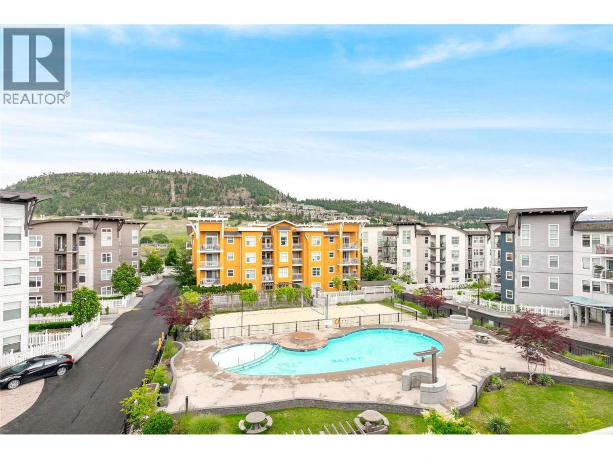 Top-floor corner unit at The Verve in a prime southeast position—quiet, private, and showcasing unobstructed views of Dilworth Mountain and the city skyline. With soaring 13-foot ceilings in the main living area, this home feels bright and spacious, enhanced by large windows that flood the space with natural light. The kitchen features granite countertops and brand-new stainless appliances, seamlessly connecting to the dining and living areas where an electric fireplace adds warmth and character. The smart floor plan includes two bedrooms on opposite sides for privacy, a versatile den, and two full bathrooms. Resort-style amenities make this community stand out: an outdoor pool, hot tub, BBQ patio with plenty of seating, gathering areas, and a dedicated dog run. Everyday living is enhanced by in-suite laundry, a storage locker, bike storage, and two secure underground parking stalls—a rare find. The Verve offers the perfect balance of quiet retreat and convenience, just minutes from shopping, dining, UBCO, and Kelowna International Airport. (id:6769)