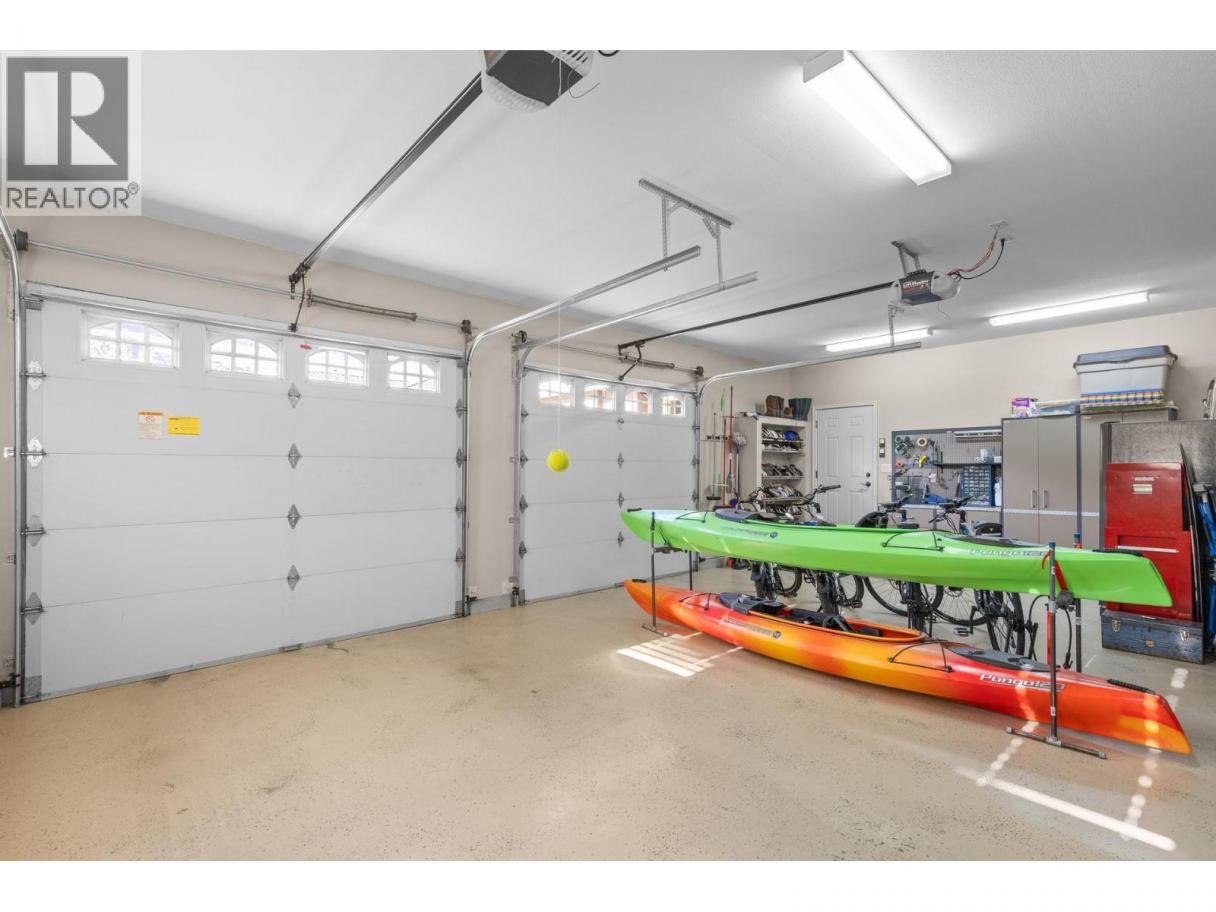 Refined Okanagan living awaits in a prestigious golf course community. This meticulously maintained primary-on-main home welcomes you with a ground-level entry, vaulted ceilings and oversized windows. Stunning lake and mountain views are beautifully showcased while the interior is flooded with natural light. Step onto the covered patio to savour unforgettable sunsets, an ideal backdrop for year-round everyday living and elegant entertaining. The lower level features a separate entrance, offering excellent suite potential or versatile living options. An oversized driveway with RV/boat parking, complemented by a 2-car garage adds exceptional convenience. Just steps from the 36-hole golf course, this home delivers a seamless blend of sophistication, comfort & the coveted Okanagan lifestyle. (id:6769)