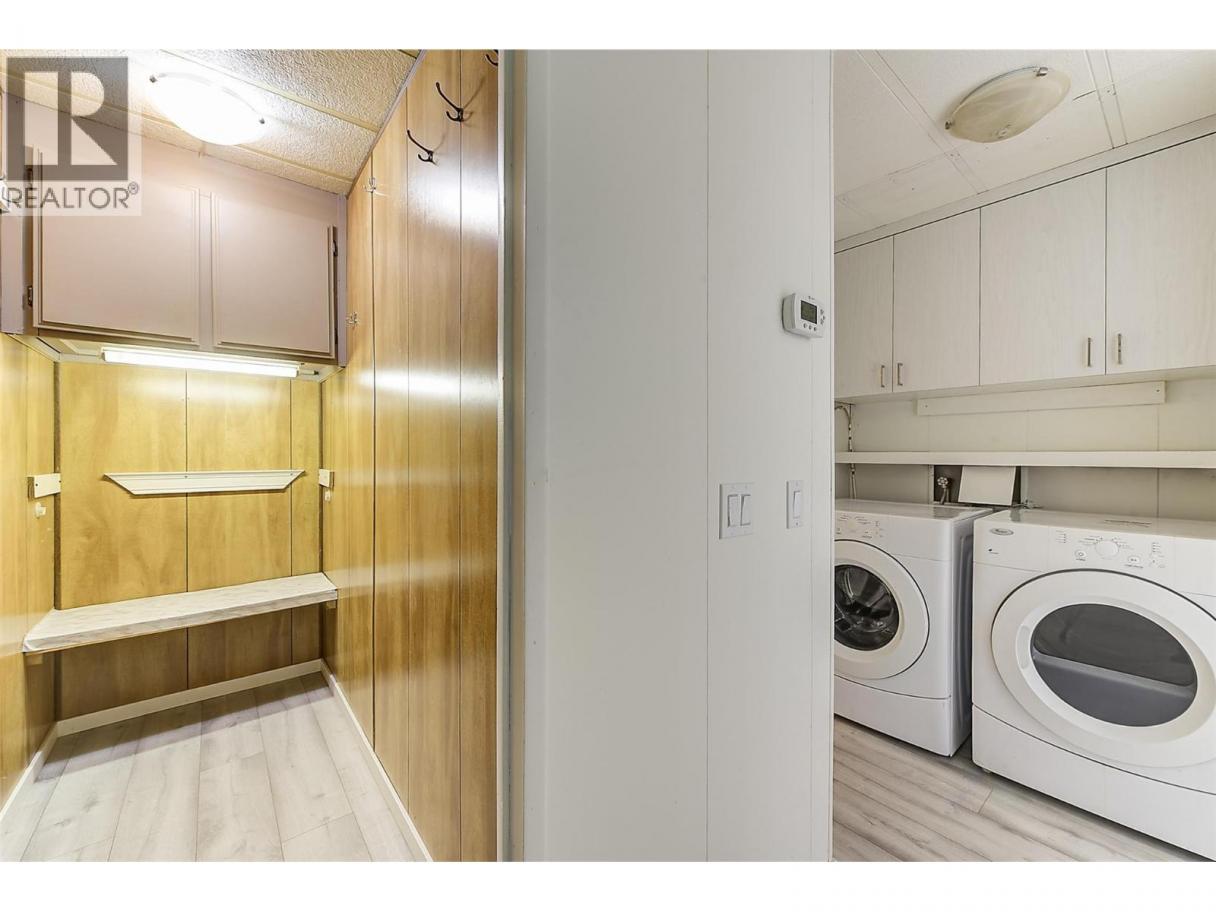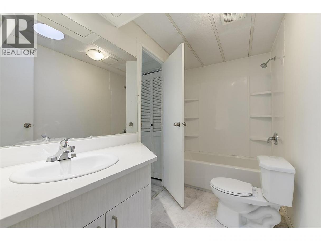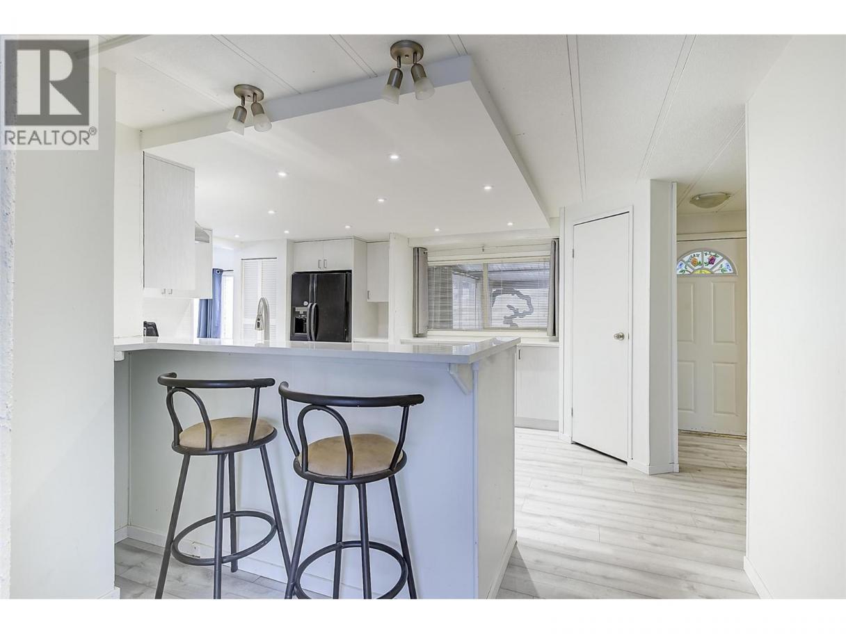 This lovely 3 bedroom/2bath home has been beautifully renovated and is located in desirable Lakeview Heights just blocks to Okanagan Lake. Priced below assessed value this 1,680 square foot double wide this home has plenty of room with a 3 sided fireplace separating the formal living/dining area from the casual family room, new kitchen with nook and eating bar (kitchen has new quartz countertops, backsplash, newer appliances, lighting), new vinyl flooring throughout the home. Bedrooms are on opposite sides and the primary bedroom has a 5 piece ensuite, second bath is a new 4 piece. There is an enclosed rear sundeck entrance/sunroom with adjoining 10 x 10 workshop/storage area to tinker and the rear patio is perfect for relaxing with friends and family. Central air keeps things cool in the Summer, there is a lake view from the front porch in the Fall and Winter and there is paved parking for 2 cars. Updated electrical throughout and new CSA electrical label. 55+, no dogs, no on site rv parking., no rentals Don't miss out on this beautiful home located in a fantastic location close to shopping, restaurants, beaches, golf, wineries and just minutes into Kelowna. (id:6769)