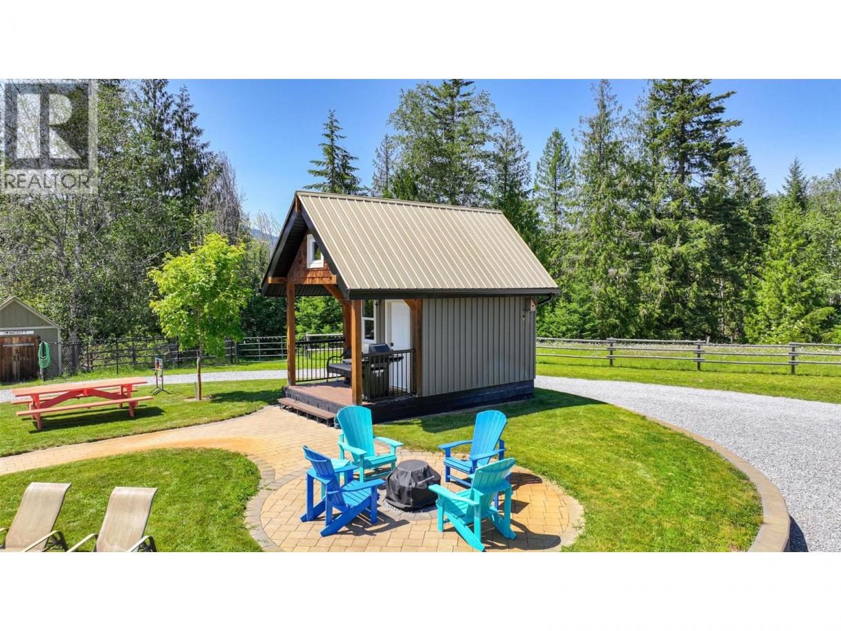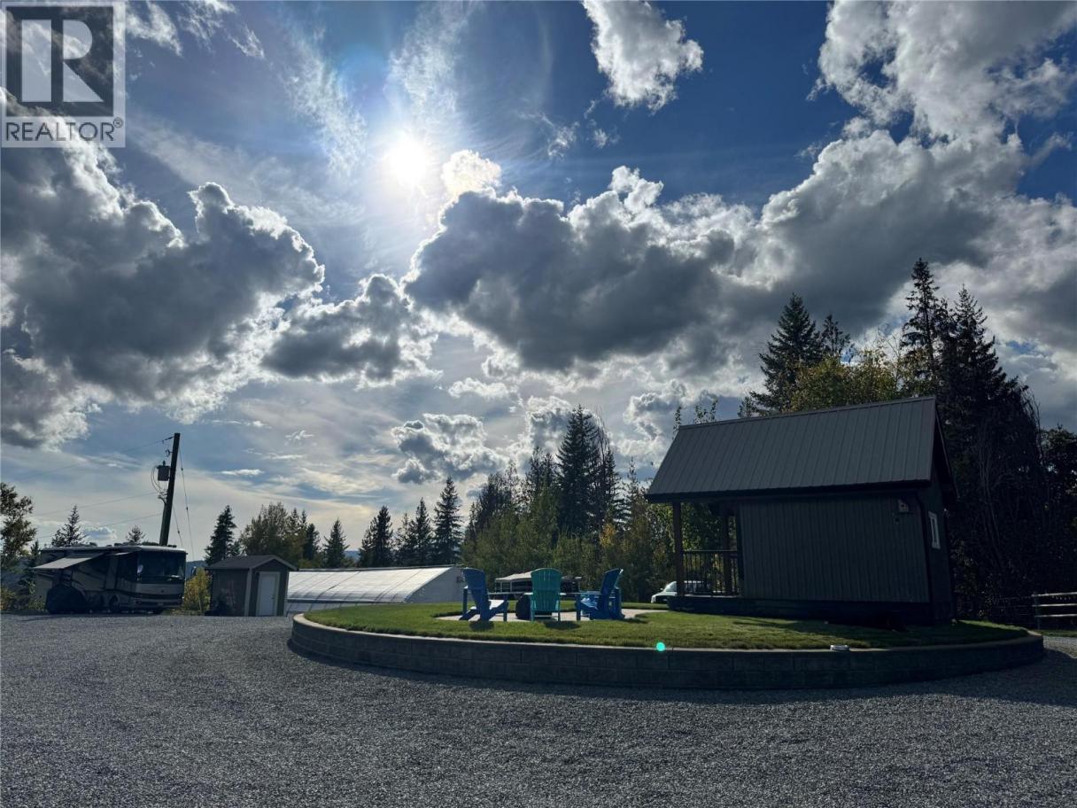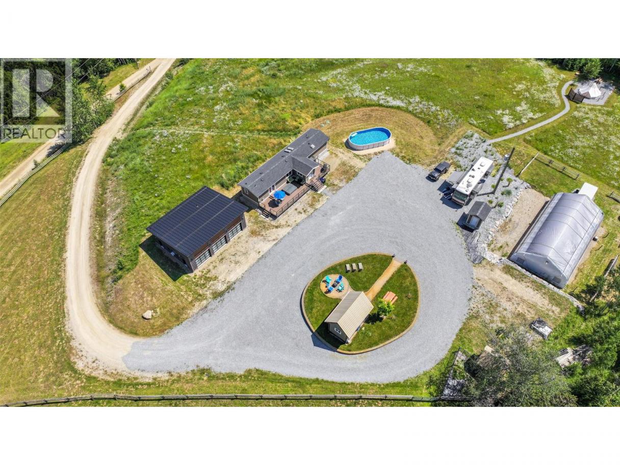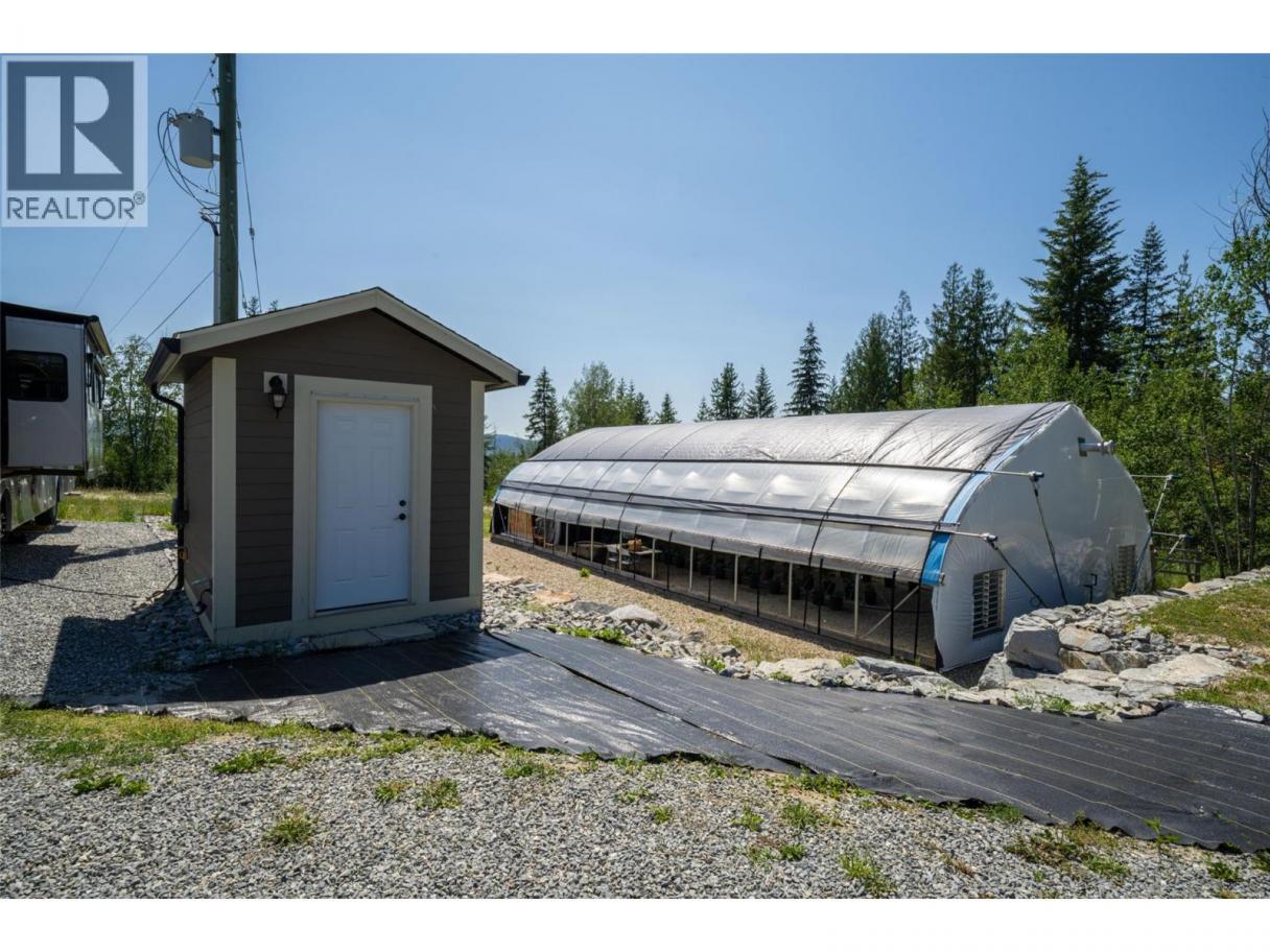 Welcome to a truly special 4.99 acres of private, picturesque land, ideally located just minutes from both Salmon Arm and Enderby. This property offers the perfect balance of peaceful rural living and everyday convenience, making it an exceptional choice for multi-generational families, income possibilities, or those seeking a self-sufficient lifestyle. The fully renovated 2-bedroom, 2-bath home provides modern, move-in-ready comfort while you plan and design your future dream home. With zoning that allows for both a primary residence and a secondary dwelling. The expansive space is thoughtfully set up to support a variety of lifestyles and ventures. A charming guest cabin welcomes space for visitors or excellent short-term rental. The impressive 3-bay shop features in-floor heating, washer and dryer, full bath, and 10'8 zero-clearance automatic doors, great for home based business. 30x60 commercial greenhouse, perfect operating a small agricultural business, or enhancing a self-sustaining way of life. Zoning allows for home-based businesses, weddings, bed and breakfasts, or farm-to-market ventures—the possibilities are truly endless. With breathtaking mountain views, 600-amp power, RV hookups and exceptional privacy, this rare property invites you to create something truly special. Whether you envision a family compound, income-generating retreat, or peaceful country estate, this land is ready to bring your vision to life. (id:6769)