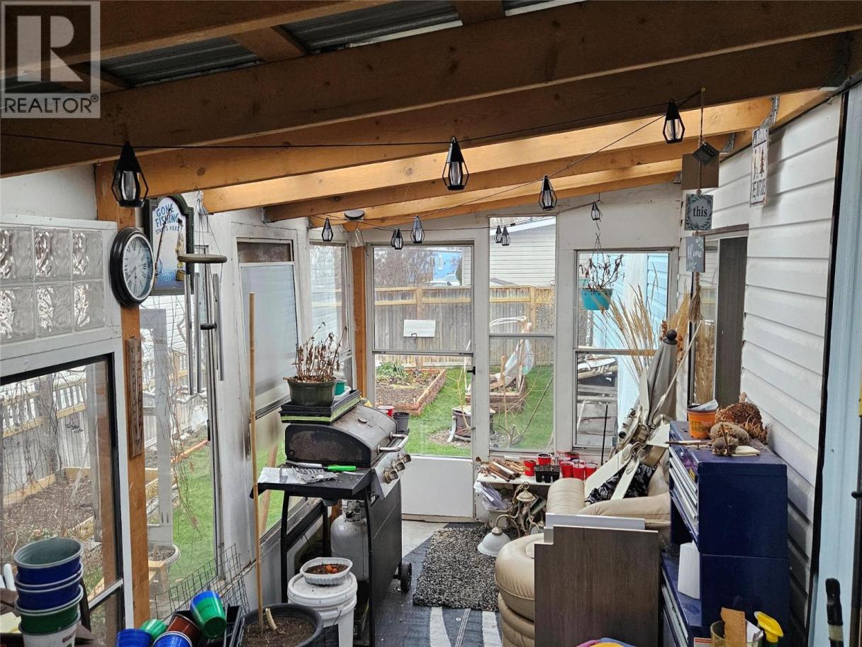 Welcome to Sun Leisure Mobile Home Park, located across the street from Skaha Lake and beside the famous Channel. This maintained 924 sq ft residence features an open-concept floor plan and a vaulted ceiling in the living room, giving the space a larger, airy feel. It includes 2 bedrooms and 1 updated bathroom. Outside, the property offers a grassed, deer-fenced yard with raised garden beds and numerous perennial shrubs. Parking is available for at least two vehicles, with room for one in the carport. The park is welcoming: there are no age restrictions, pets are welcome, and rentals are allowed upon park approval. Contact the Listing Agent today to schedule your showing! (id:6769)