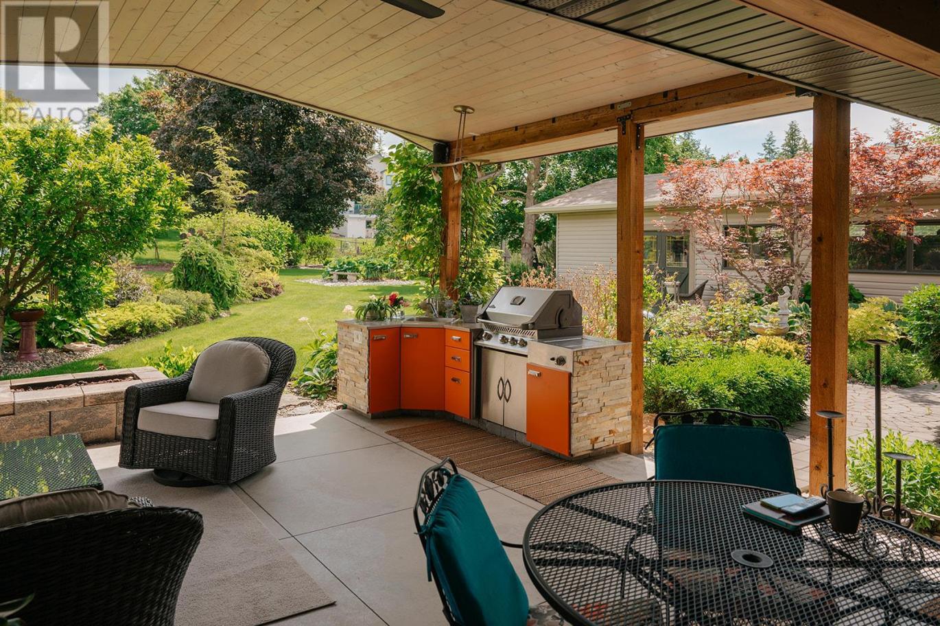 Totally renovated level entry rancher on a pristine 1/2 acre lot in NE Salmon Arm. Open concept living area, kitchen and office on main level. The spacious kitchen with large island eating bar, offers a beautiful view of the backyard. Large master suite with walk-in closet, steam shower and soaker tub. Step out of the kitchen to a sizeable covered patio which includes an outdoor BBQ kitchen. Perfect for entertaining or just enjoying the day outside. Lower level has a bright generous family room, games room, and guest room with full bath. There is additional unfinished space currently used for crafting available to customize for personal use. Year round comfort provided by a natural gas furnace, AC and gas fireplaces up and down. This home features large windows throughout that frame beautifully landscaped gardens, high end finishes with granite countertops and cork floors in the main living area for warmth and easy maintenance. Plenty of parking for all the toys with double attached garage and 16’x32’ shop. Bonus: a luxurious king sized suite guest house with views of the gardens. (id:6769)
