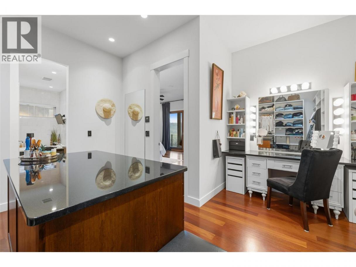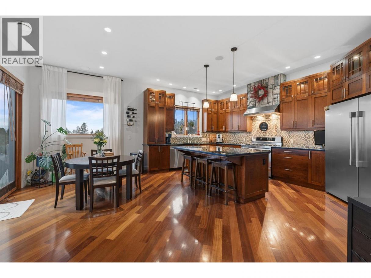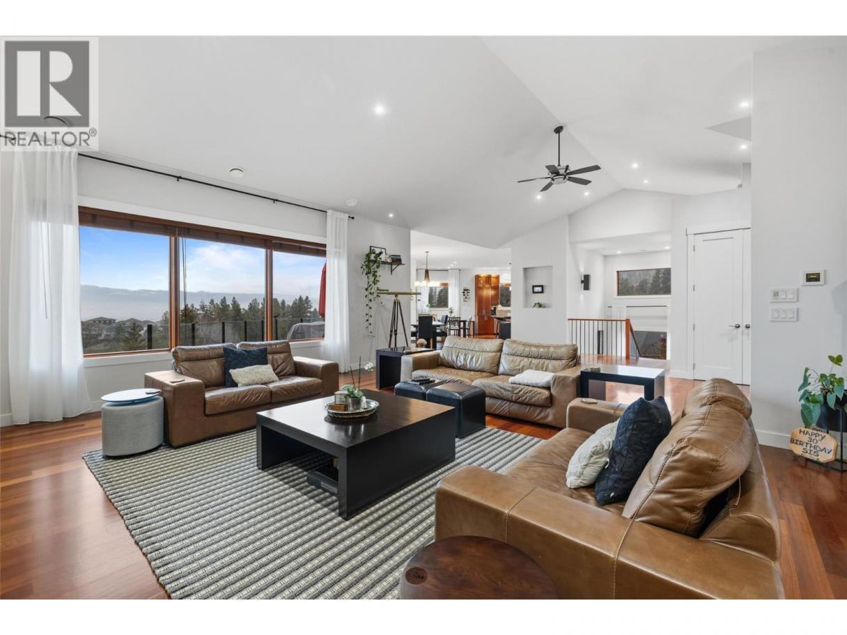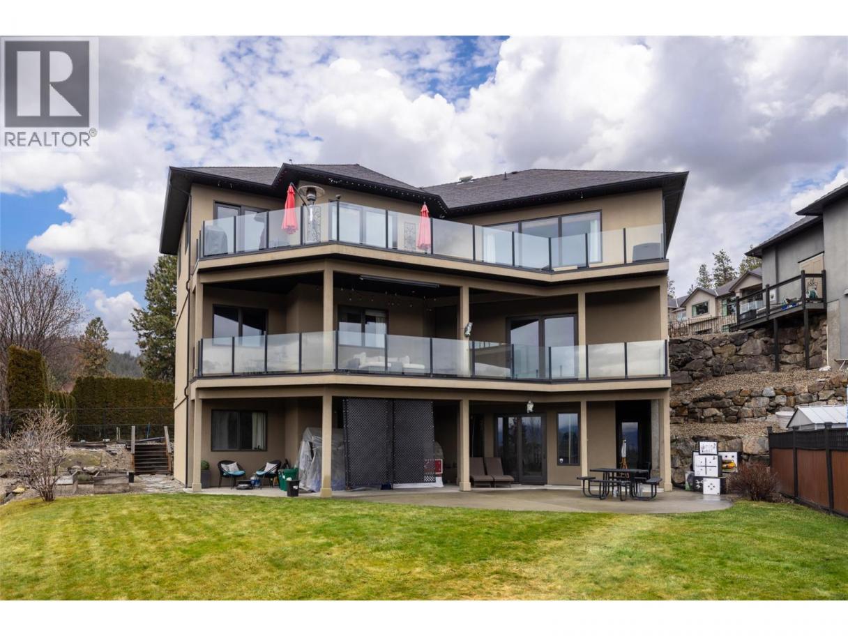 Experience over 6,000 sq ft of executive luxury in this exceptional home, perfectly situated on a quiet cul-de-sac backing onto Knox Mountain—ideal for hiking and outdoor adventures. Designed for comfort and grandeur, this spacious residence features two primary bedrooms with en-suites and four additional bedrooms, offering ample space for family and guests. Gorgeous 3/4-inch Brazilian cherry hardwood flooring, installed and finished on-site, flows throughout the main level. The bright, open-concept main floor boasts an expansive kitchen, a generous dining area, a cozy breakfast nook, and a large deck with views of Dilworth Mountain and the Kelowna Golf and Country Club. The main-level primary suite includes a walk-through closet and an ensuite. On the lower floor, discover a dedicated laundry room, a media room, two bedrooms, a full bath, and a luxurious primary wing—complete with a massive bedroom, private balcony, dressing room, and an ensuite featuring a steam shower and jet soaker tub. The walkout basement offers two additional bedrooms, a full bathroom, a spacious recreation area, a gym, an office, and abundant storage, plus direct access to a backyard with space for a pool. Enjoy the convenience of a prime central location in a welcoming neighbourhood—just a quick e-bike ride to downtown, minutes to Kelowna’s best amenities, and situated in a top-rated school district. (id:6769)