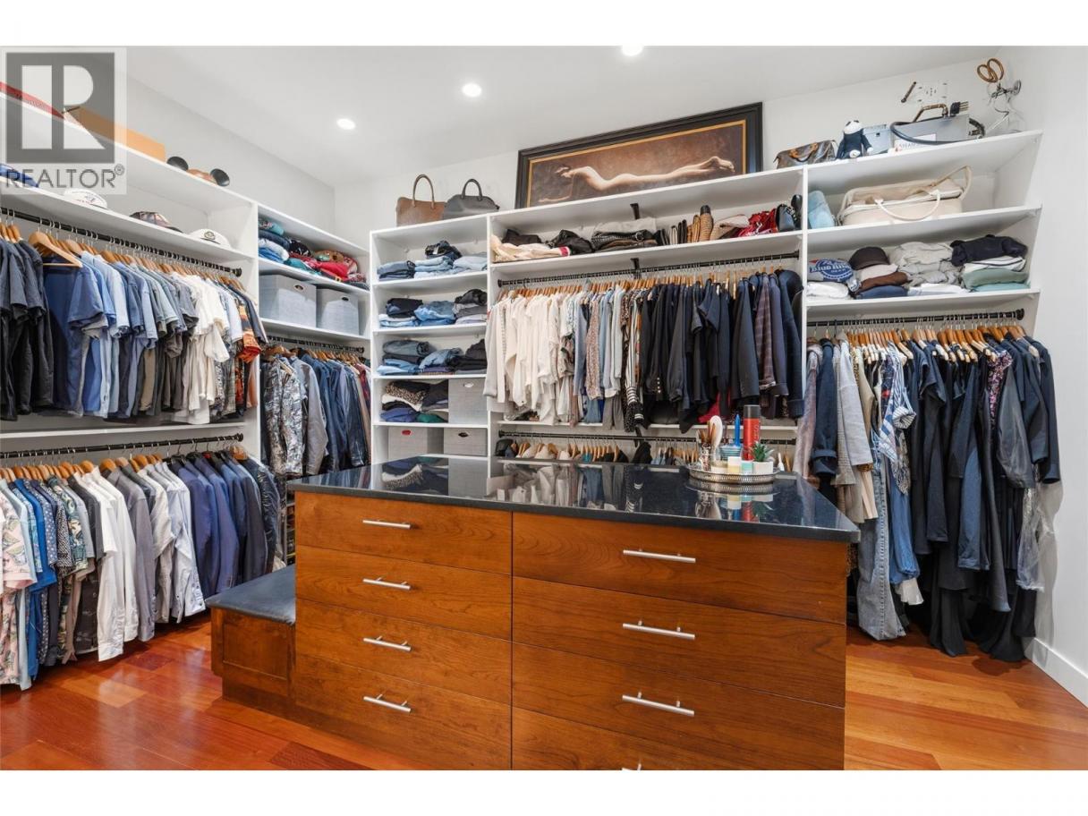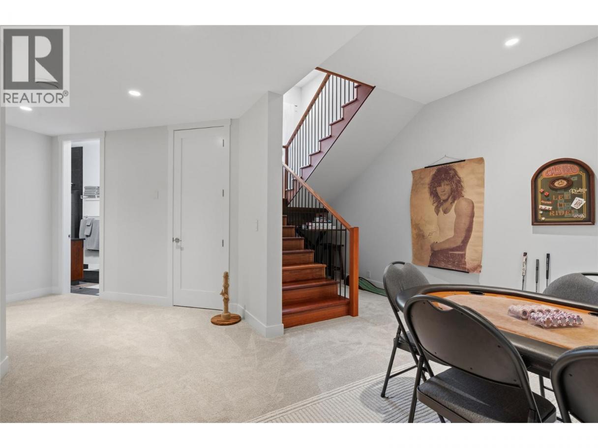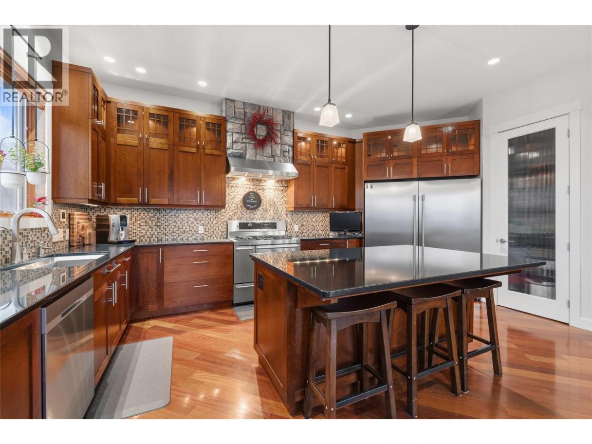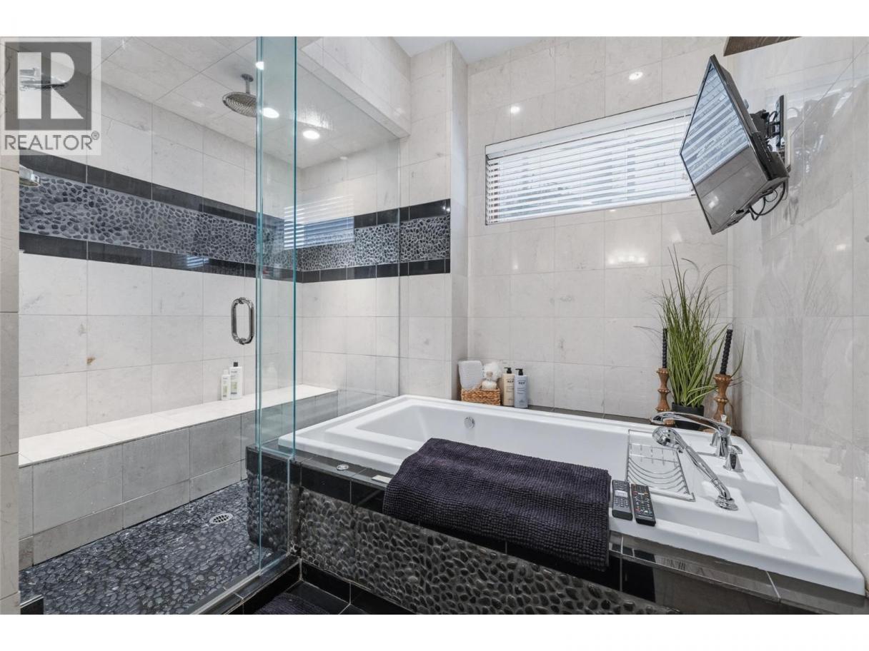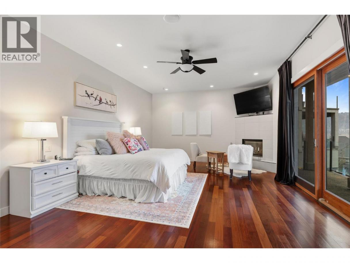 Experience over 6,000 sq ft of executive luxury in this exceptional home, perfectly situated on a quiet cul-de-sac backing onto Knox Mountain—ideal for hiking and outdoor adventures. Designed for comfort and grandeur, this spacious residence features two primary bedrooms with en-suites and four additional bedrooms, offering ample space for family and guests. Gorgeous 3/4-inch Brazilian cherry hardwood flooring, installed and finished on-site, flows throughout the main level. The bright, open-concept main floor boasts an expansive kitchen, a generous dining area, a cozy breakfast nook, and a large deck with views of Dilworth Mountain and the Kelowna Golf and Country Club. The main-level primary suite includes a walk-through closet and an ensuite. On the lower floor, discover a dedicated laundry room, a media room, two bedrooms, a full bath, and a luxurious primary wing—complete with a massive bedroom, private balcony, dressing room, and an ensuite featuring a steam shower and jet soaker tub. The walkout basement offers two additional bedrooms, a full bathroom, a spacious recreation area, a gym, an office, and abundant storage, plus direct access to a backyard with space for a pool. Enjoy the convenience of a prime central location in a welcoming neighbourhood—just a quick e-bike ride to downtown, minutes to Kelowna’s best amenities, and situated in a top-rated school district. (id:6769)