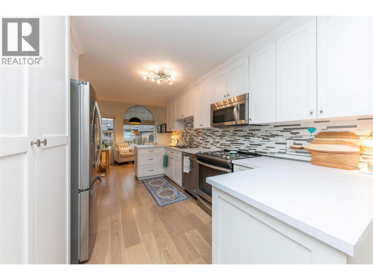 A special opportunity to seize! This fully updated, open-concept 3 bedroom + den, rancher-style townhouse, w/ fully finished basement feels like home. Located in well-maintained 55+ community offering excellent guest parking. The quality is in the finishing touches - from solid wood doors, custom feature walls, eng hw floors, custom tile and cabinetry - it must be seen to fully appreciate. The bright kitch has extra storage, backsplash, and s/s appliances, plus a convenient breakfast nook w/ large windows that create a warm atmosphere. The lvg room is highlighted by a quartz FP w/ wood feat wall and opens to a spacious patio w/ access to grassed area - perfect for enjoying without the upkeep. The main lvl is designed for easy living and incl laundry, 2 bdrms, incl primary suite w/ WI closet and ensuite. The stylish main bath and ensuite feat custom vanities and tile, and modern fixtures. Downstairs offers full ceiling height w/ a lrg fam room, 3rd bdrm, den or office, full bath, and storage - perfect for visiting family, hobbies, or flexible living space. Recent upgrades incl eng hw floors, paint and BB, wood interior doors and closet doors, and improved insul and plumbing throughout. Parking is effortless with a single garage feat built-in storage and epoxy coated floors, plus 2 add parking spots. This move-in-ready home offers a comfortable, low-maintenance lifestyle in a quiet, friendly community close to shops and amen - ideal those looking to downsize without compromise. (id:6769)