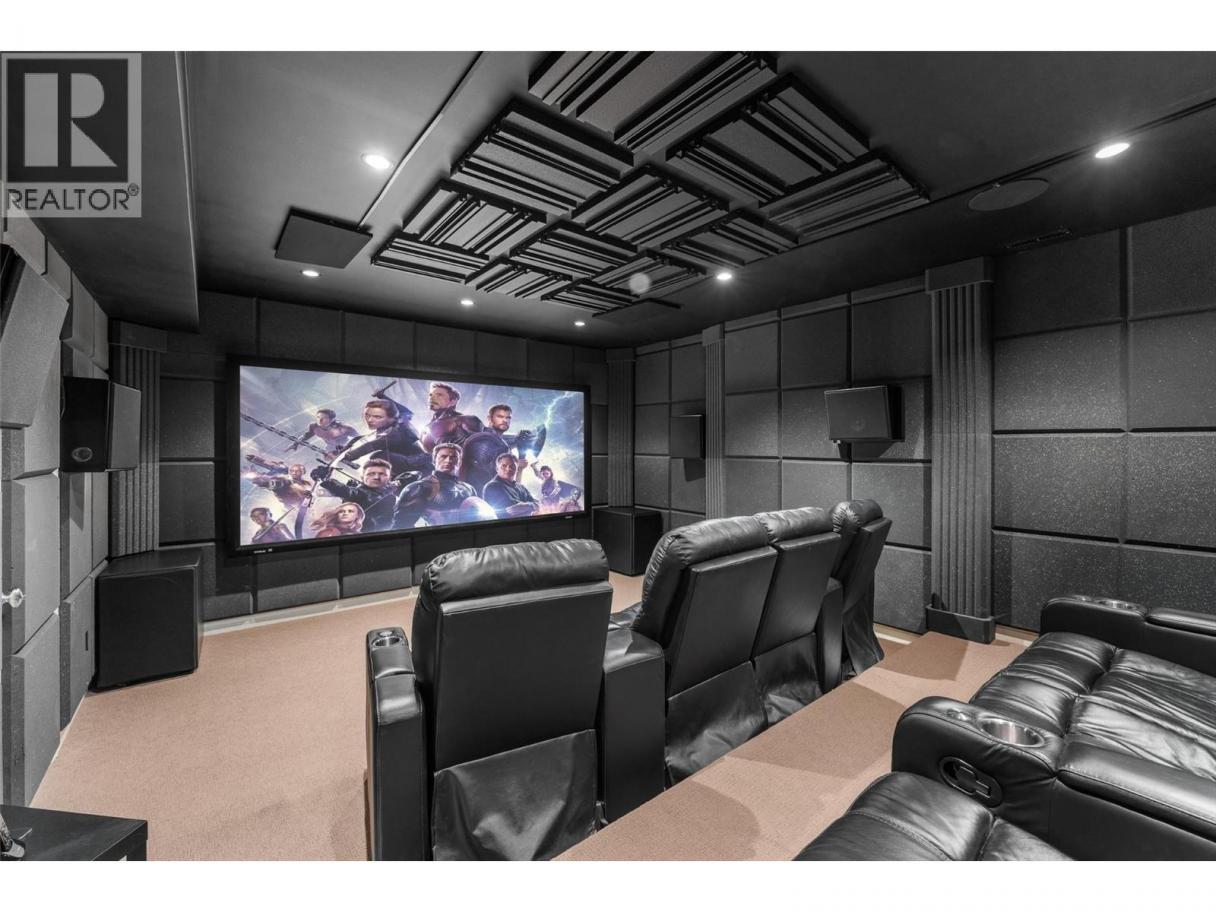 Perched in Vernon's Foothills with sweeping views of Kalamalka, Okanagan & Swan Lakes, mountains, city lights, & the entire valley. Original owners of this refined residence that blends comfort, entertainment & family living & less then 15 minutes from Silver Star Resort or Kalamalka Lake. Freshly painted main level offers open-concept living with a chef’s kitchen featuring a massive island, pantry, & premium appliances. The dining & living areas extend seamlessly to a full-length deck with glass railings, panoramic vistas, & walk-down access to the pool. A stone-surround fireplace anchors the living room, while the primary suite showcases breathtaking views, a walk-in closet, and a spa-inspired ensuite. A second bedroom, 5-piece bath, & laundry with garage access complete this level. A true cinematic experience in this home with better than theatre sound! Custom-built home theatre with professional acoustic treatments; 13.2 Dolby Atmos surround sound, 4K projector, over 10ft. screen & tiered recliner seating. The lower level is designed for relaxation & entertainment with a stylish bar, office, 2 guest bedrooms, a 3-piece bath, & easy access to the pool. Outside enjoy a resort-style retreat with an app-controlled saltwater pool with slide, hot tub, covered lounge, & cedar privacy. Double garage EV ready & built-in shelving. HVAC include central vac, a WaterFurnace Synergy system, water filtration, & geothermal heating/cooling. (id:6769)