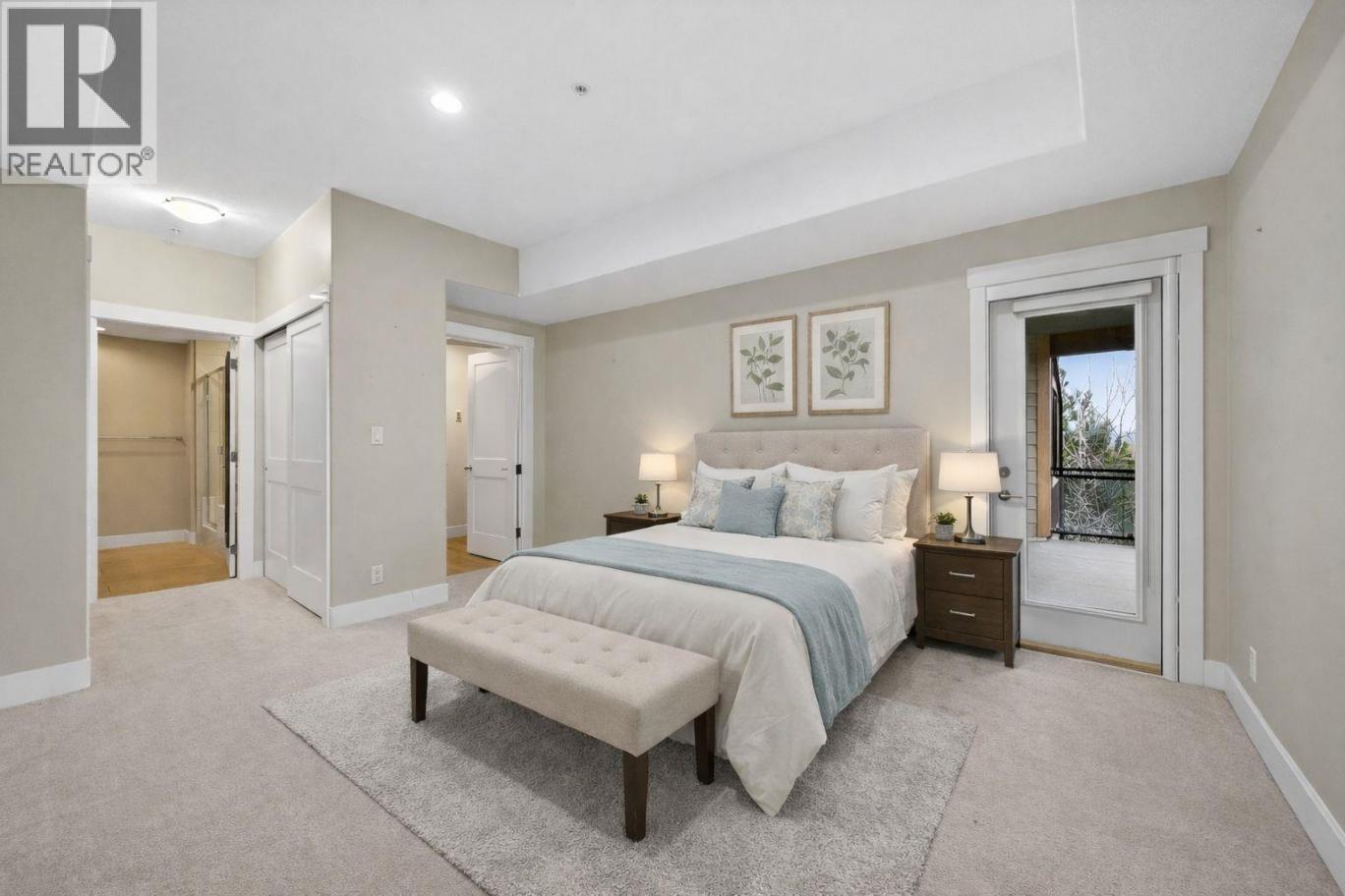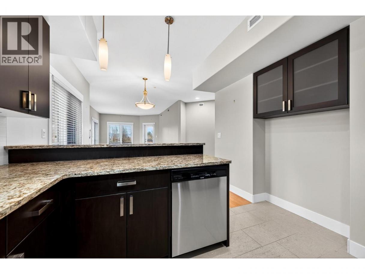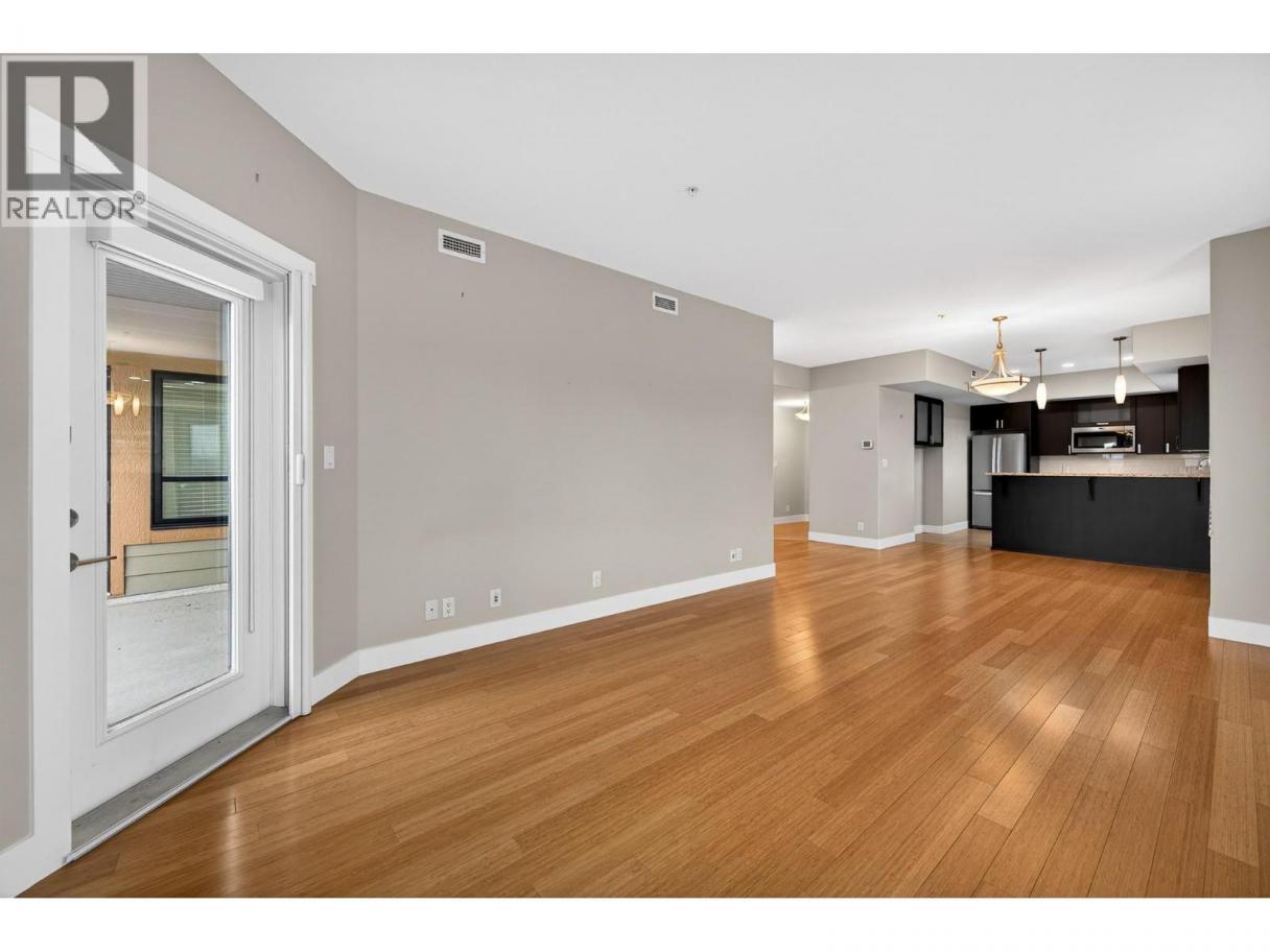Beautiful, executive style corner unit condo in a sought after development with beautiful views and a large deck for the warmer months. This 2nd floor corner unit has lovely northeastern views. It features one of the largest floor plans in the development with 1,252 square feet of living space. When you enter through the main entry you will find a nice sized closet and office space. Walk down the hall to the great room open plan featuring tons of windows which bring in so much natural light. The kitchen has a good amount of storage space and features stainless steel appliances and granite countertops. The living and dining room have bamboo hardwood flooring throughout which shows like new! Walk off the living room to the deck to take in the views. This unit features a nice sized primary bedroom with double closets and a 5 piece ensuite. Bonus the 2nd bedroom has a high end, custom built in murphy bed system! There is an additional 3 piece bathroom. This complex is a Built Green development which features geothermal heating and cooling that is included in the strata fee! There is also a fitness centre and nice common spaces throughout the complex for owners to enjoy. This unit features a storage locker (#8) and one secure, underground parking stall (#6). Walking distance to uptown restaurants, shops, grocery stores, Peterson Creek hiking and biking trails as well very close to a bus stop. Pets are allowed with restrictions. (id:6769)